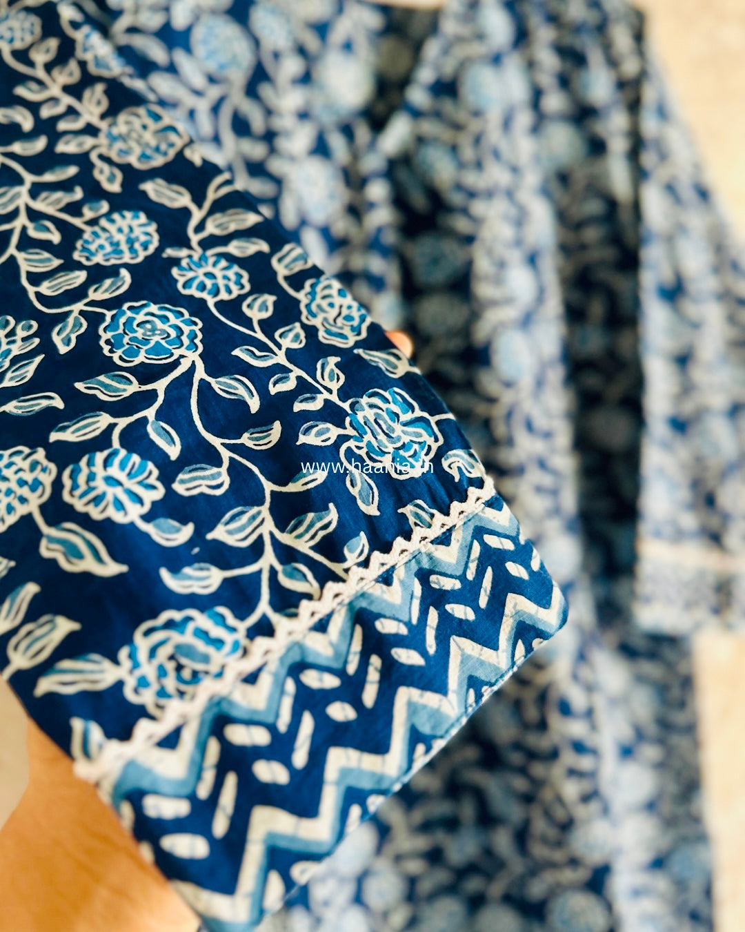 Authentic Jaipuri Hand Blocked Indigo 3 Piece Suit Set