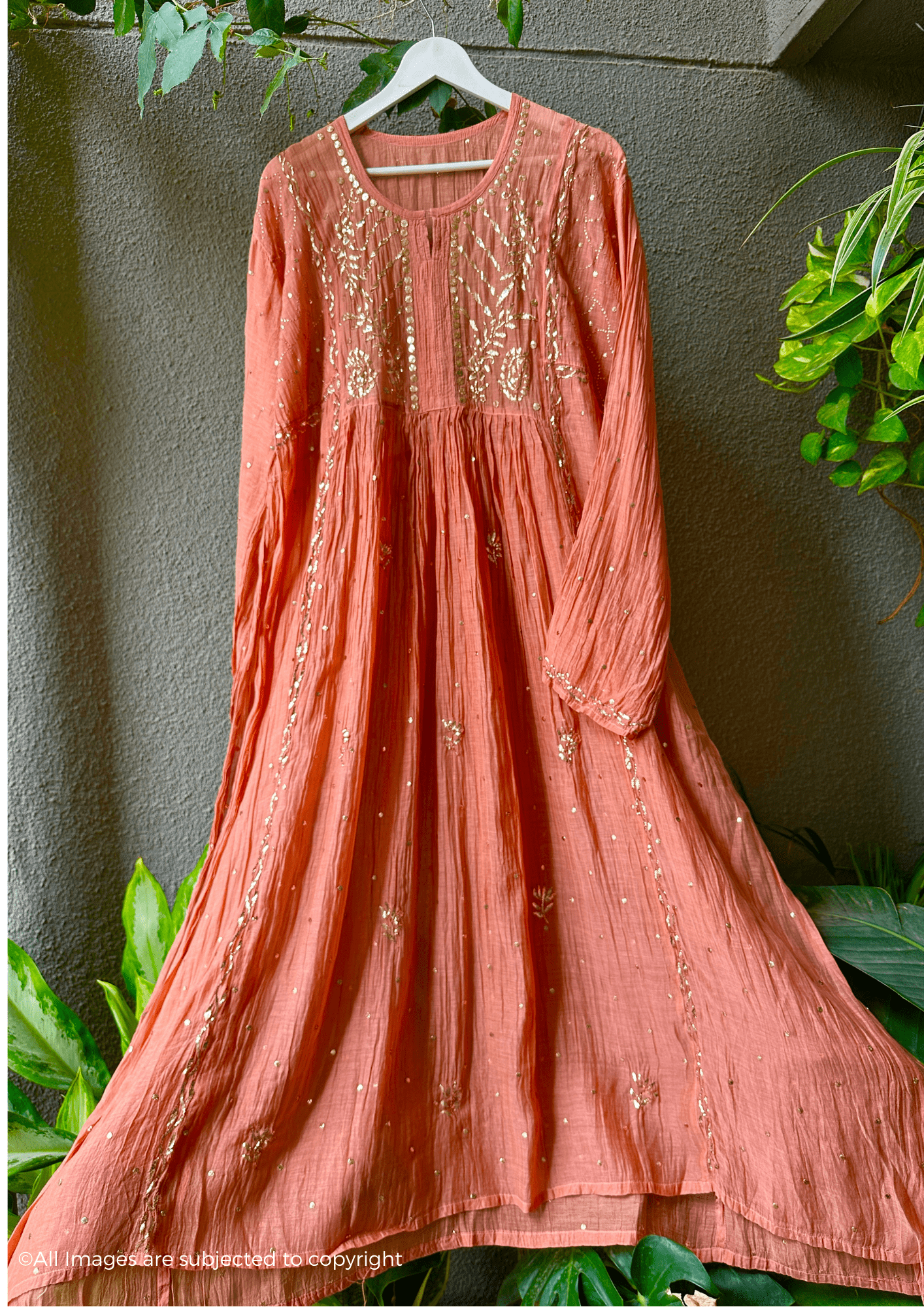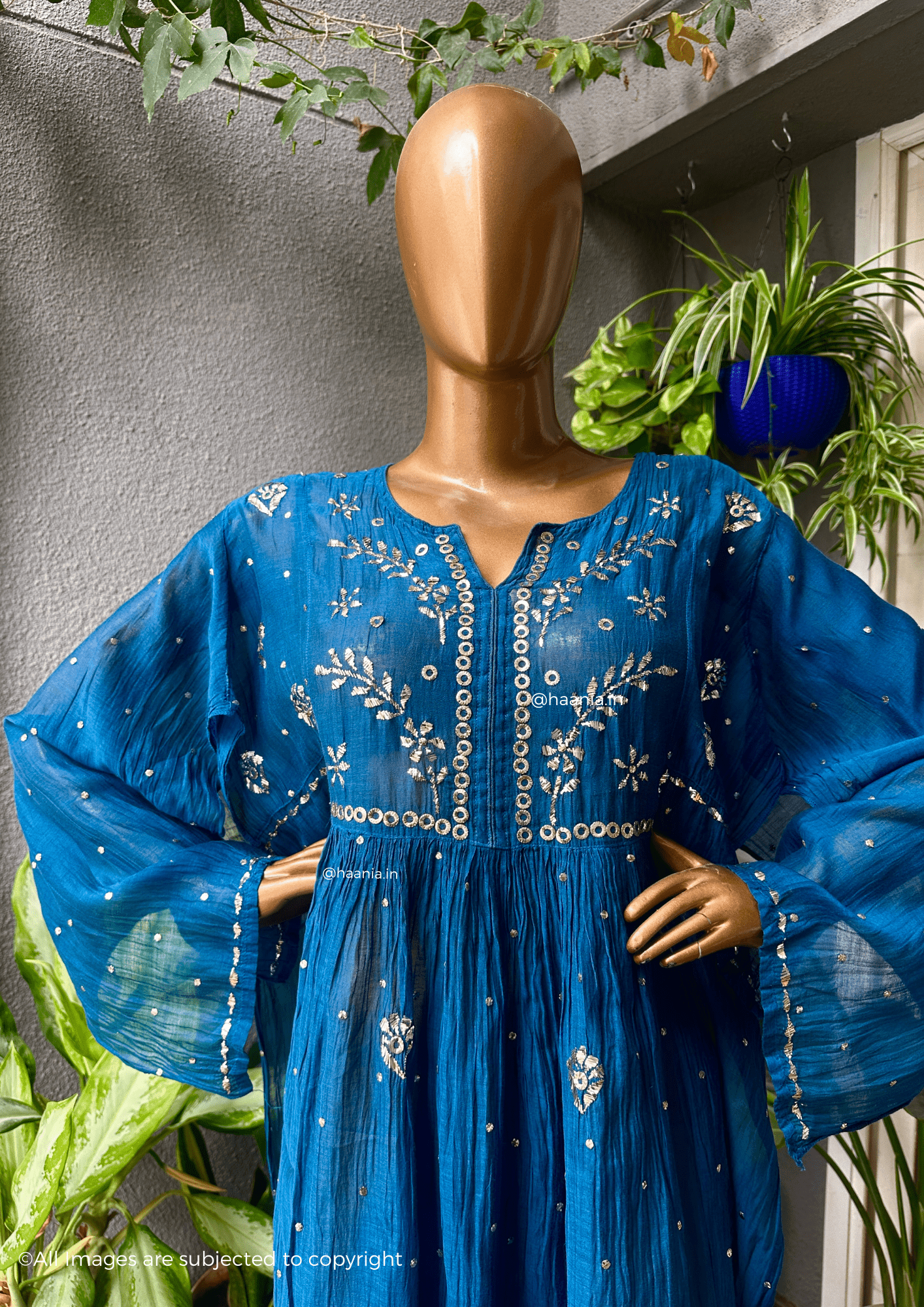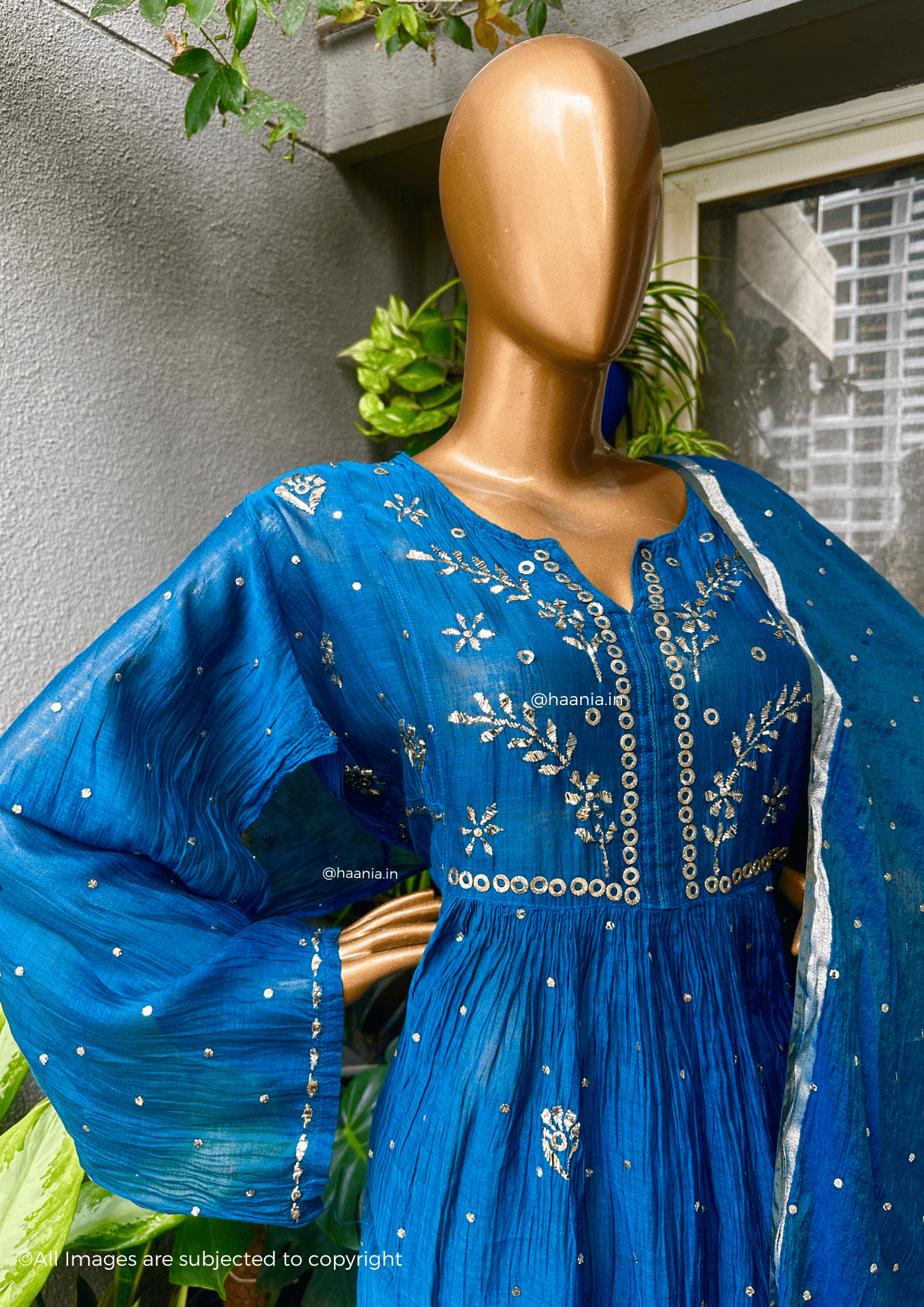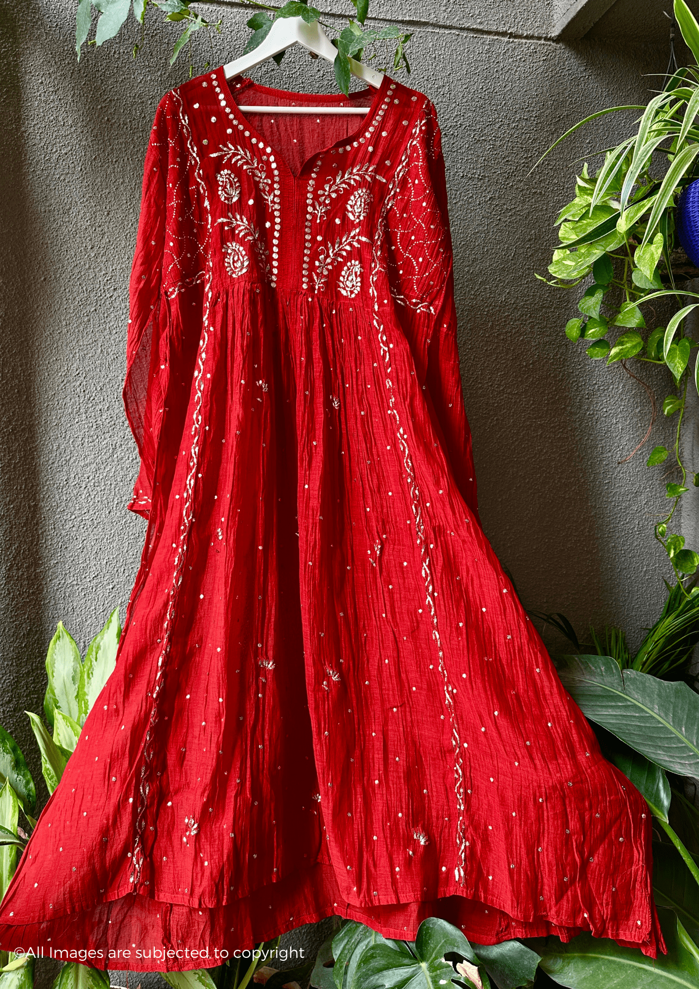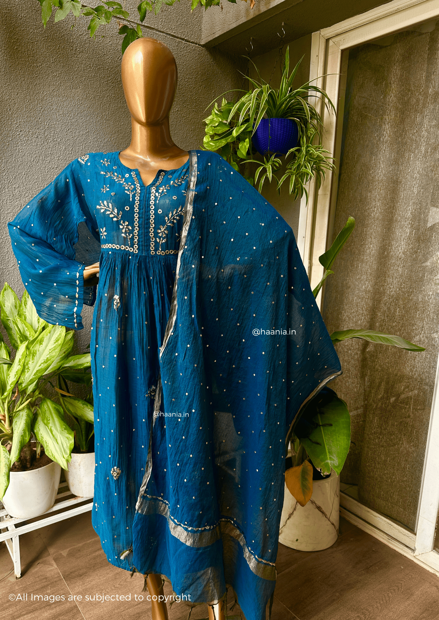 Chandani Handcrafted Chikankari Mul Chanderi A-line Kurta Set