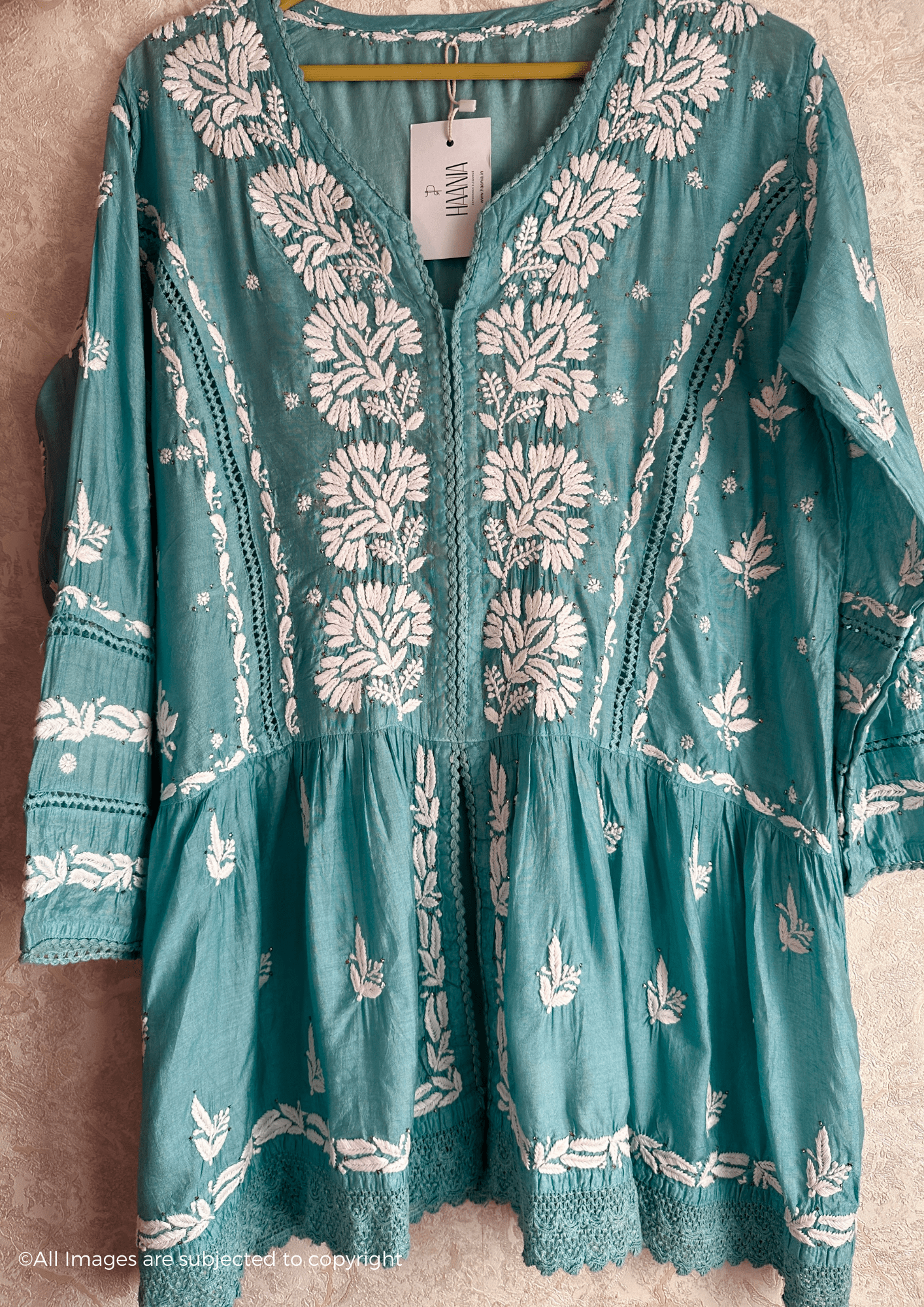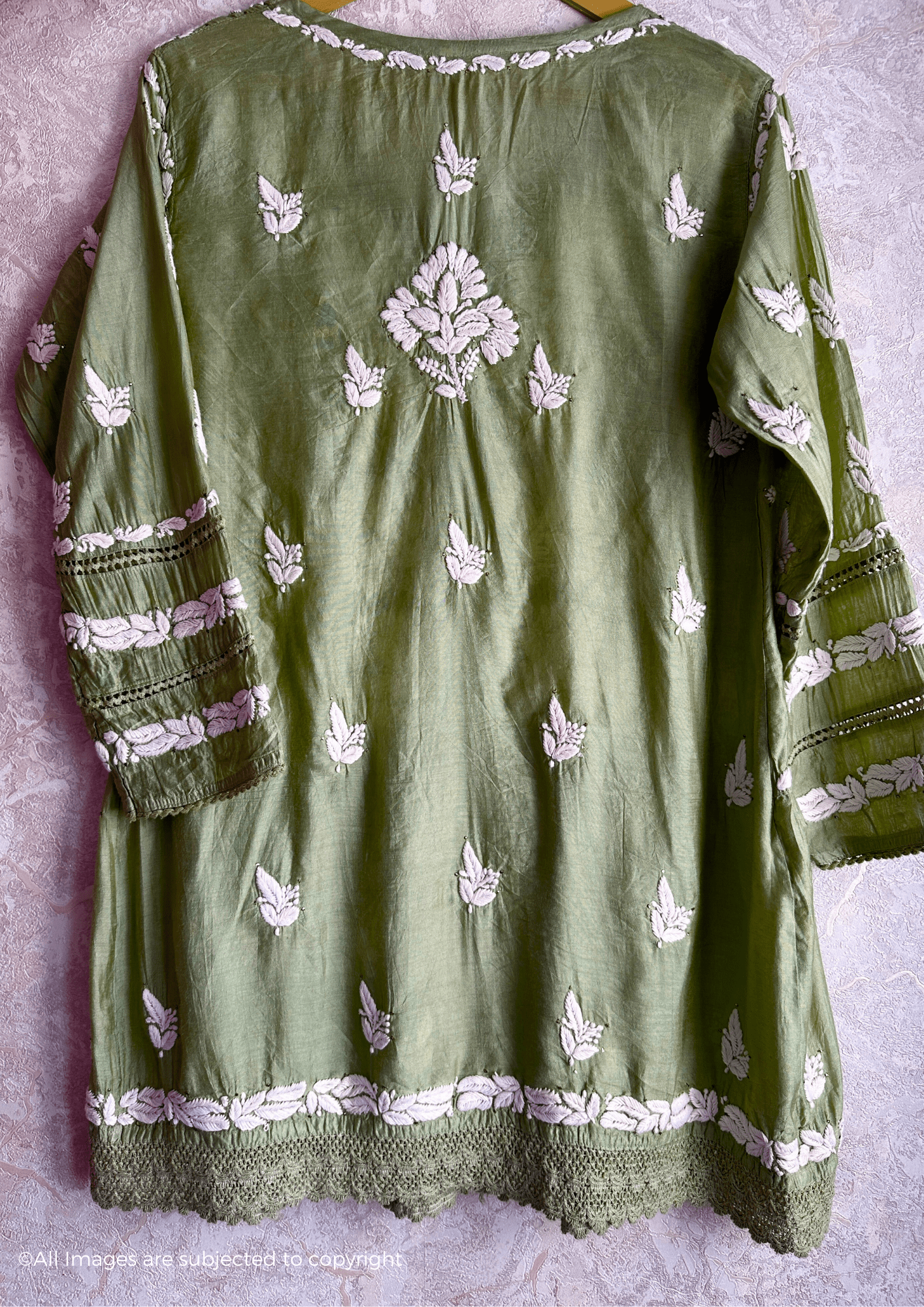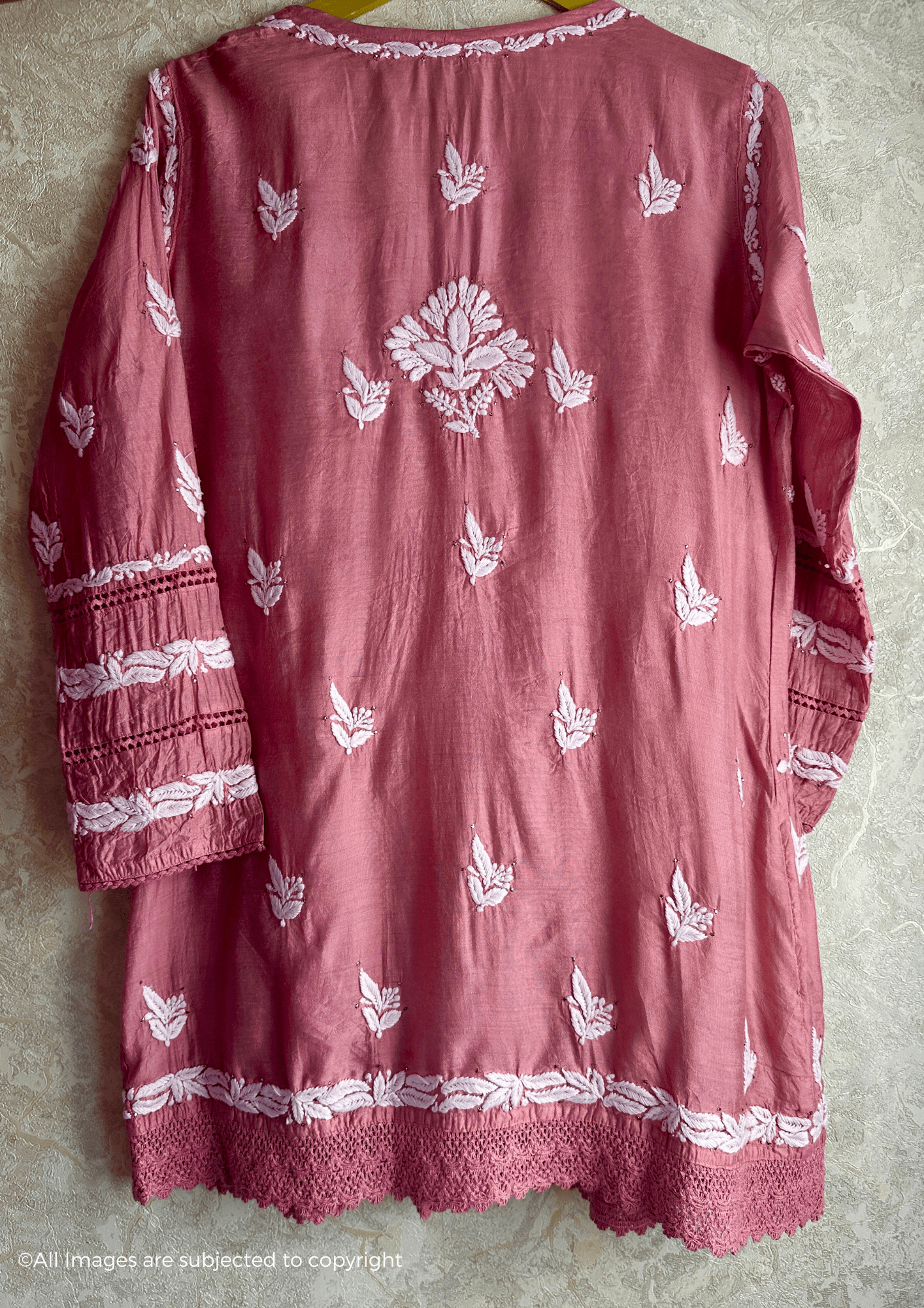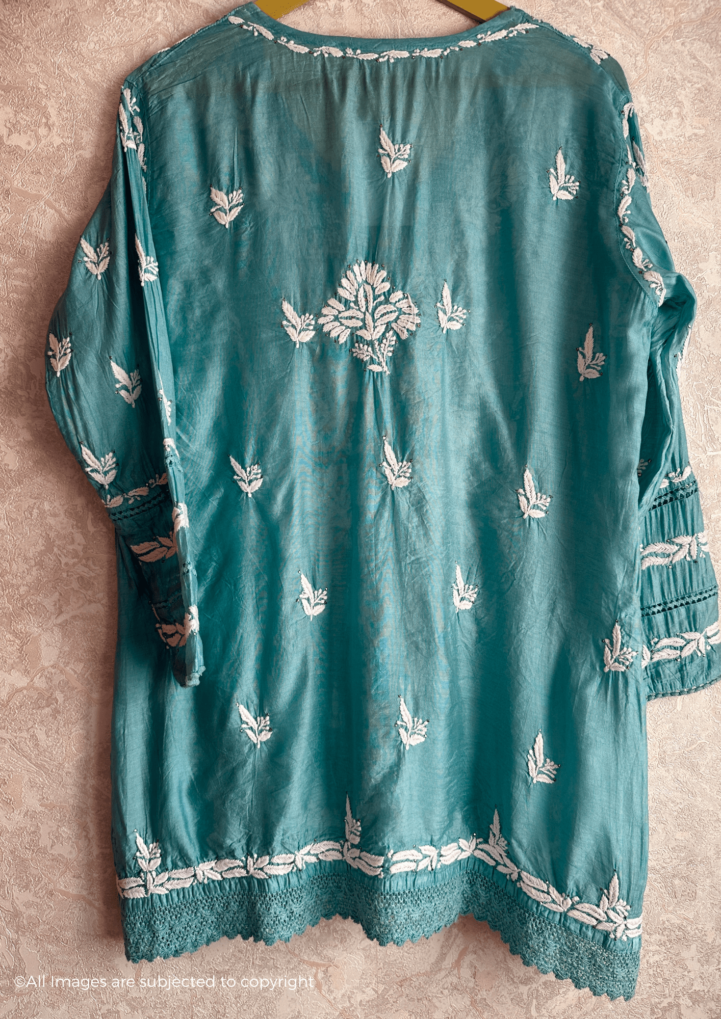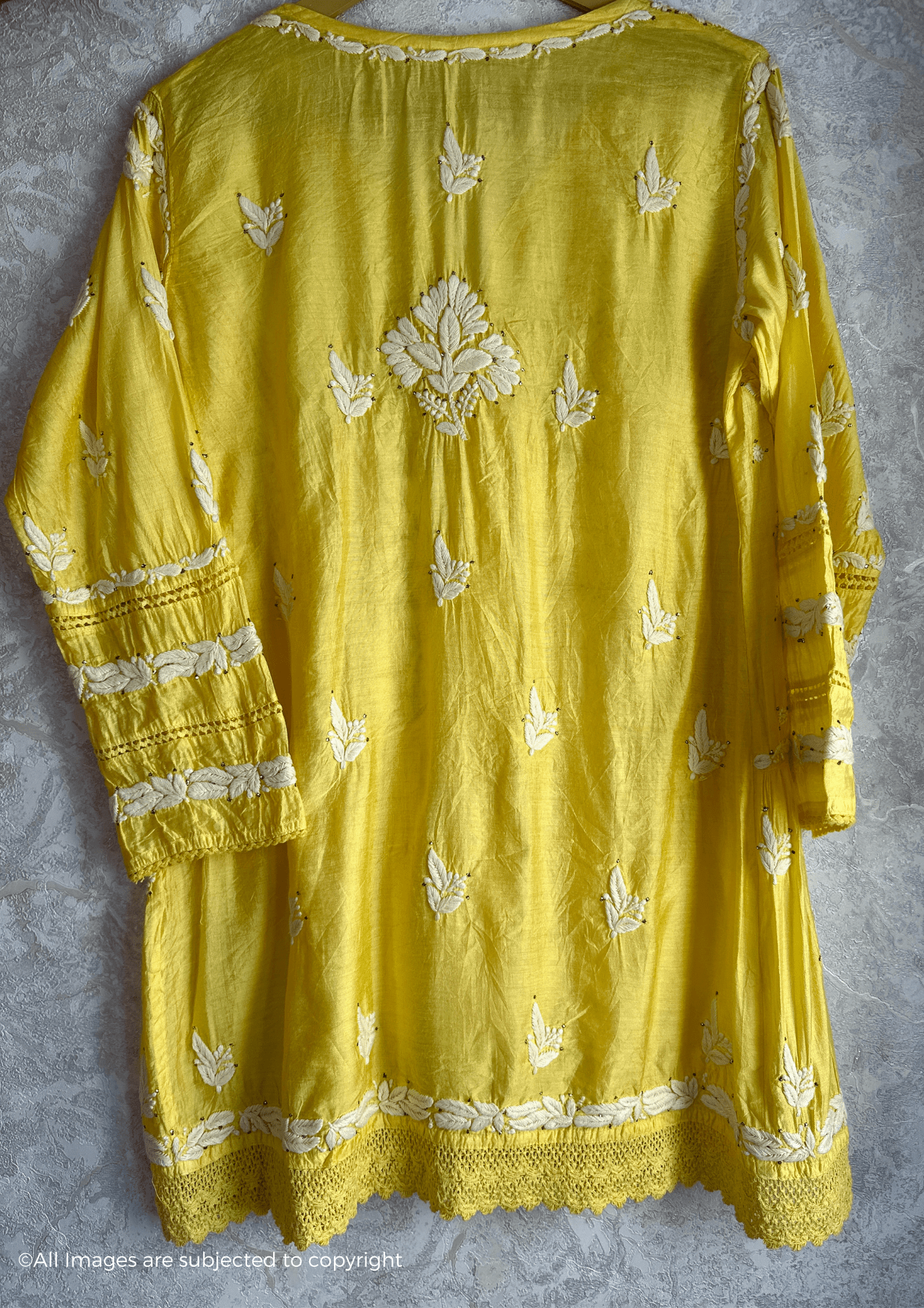 Elevate your everyday style with our Premium Chanderi Short Kurta with mukaish embellishments. Featuring a modern silhouette, this airy and lightweight kurta is perfect for a comfortable yet stylish everyday look.