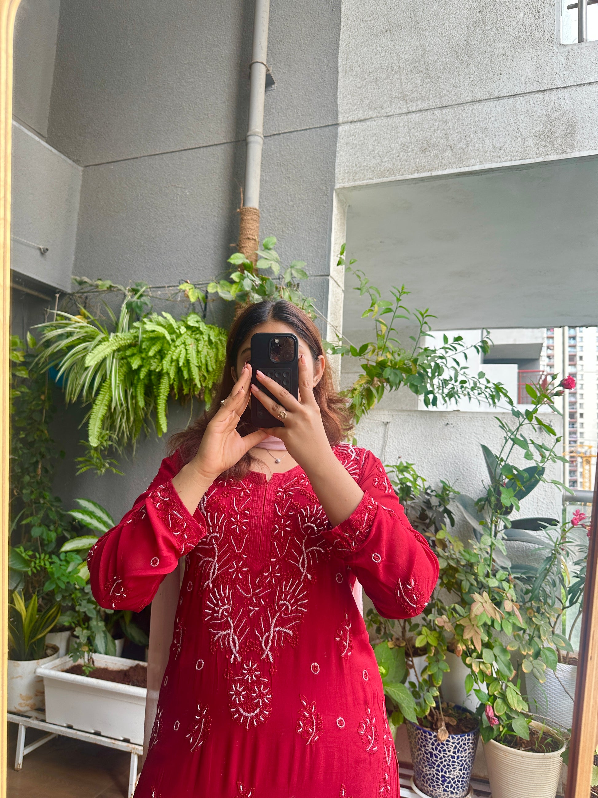 Experience timeless elegance with the Dalila Chikankari Pearl & Cutdana Suit Set, meticulously handcrafted to showcase intricate chikankari embroidery enhanced by delicate pearls and cutdana embellishments. This suit set combines traditional artistry with refined detailing, delivering a sophisticated look that reflects expert craftsmanship and cultural heritage. Perfect for special occasions, it offers both style and grace through its exquisite handwork and premium finish.