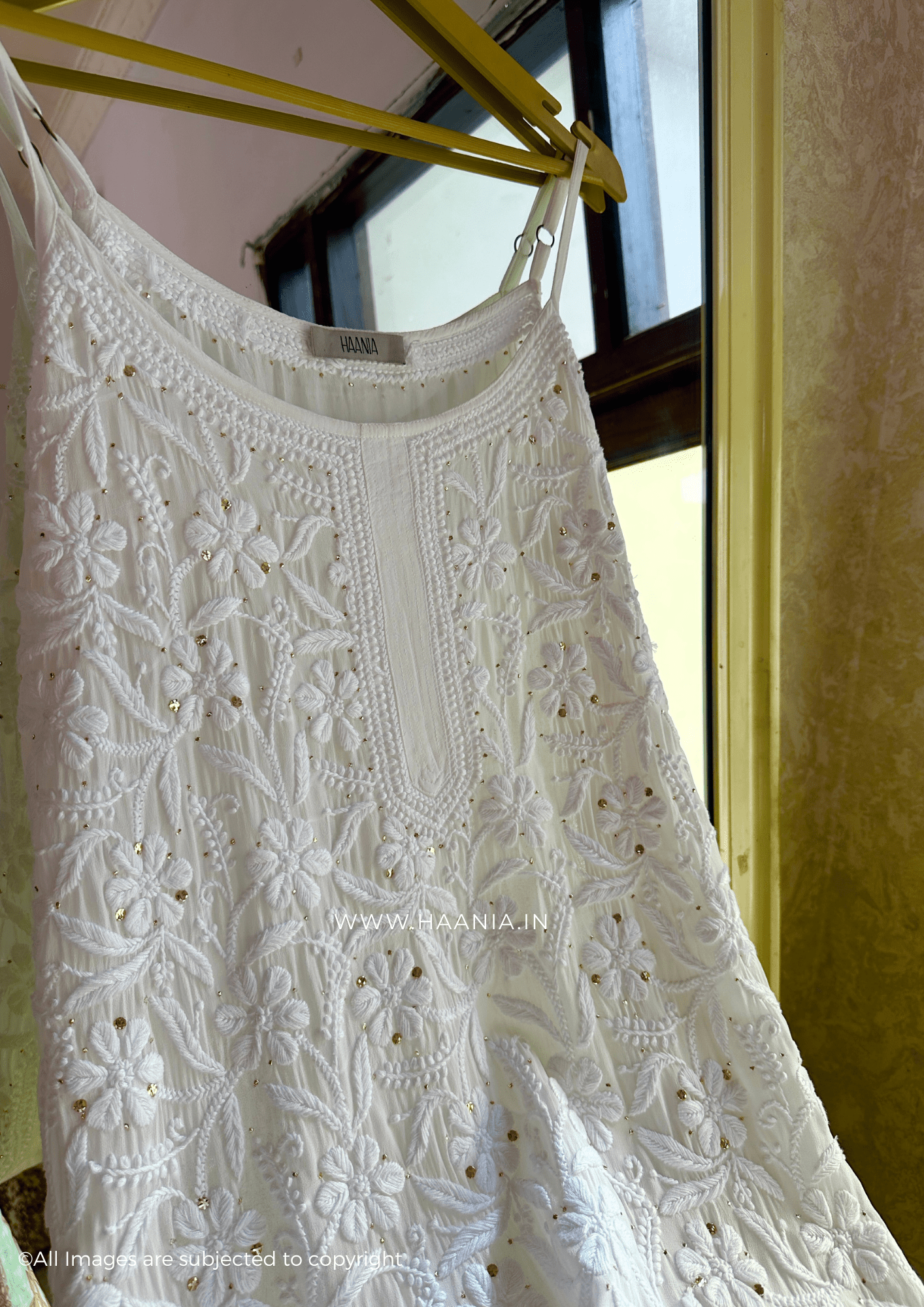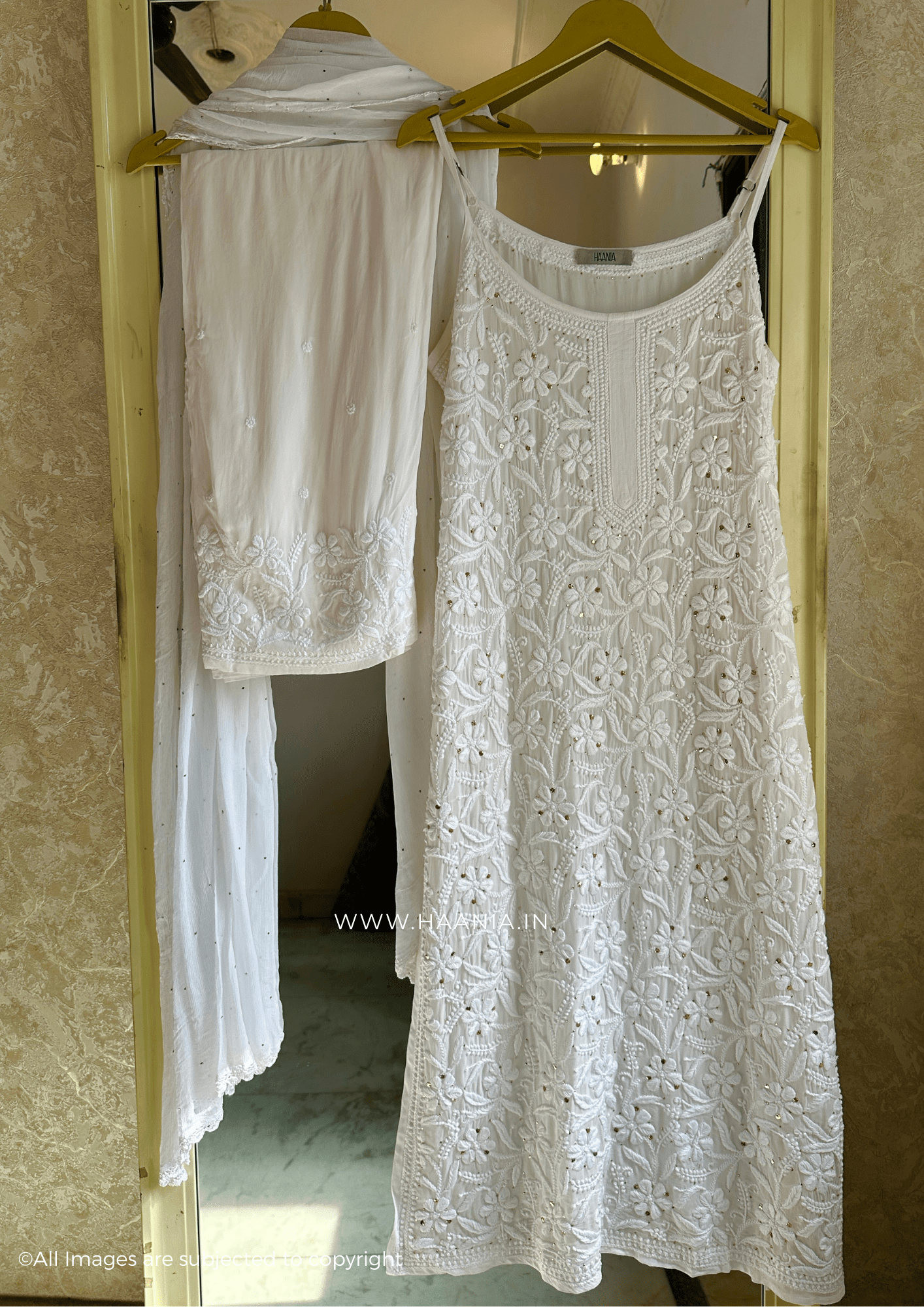 Diva Handcrafted Chikankari Noodle Strap Suit Set With Mukaish Embellishments
