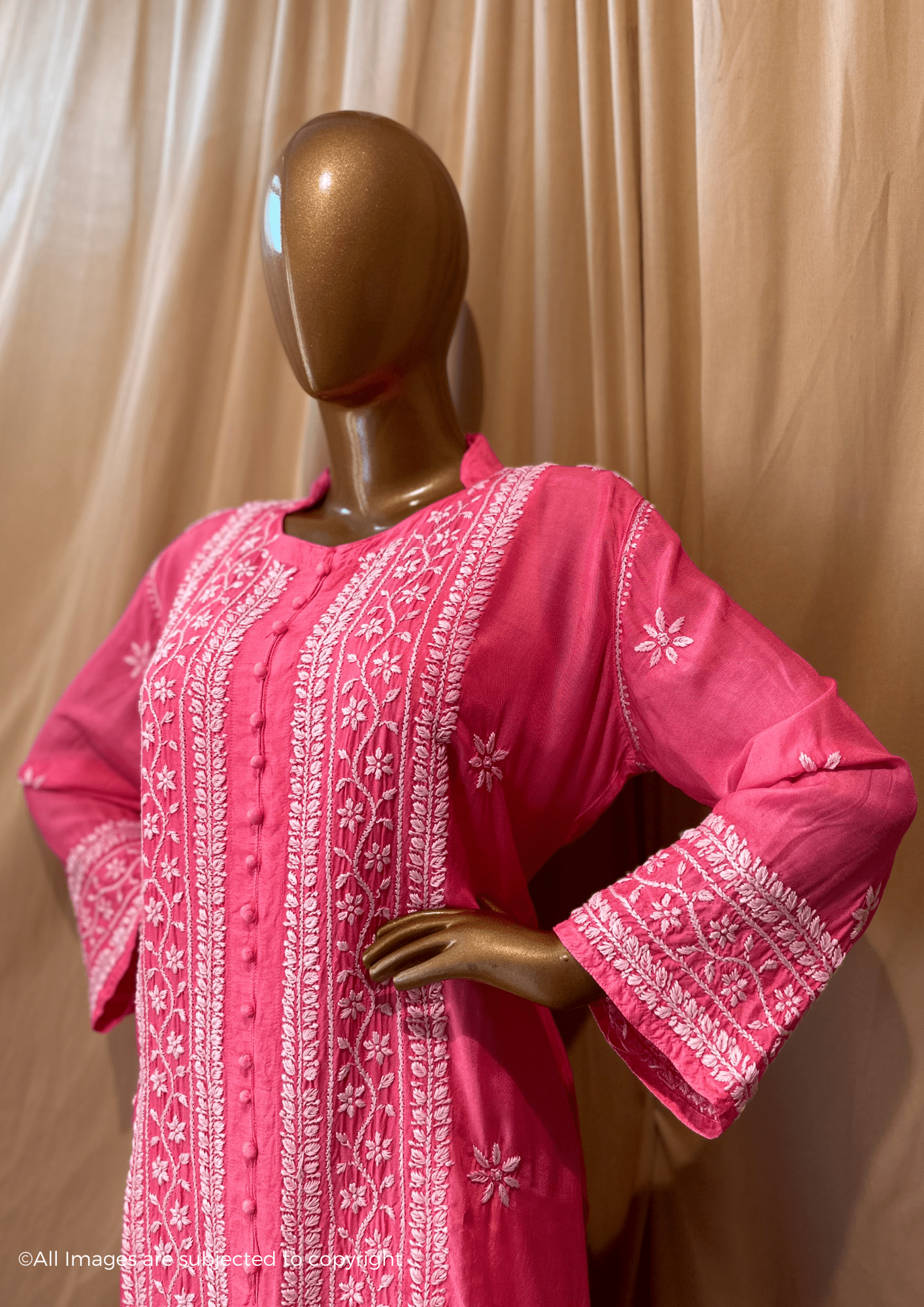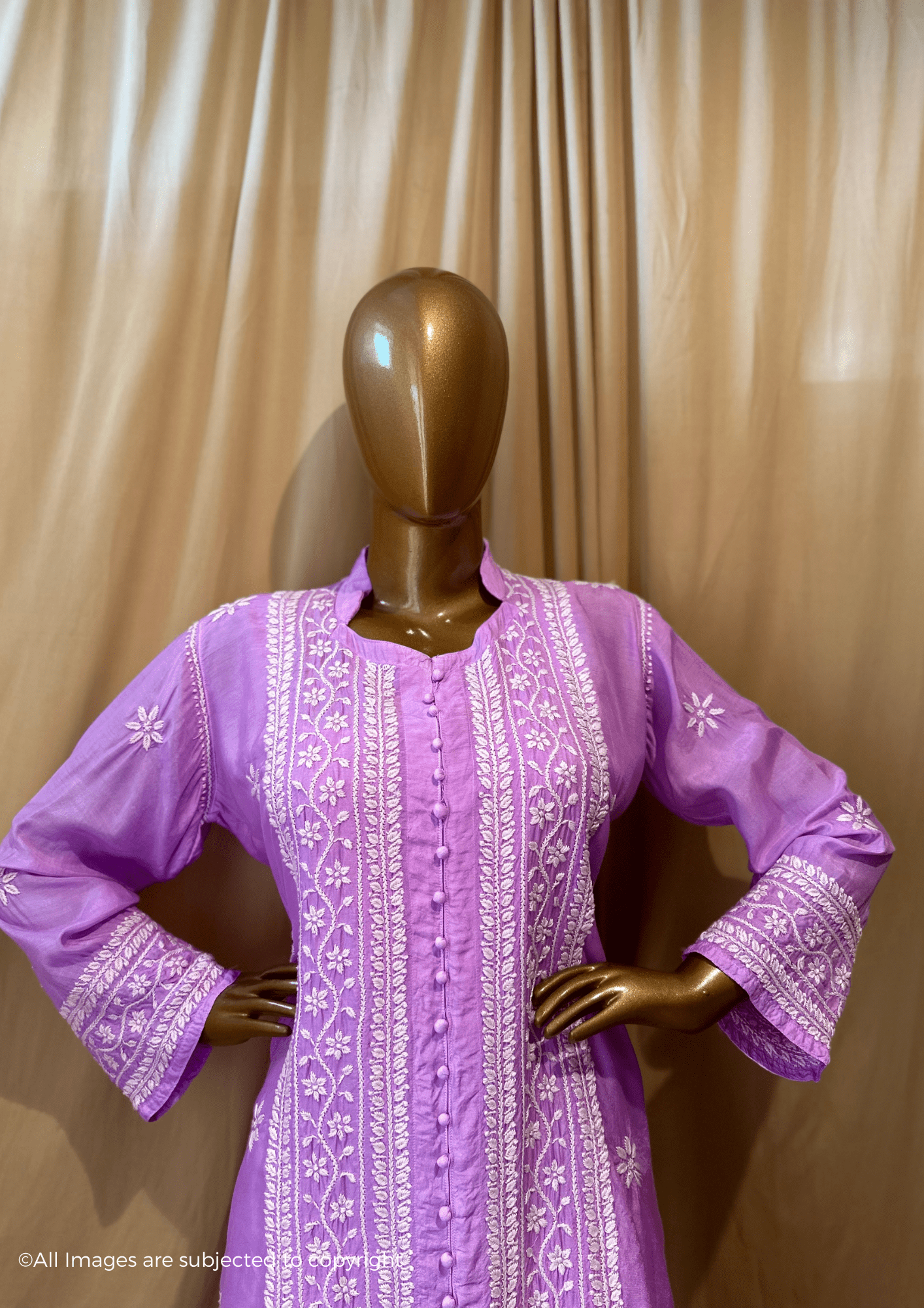 Indulge in luxury with our Fiza Handcrafted Chikankari Muslin Long Kurti. Made with premium muslin, this kurta offers both comfort and style with its effortless fit. Perfect for daily wear, elevate your look with this exclusive piece.