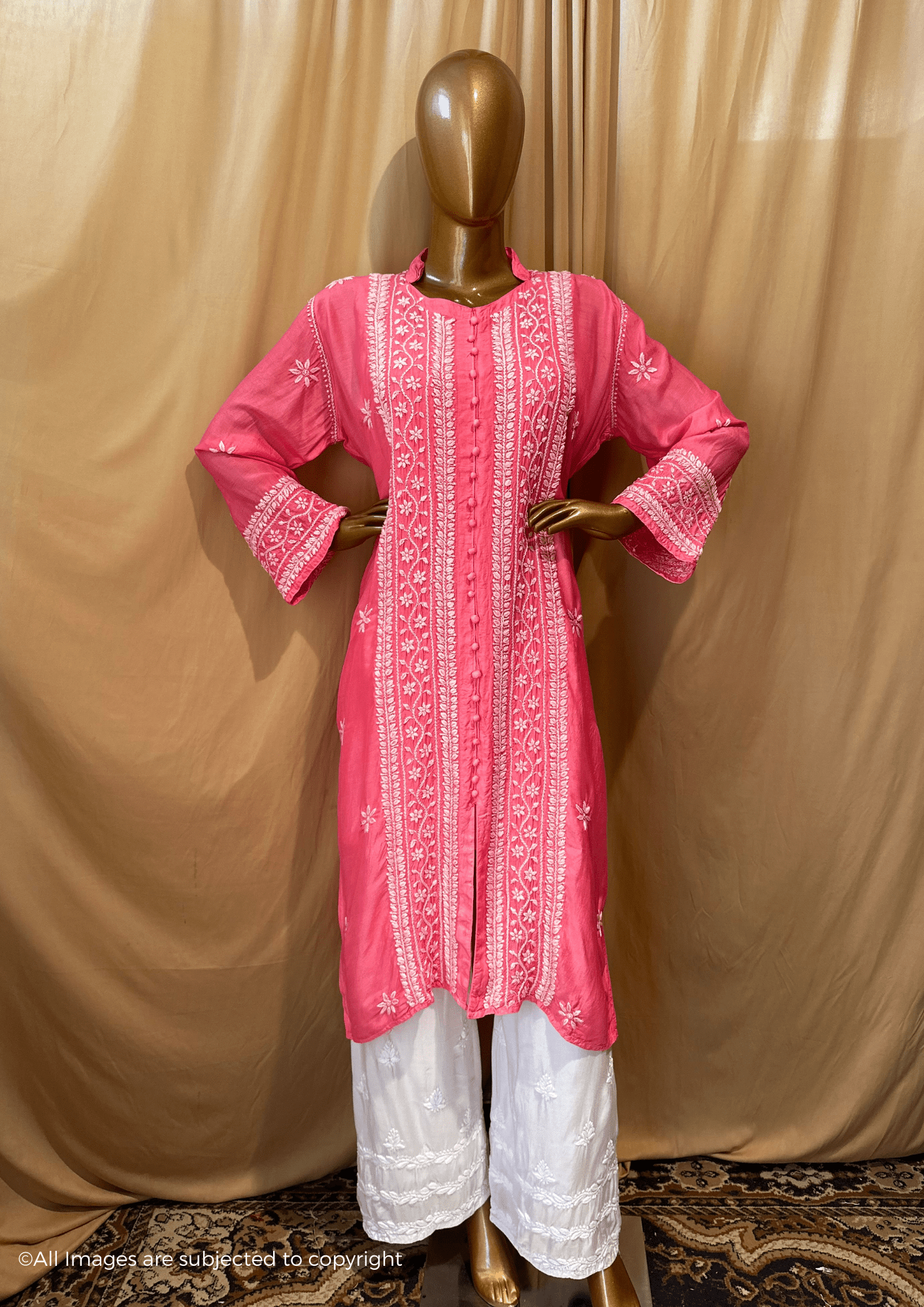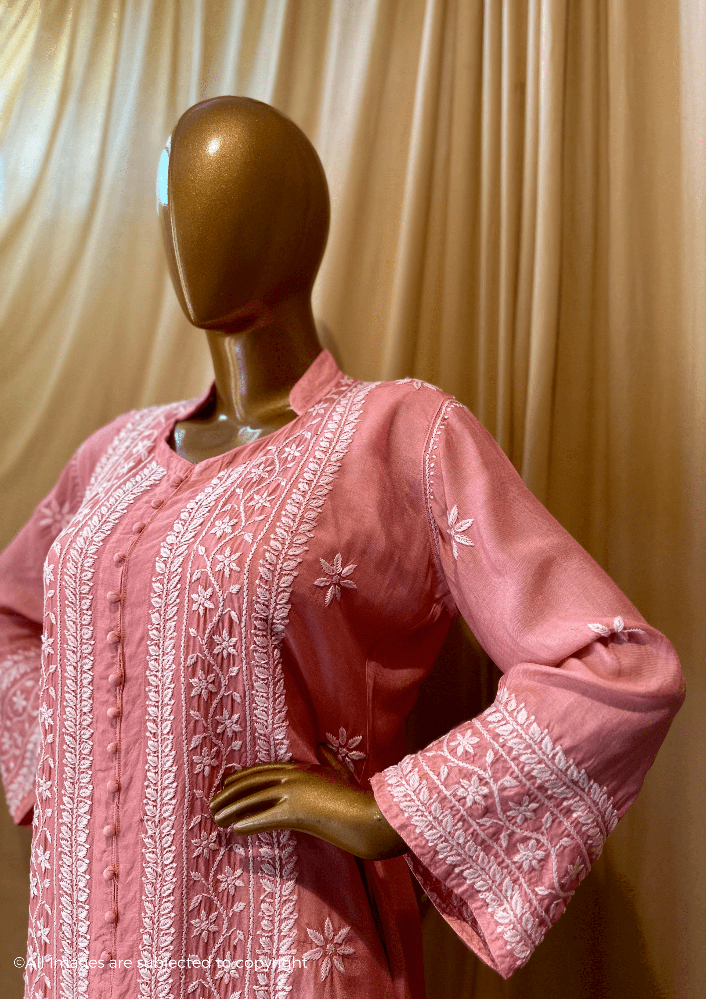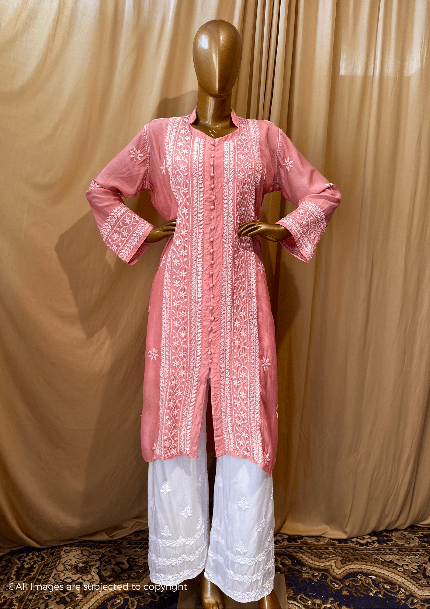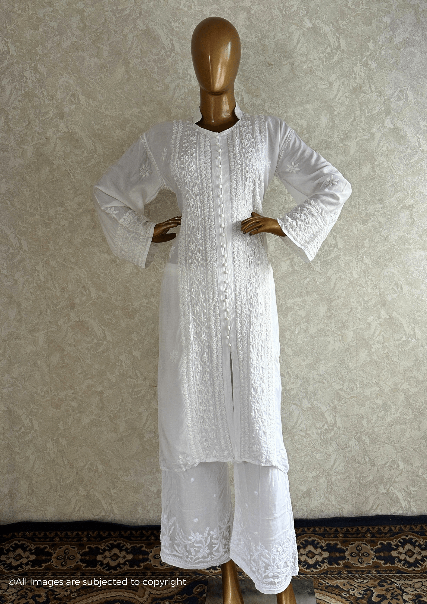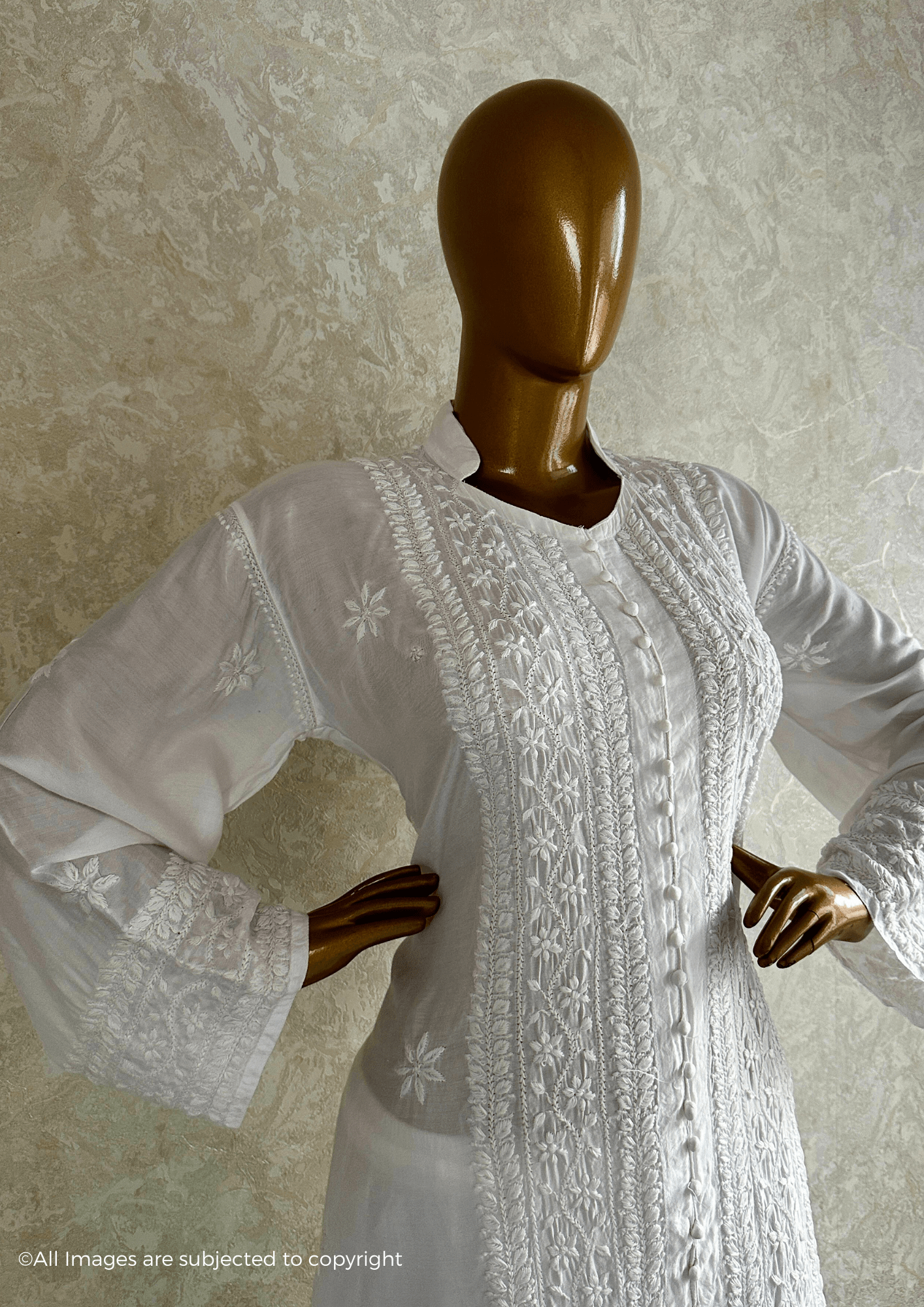 Fiza Handcrafted Chikankari Muslin Long Kurti