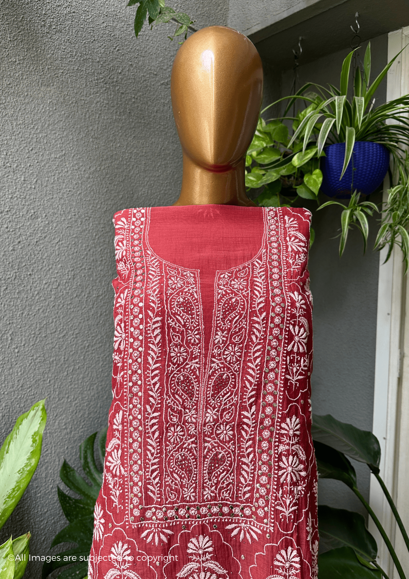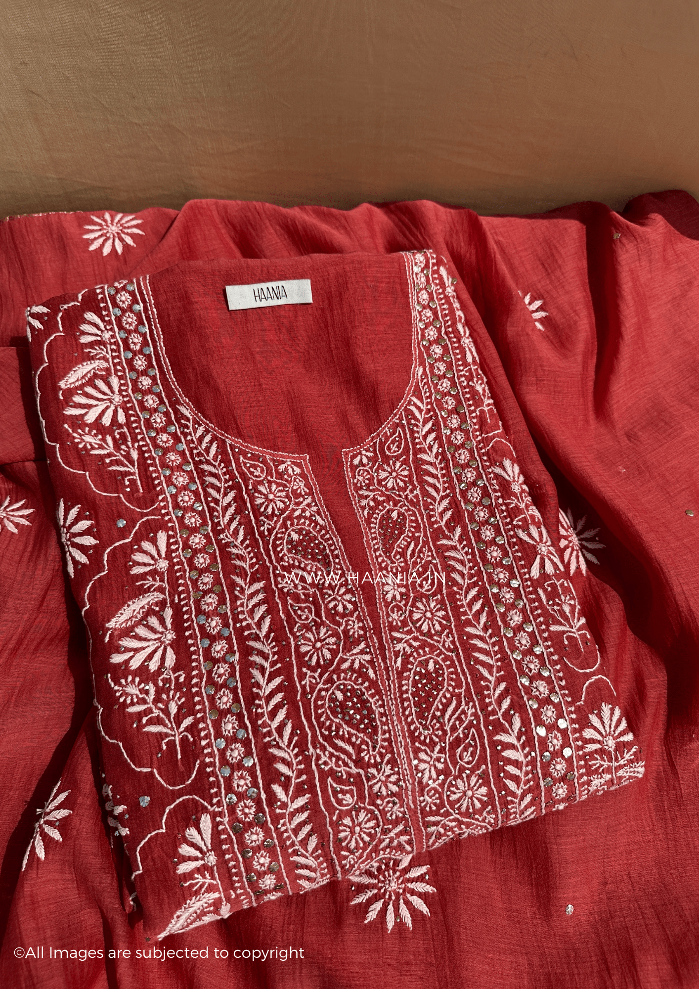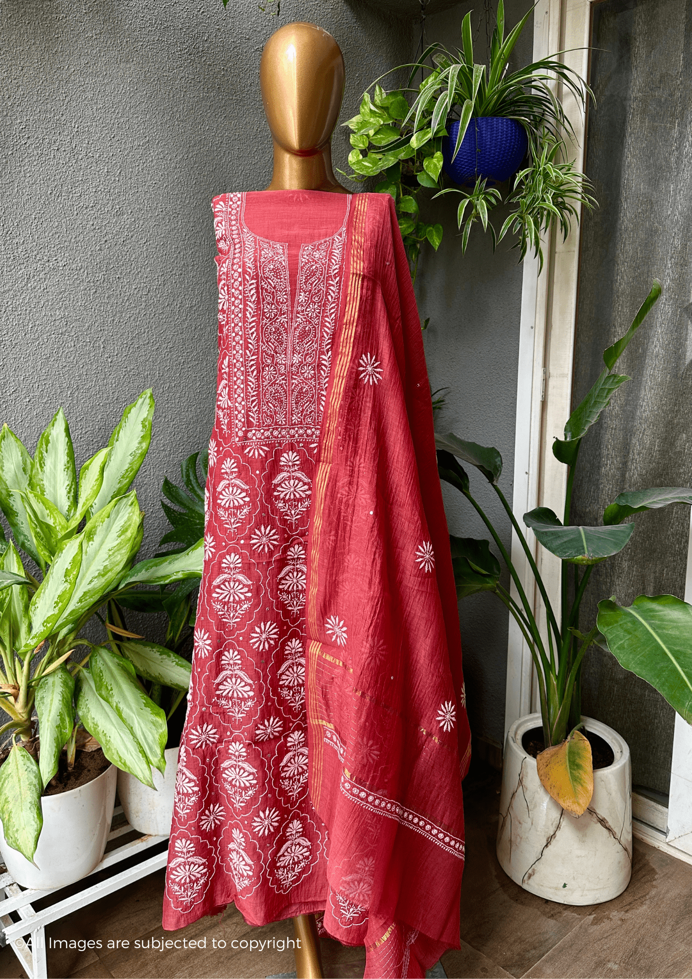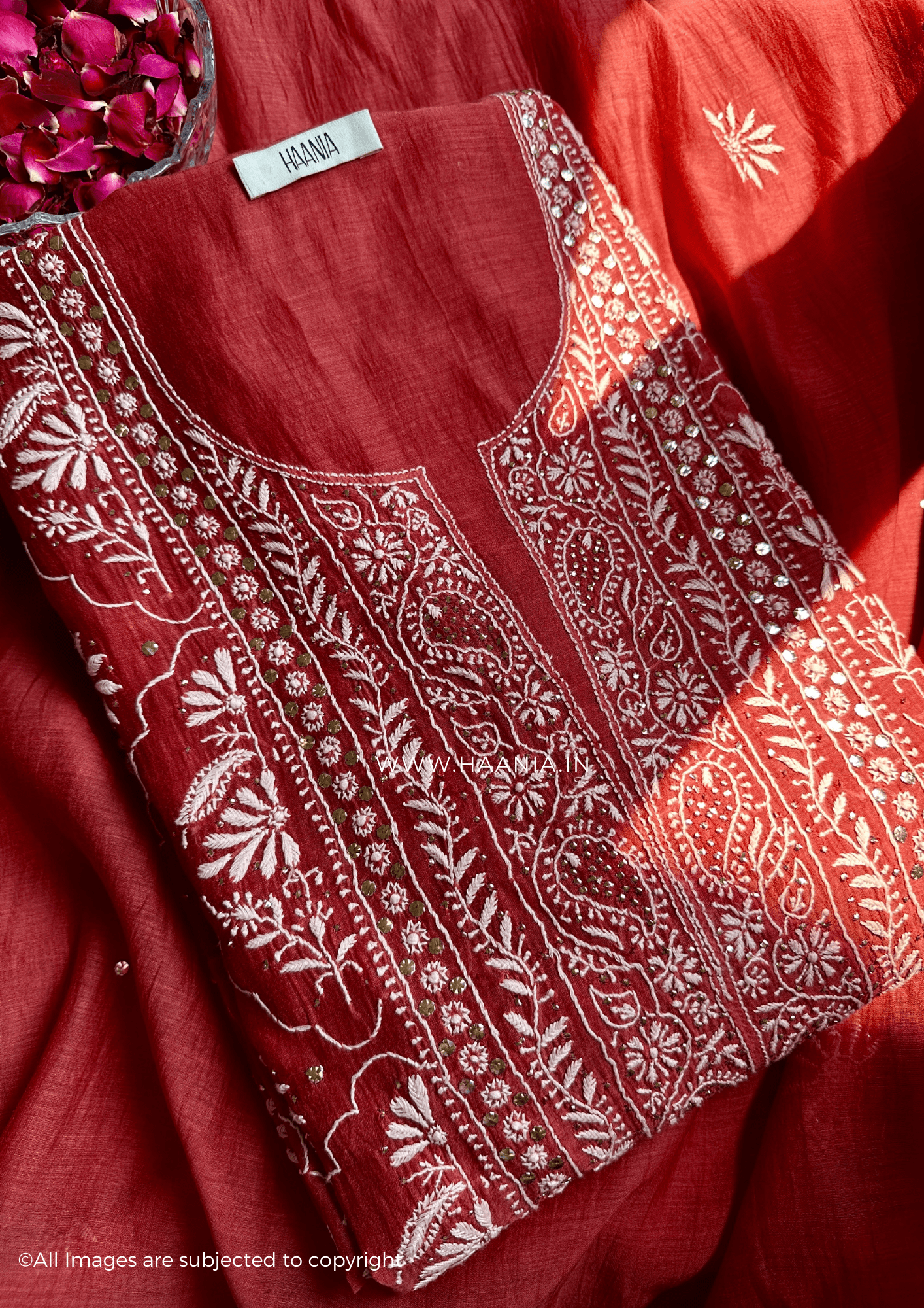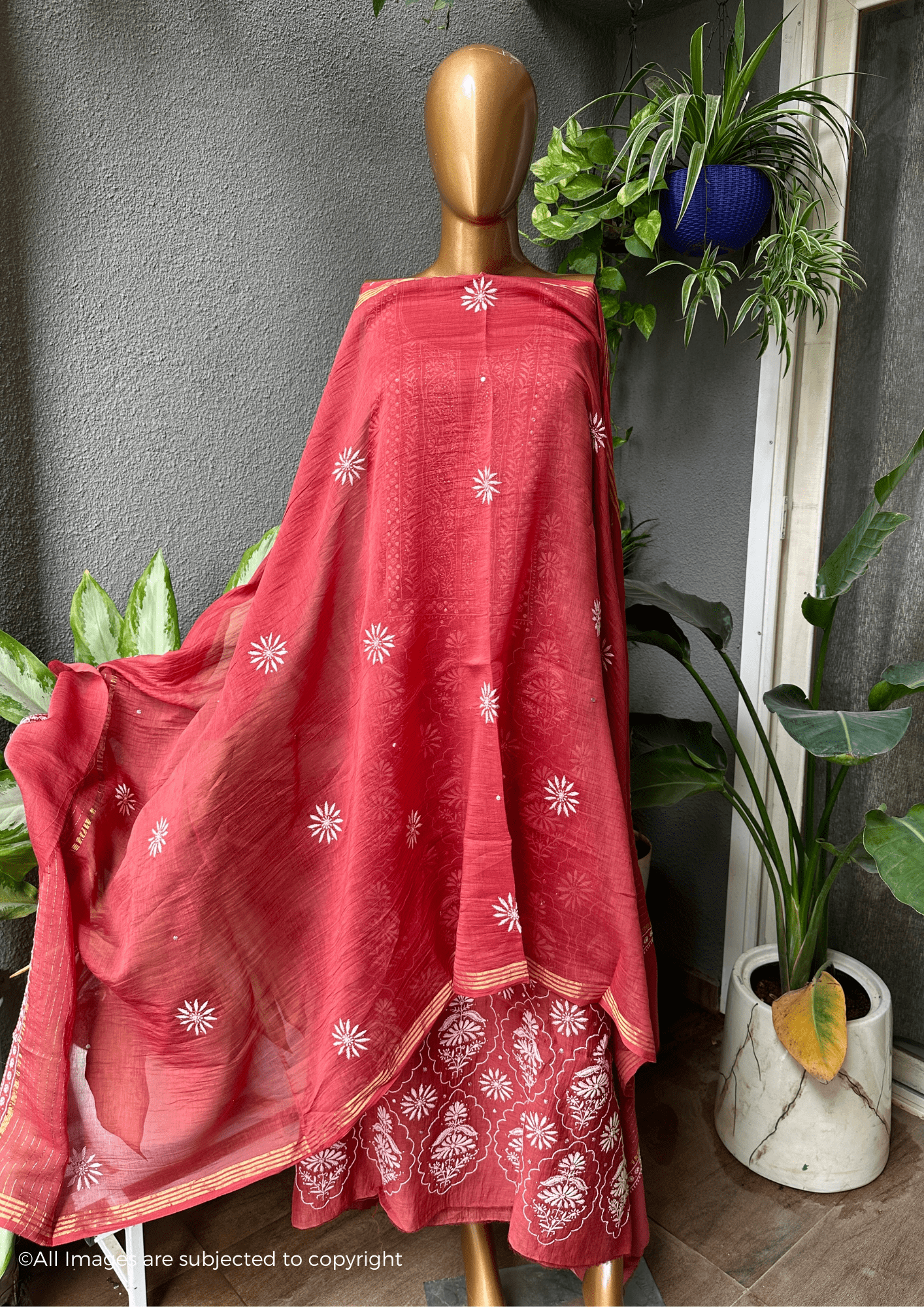 Gulmohar Handcrafted Chikankari Mul Chanderi Suit Set