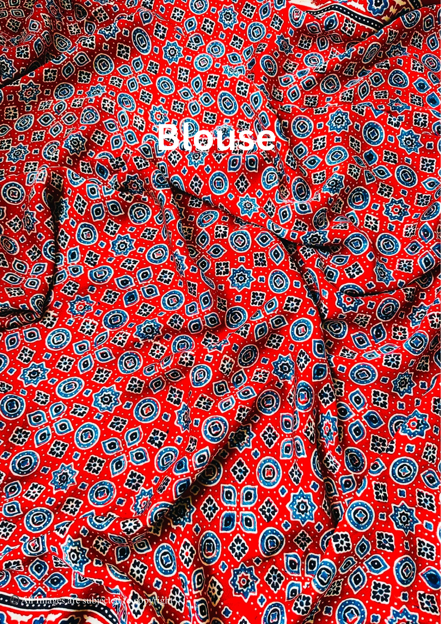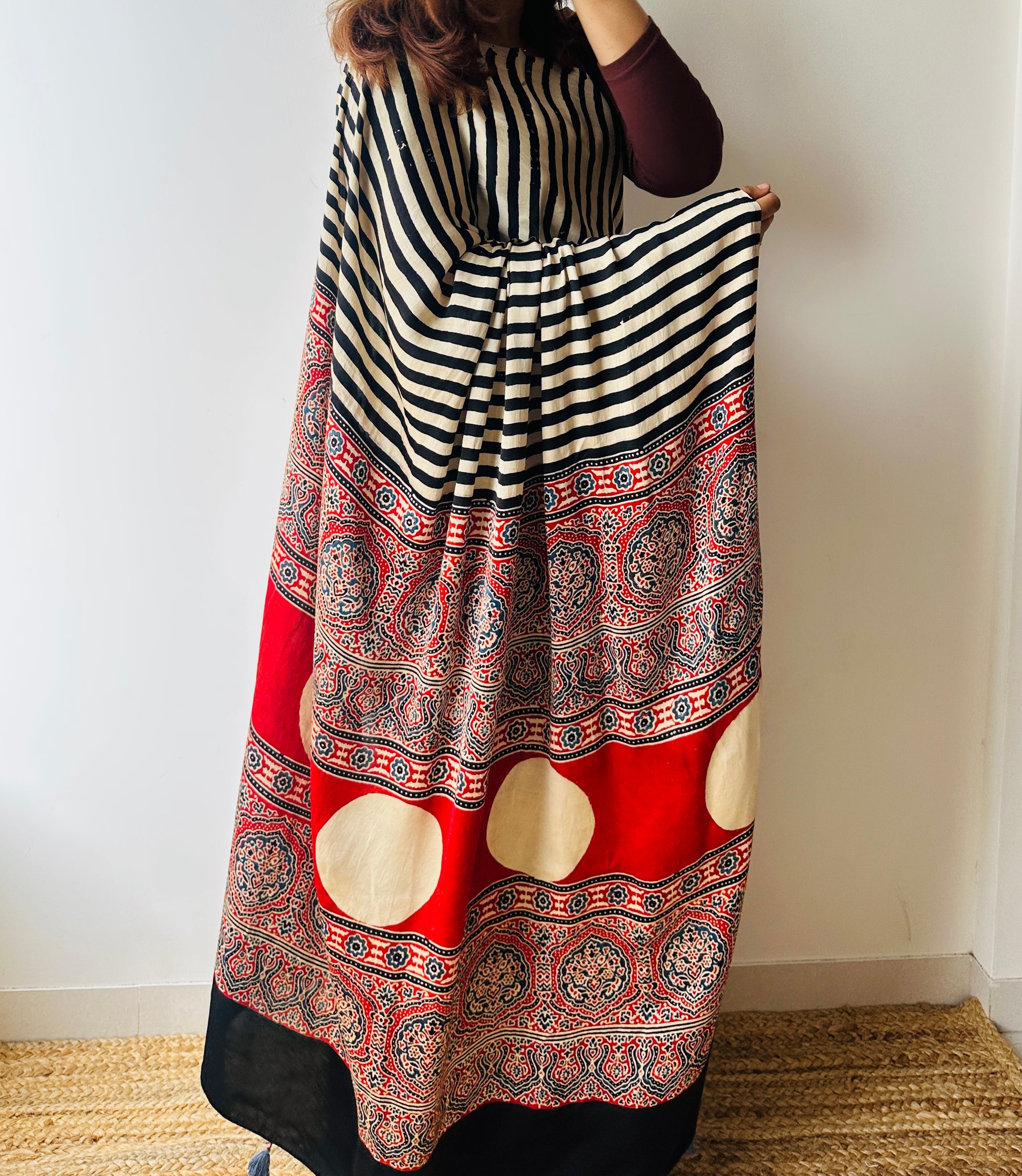 - 100% Handblocked Ajrakh: Vegetable dyed