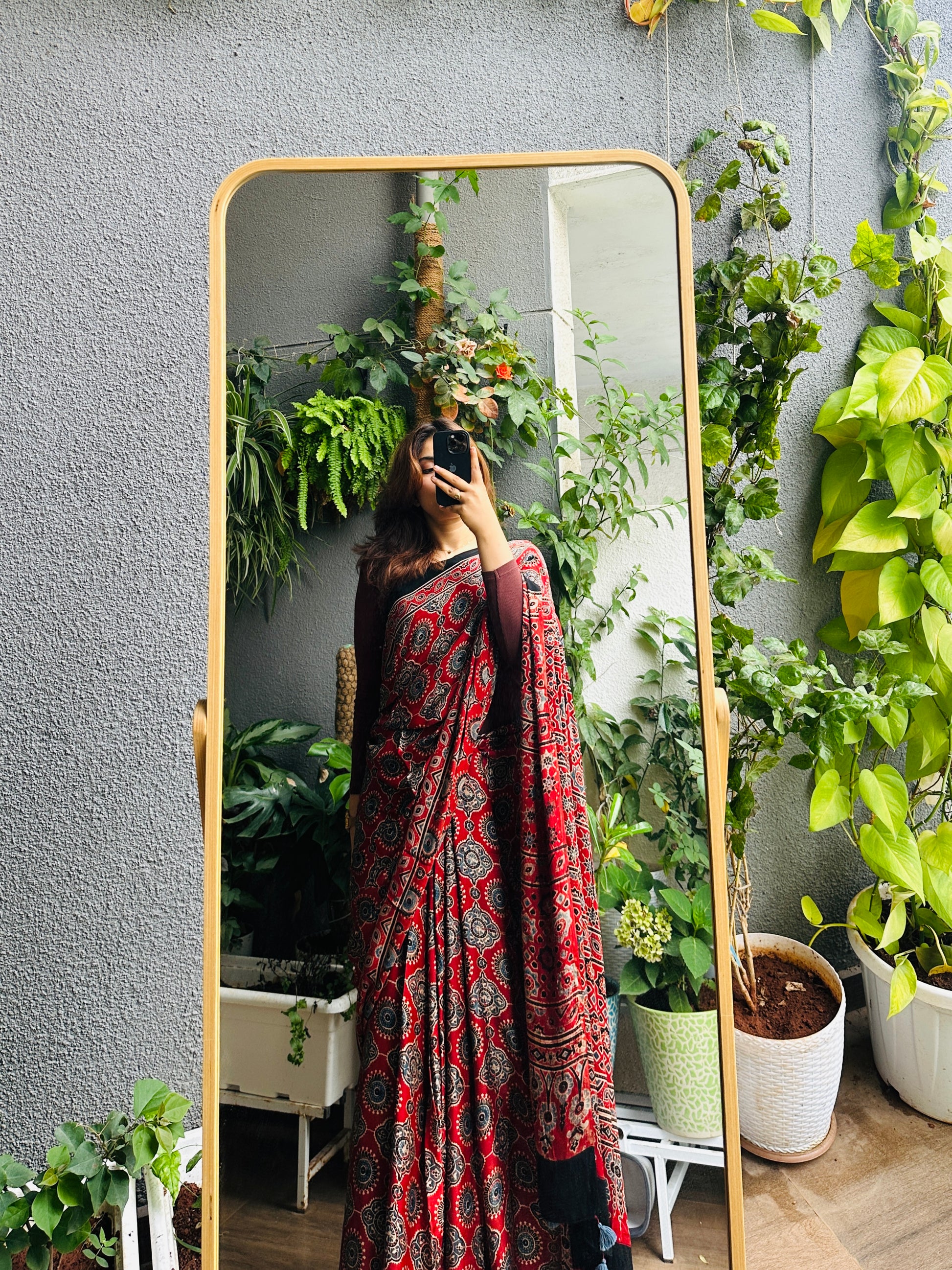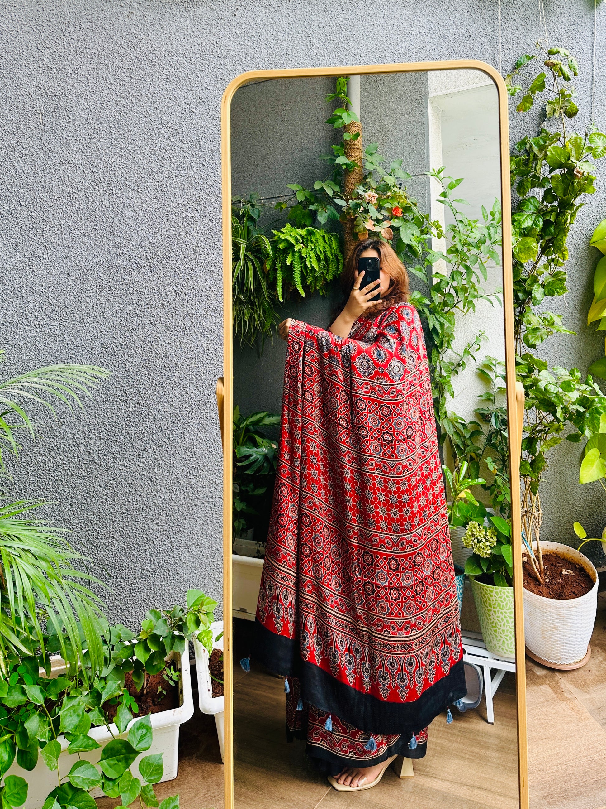 - 100% Handblocked Ajrakh: Vegetable dyed