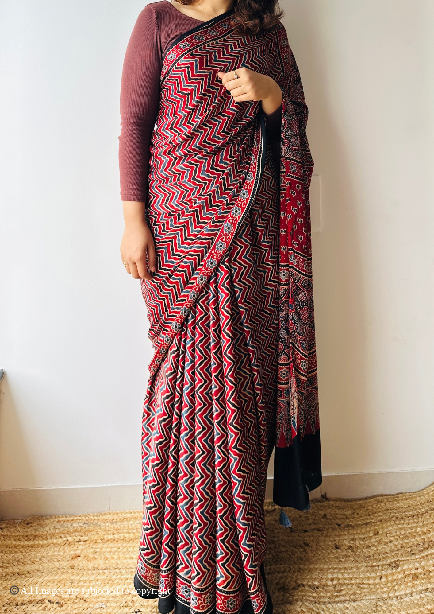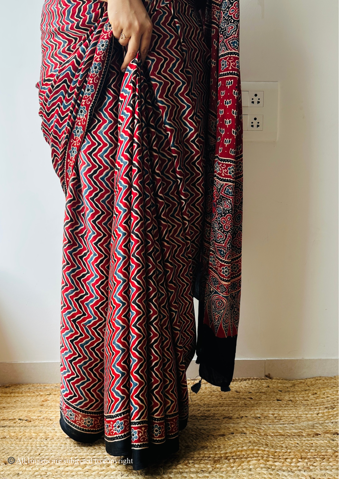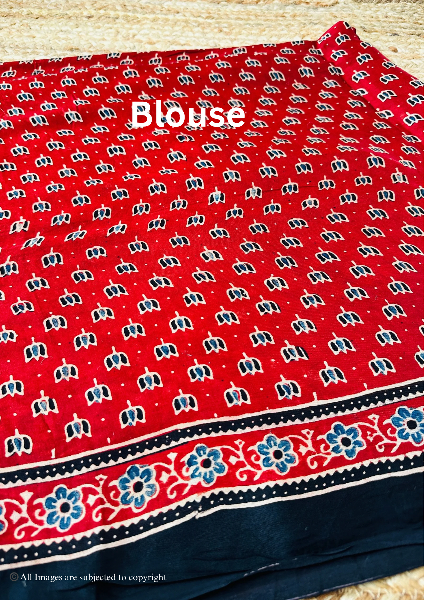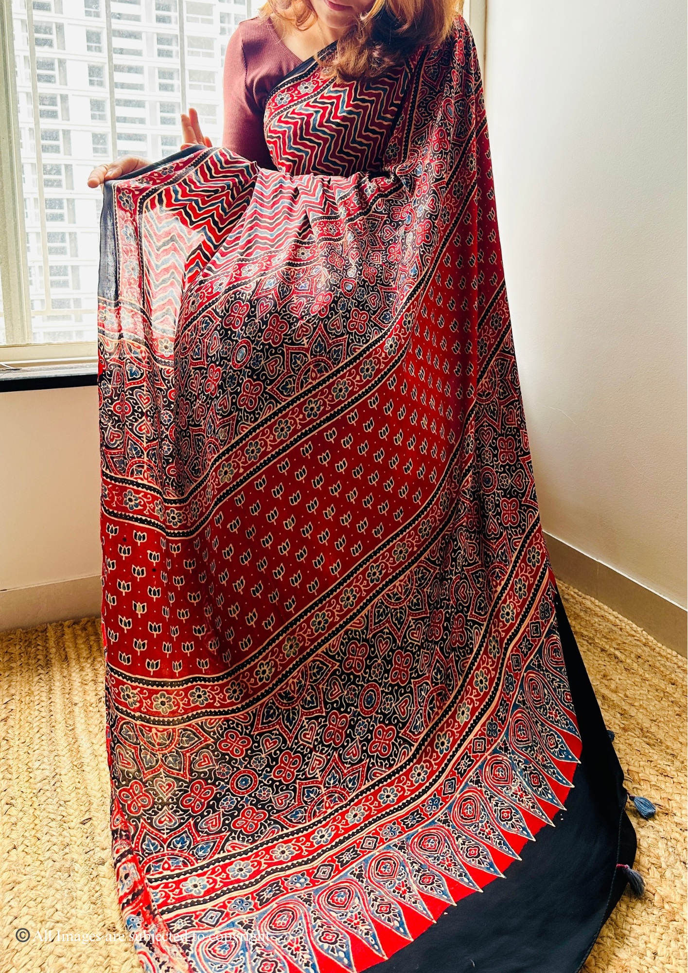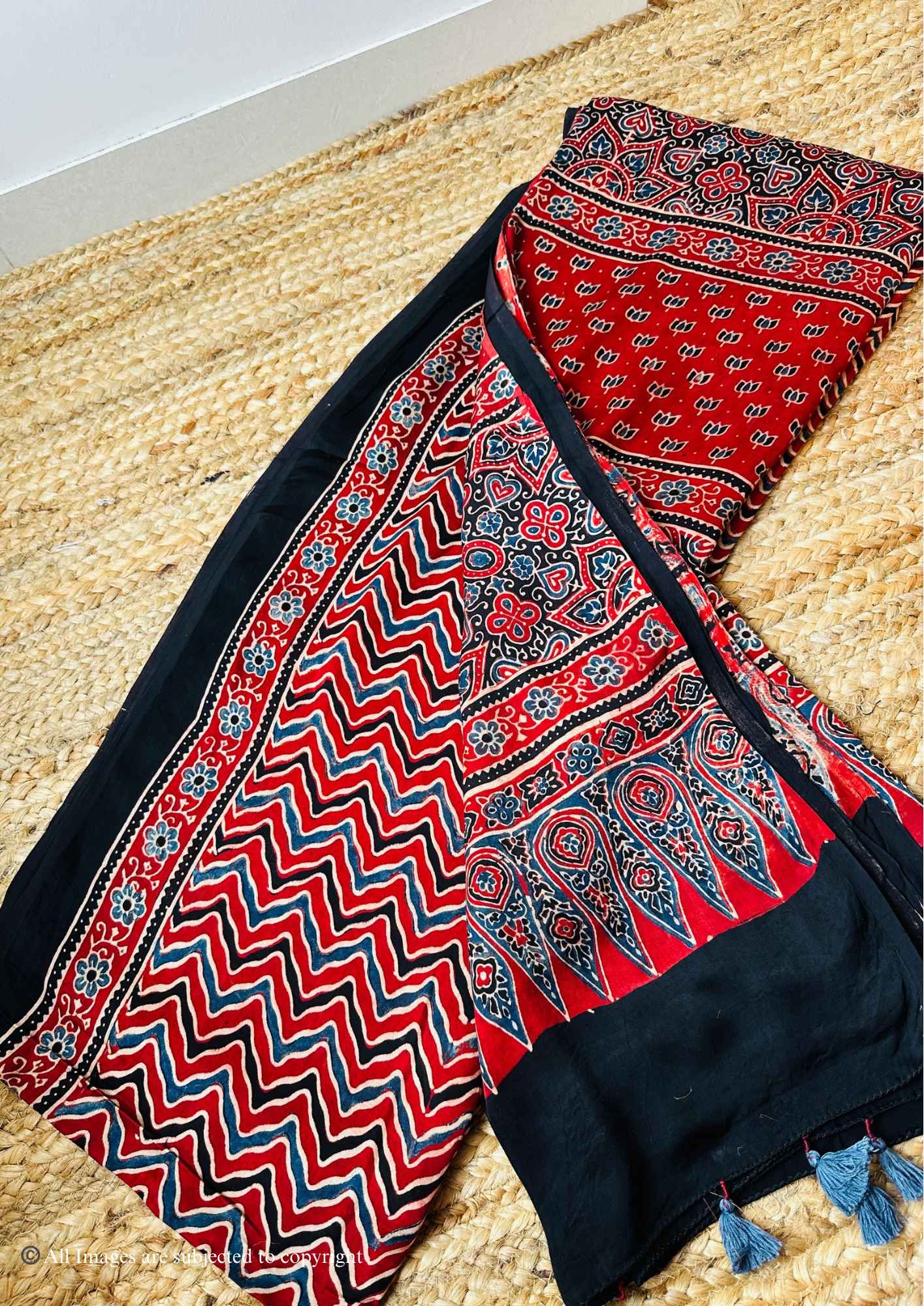 - 100% Handblocked Ajrakh: Vegetable dyed