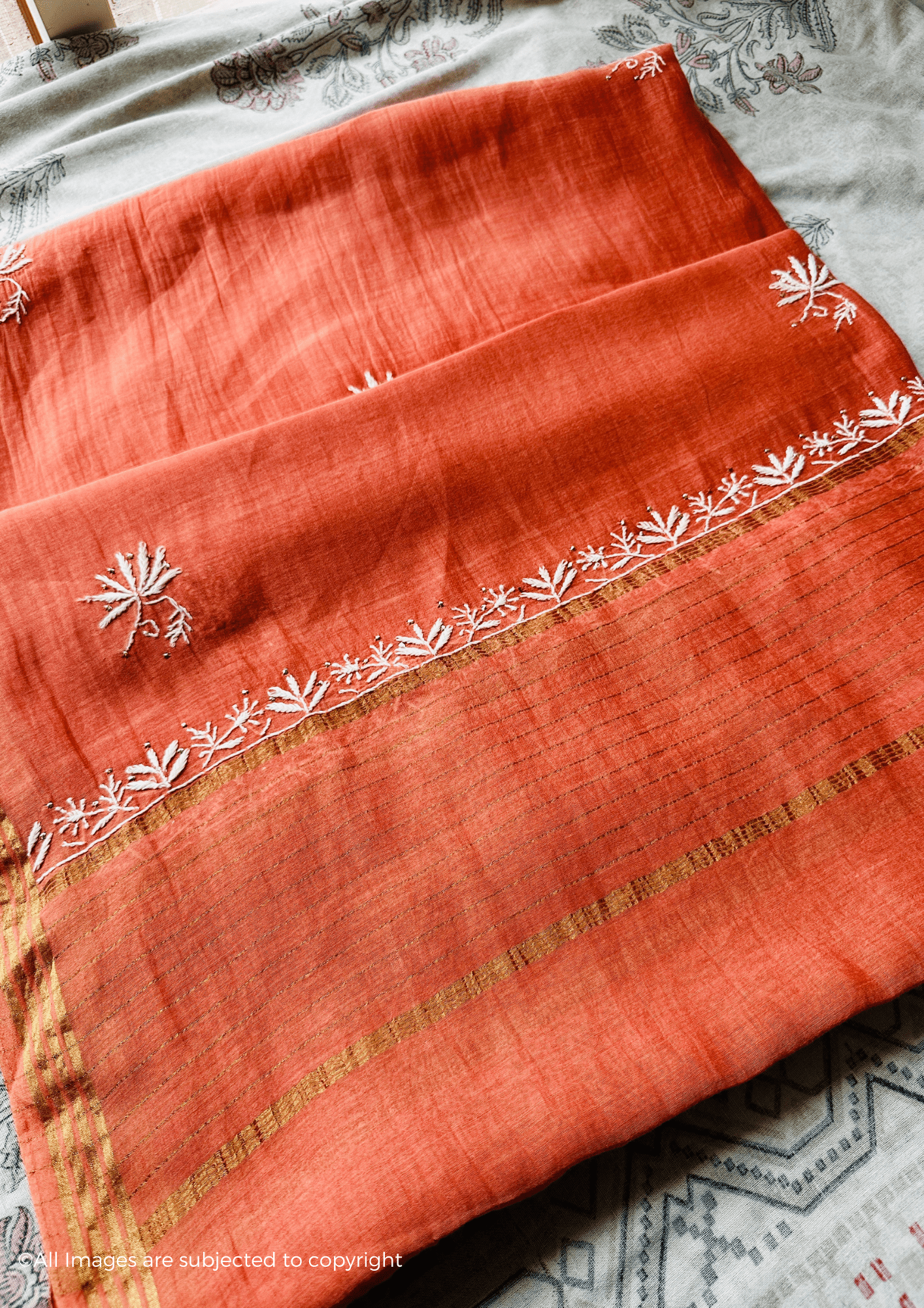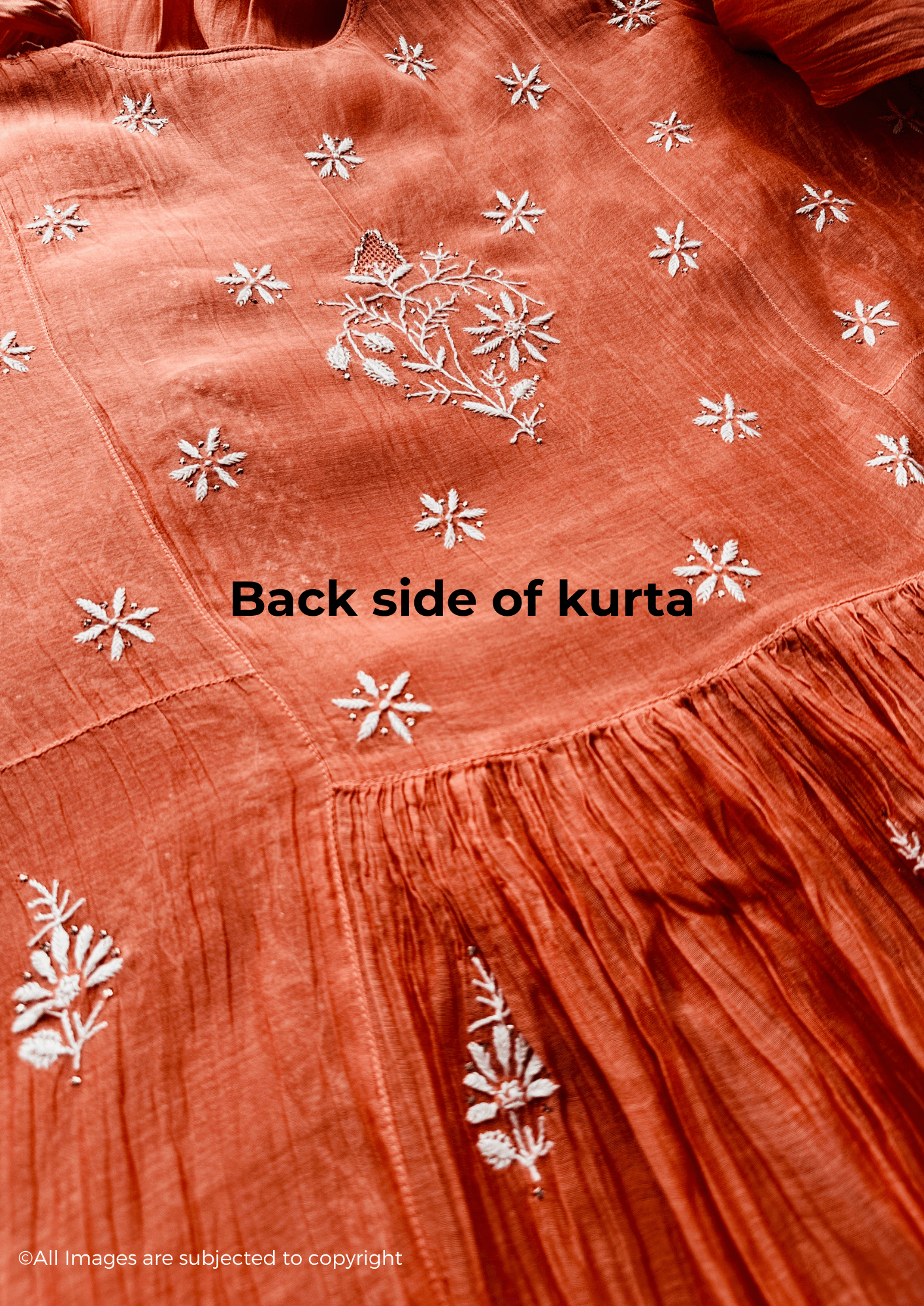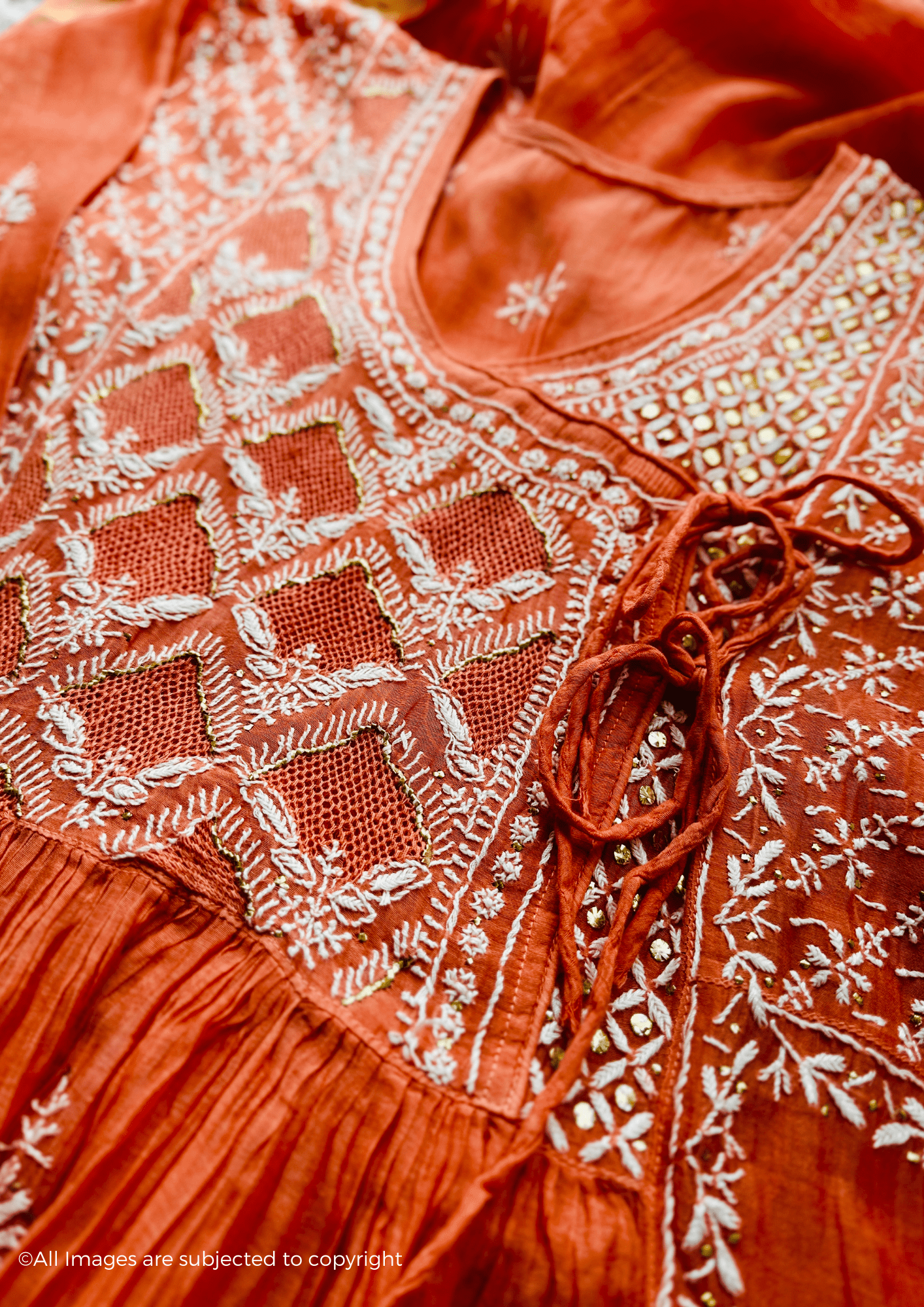 Handcrafted Chikankari Mul Chanderi Angrakha with Kasab Jaal & Kamdani Embellishments