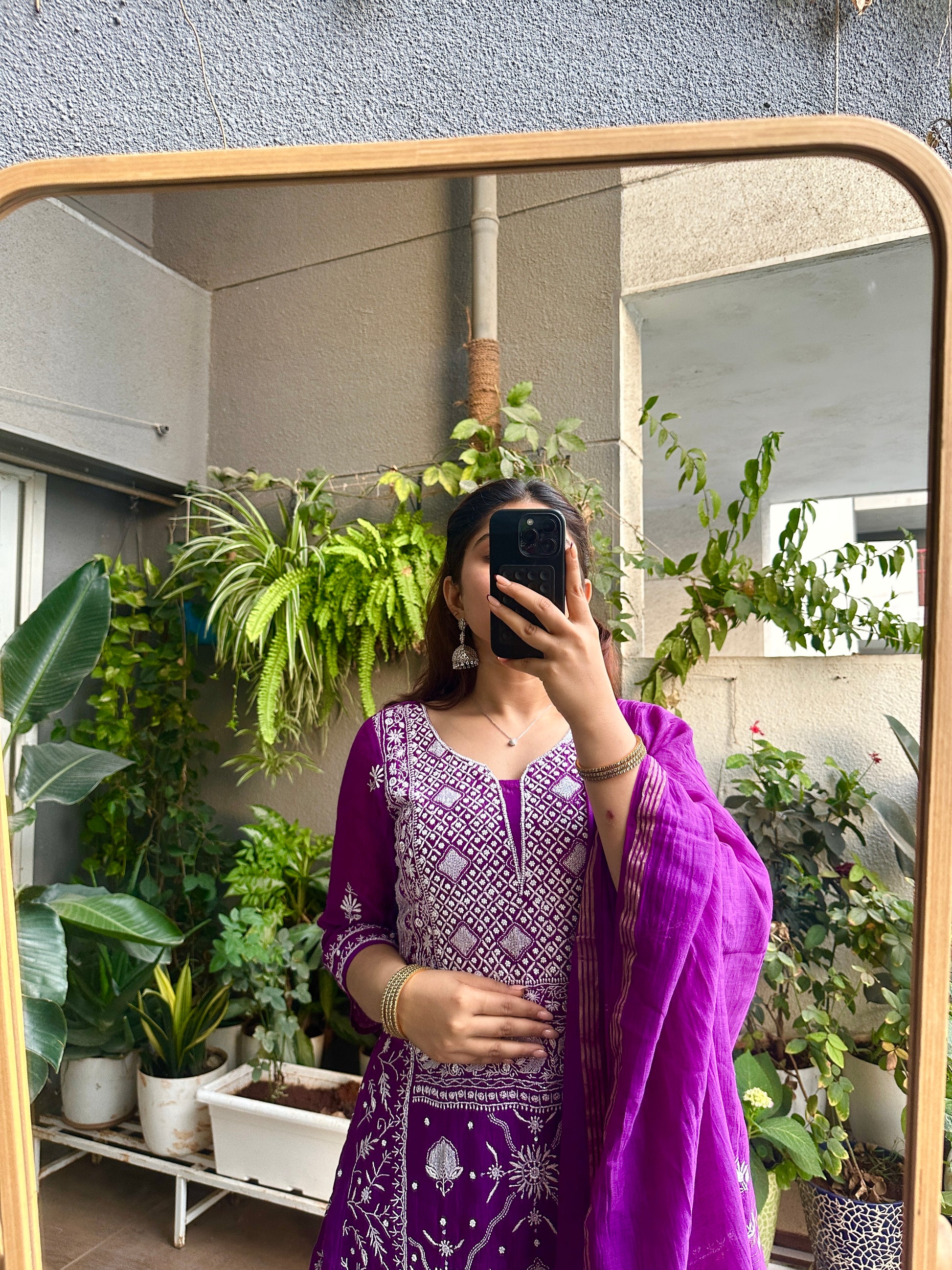 Handcrafted Chikankari Mul Chanderi Stitched Suit Set