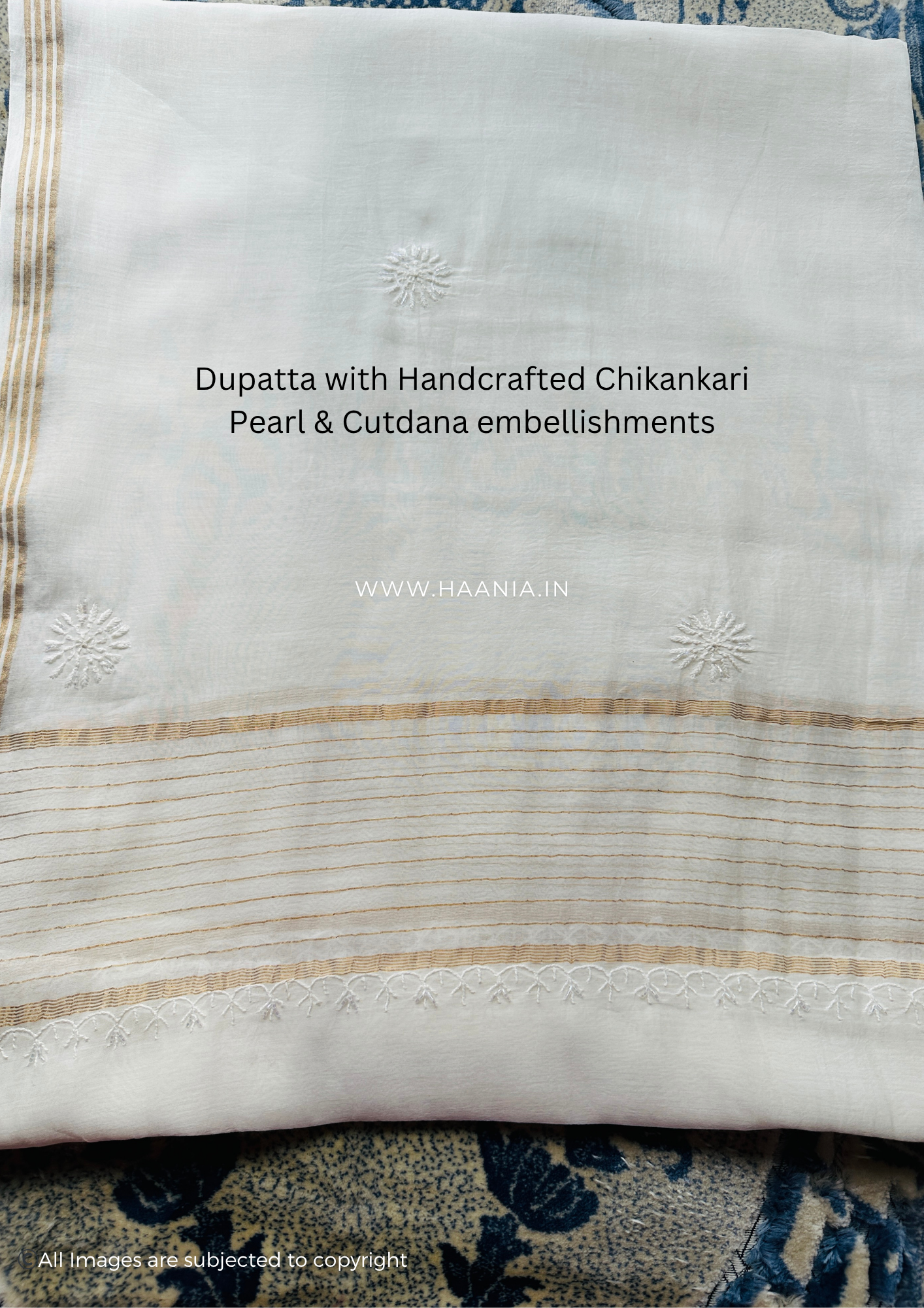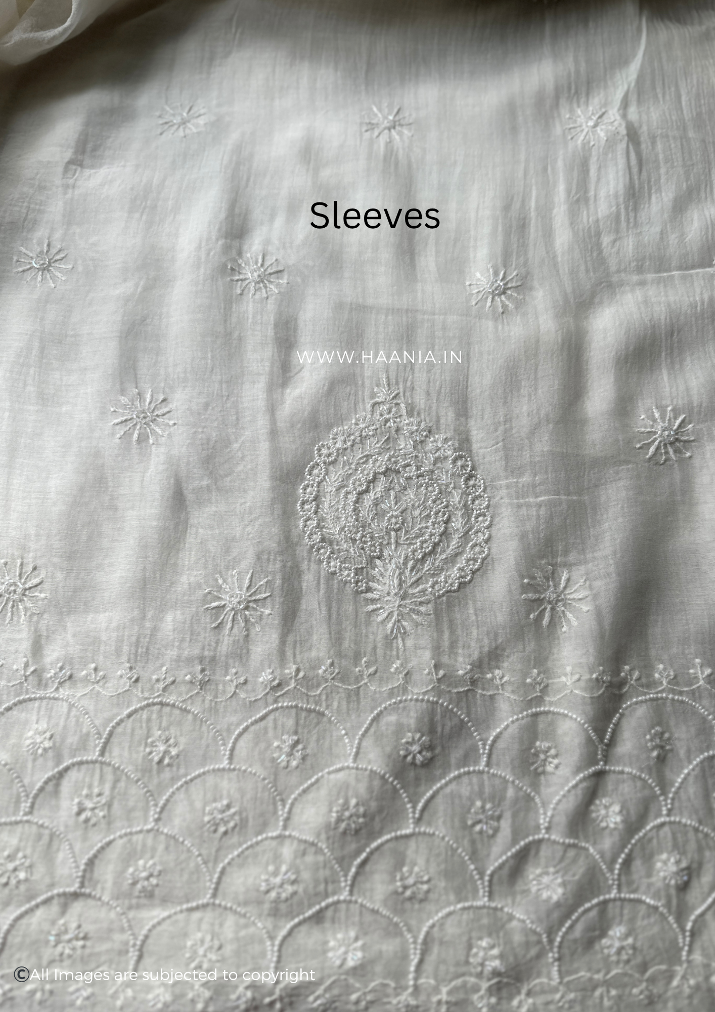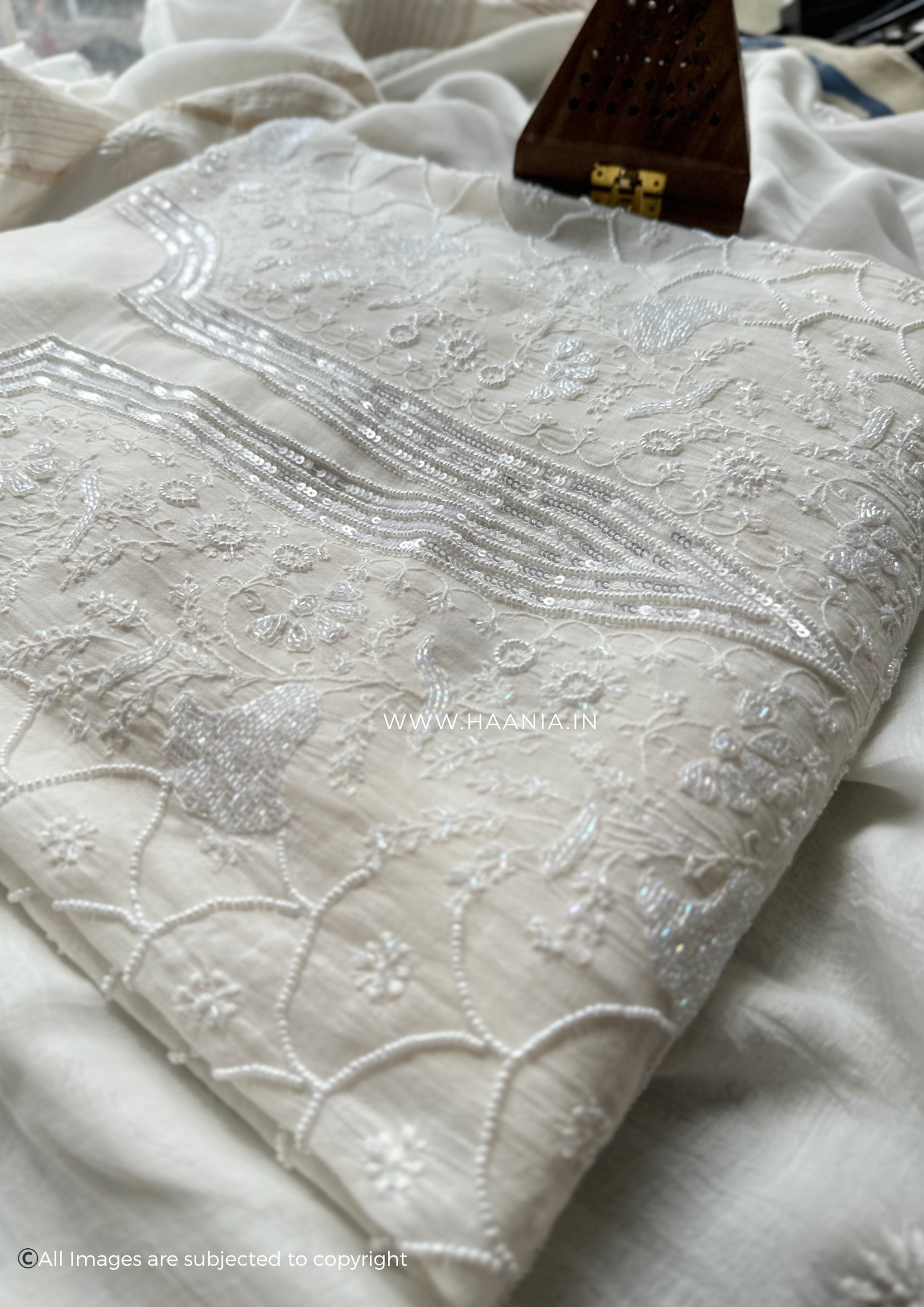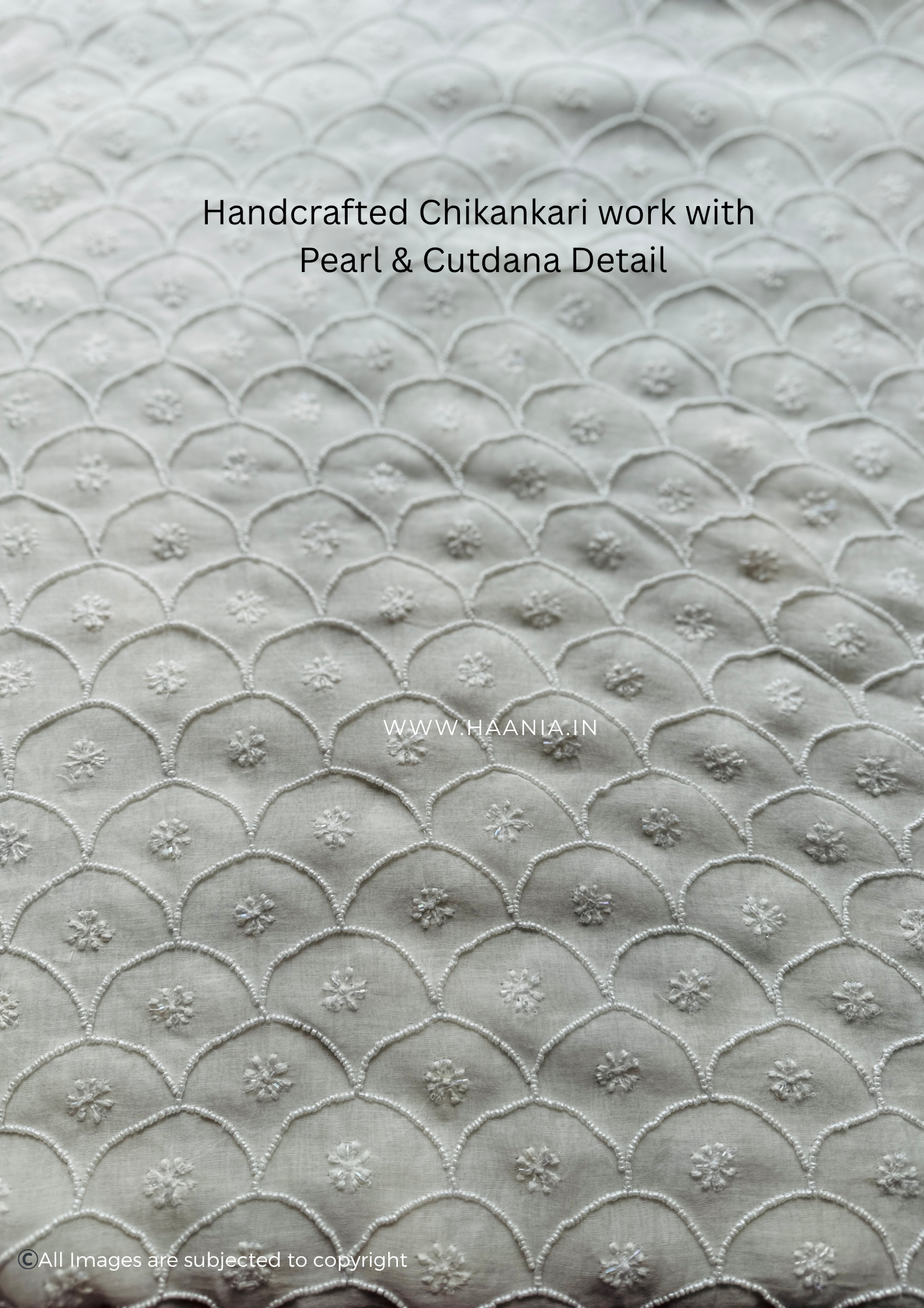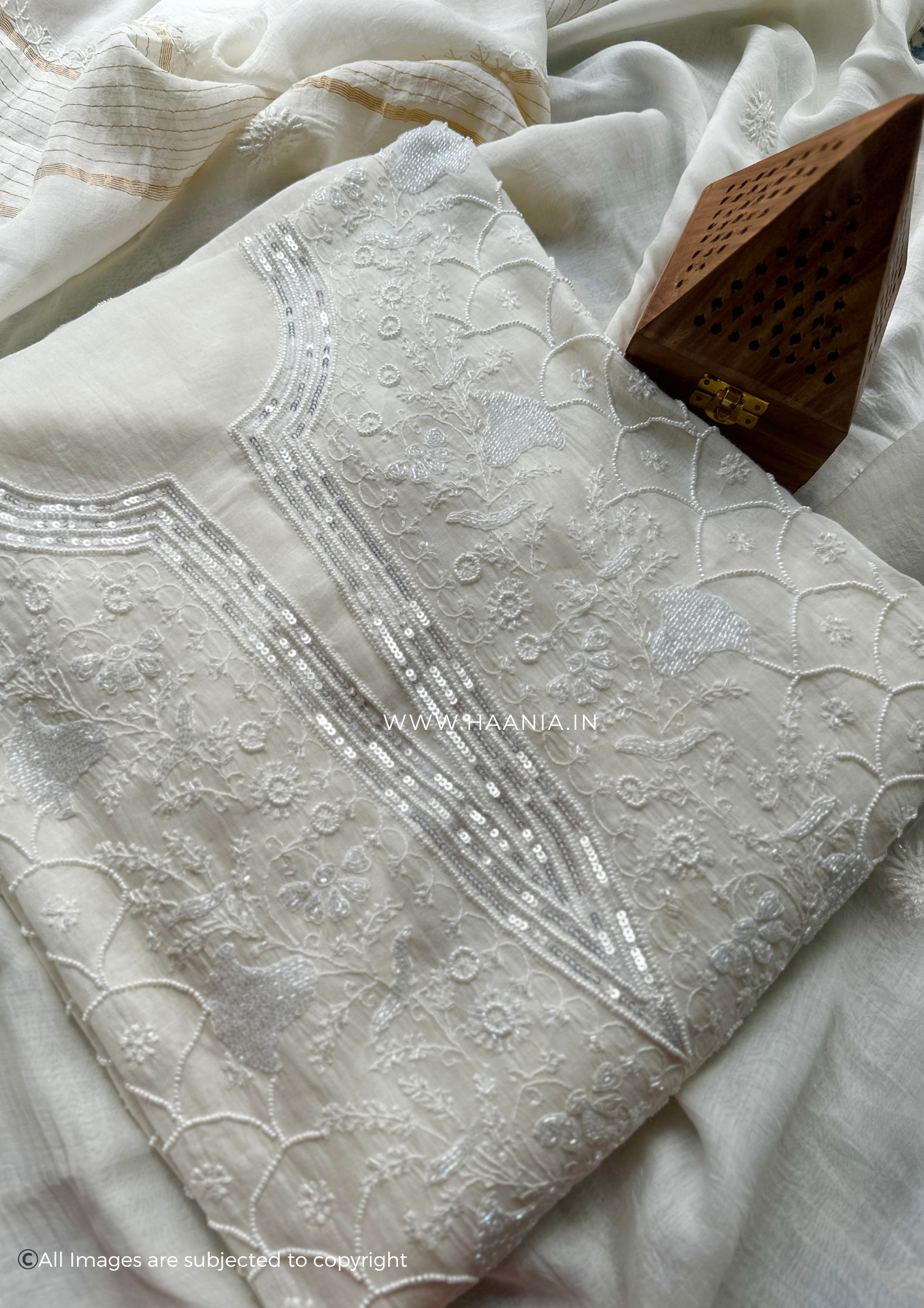Handcrafted Chikankari Mul Chanderi Unstitched Suit Set With Pearl & Cutdana Embellishments