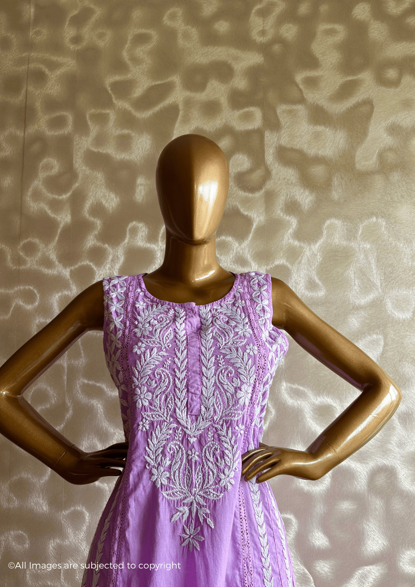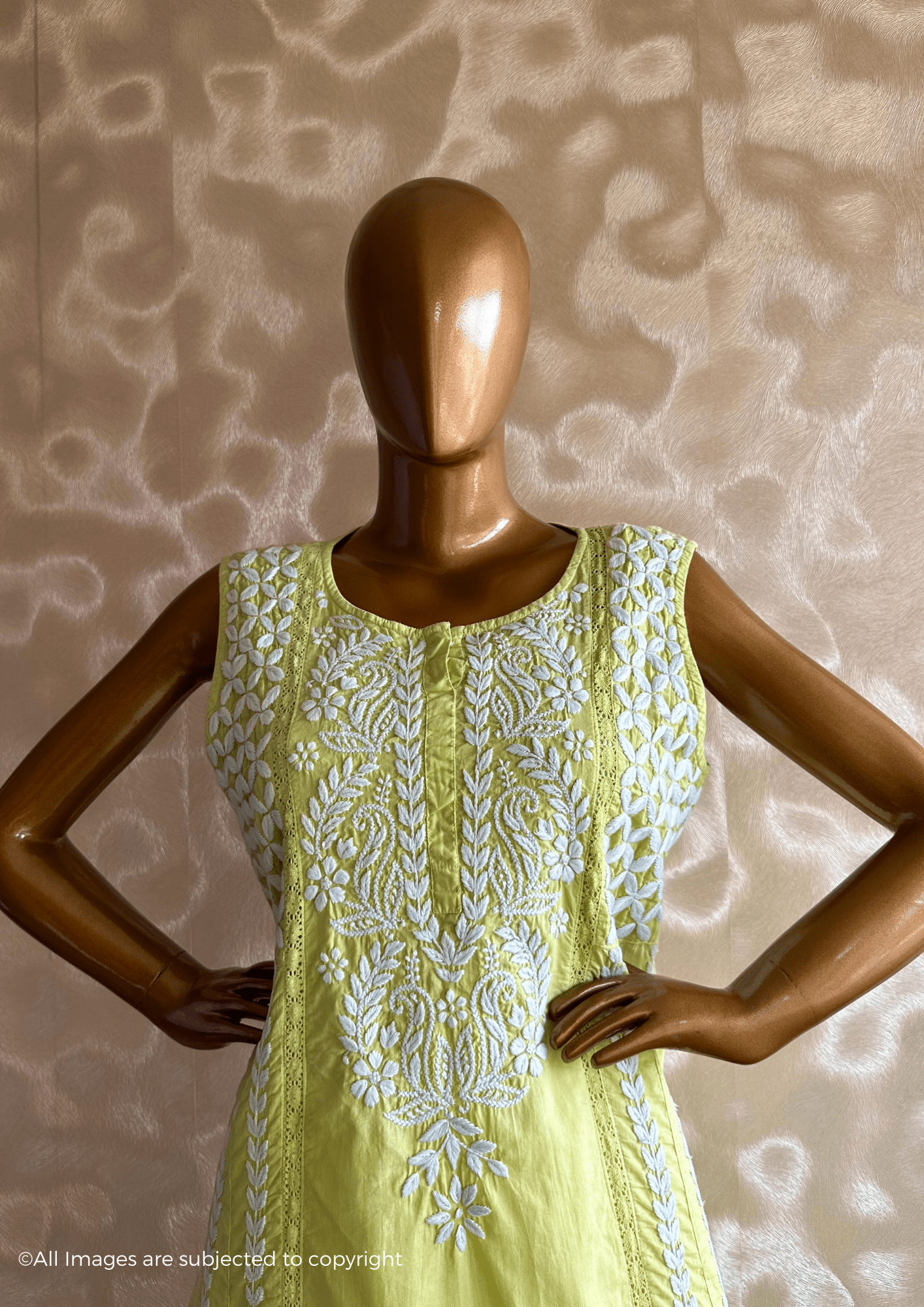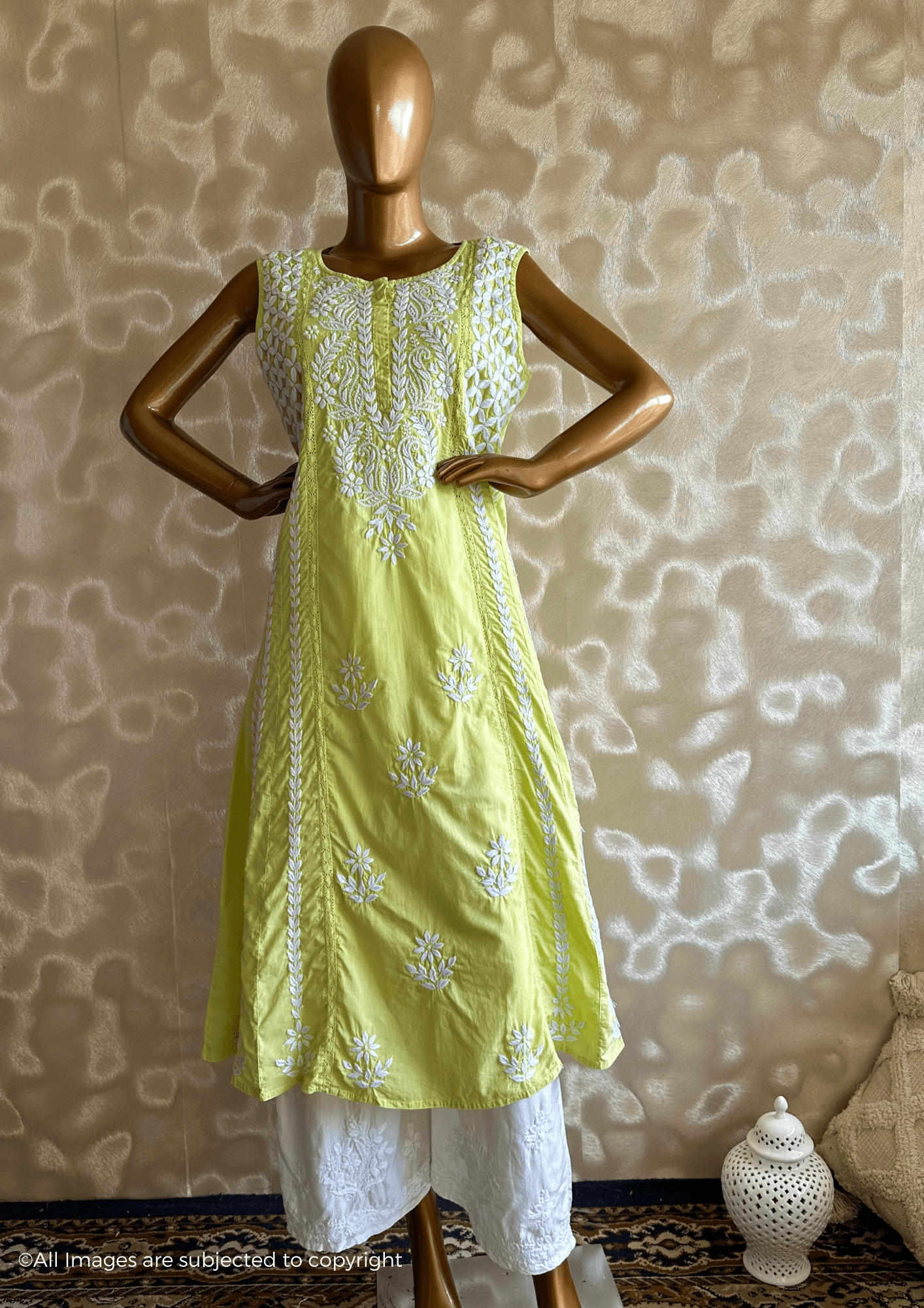 Handcrafted Chikankari Mul Cotton Cut Sleeves Kurta