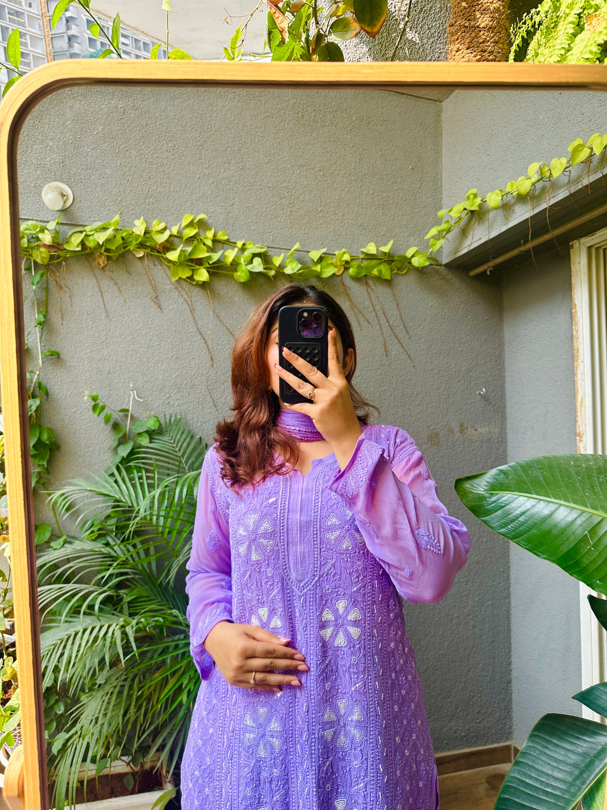 Handcrafted Chikankari Pearl & Cutdana Chikankari Full Suit Set - Design 2
