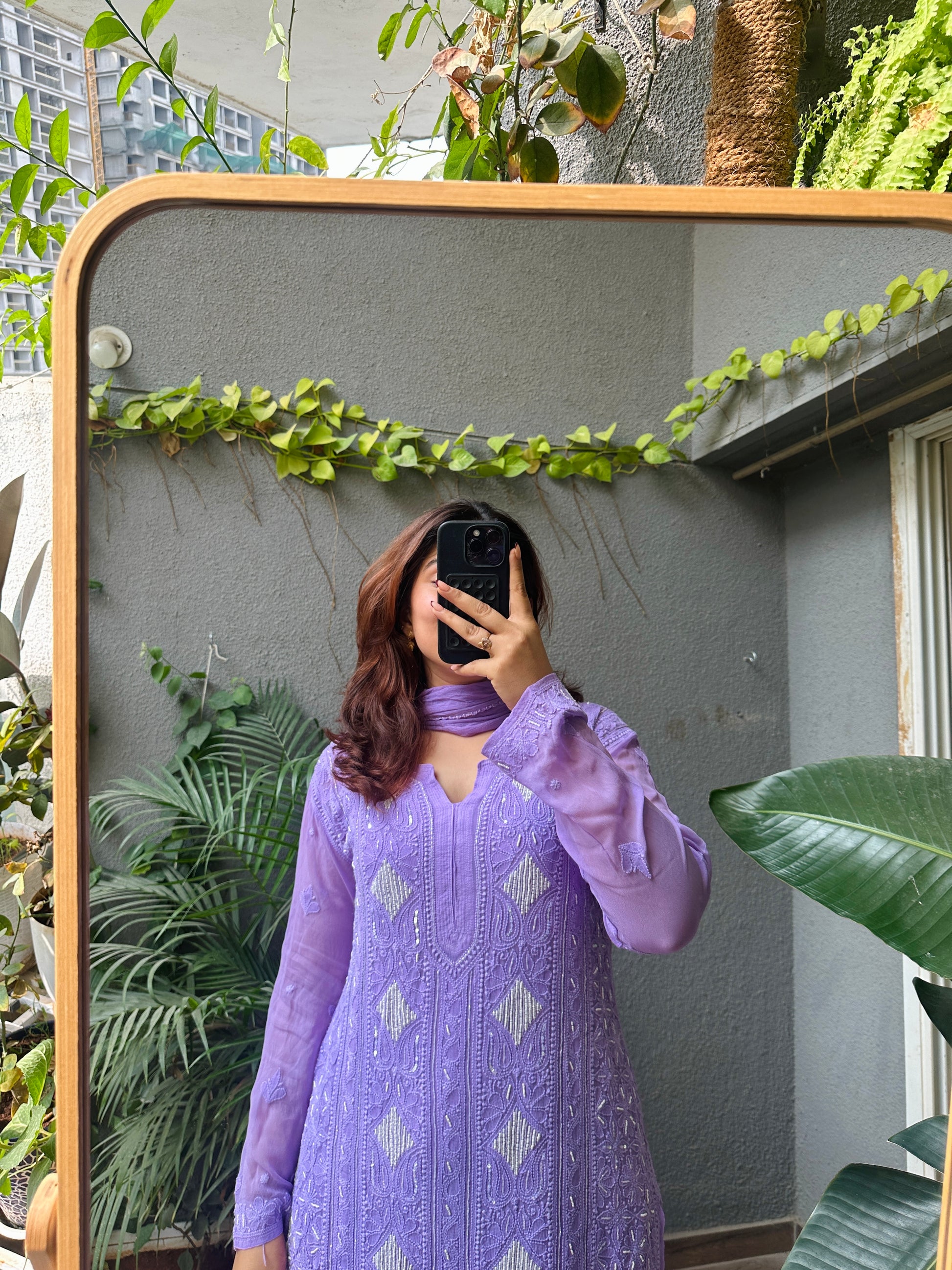Handcrafted Chikankari Pearl & Cutdana Full Suit Set- Design 1