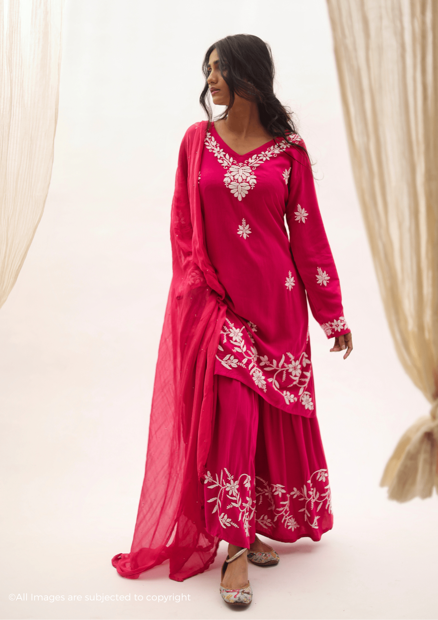 Haya Handcrafted Chikankari Modal Cotton Garara Set