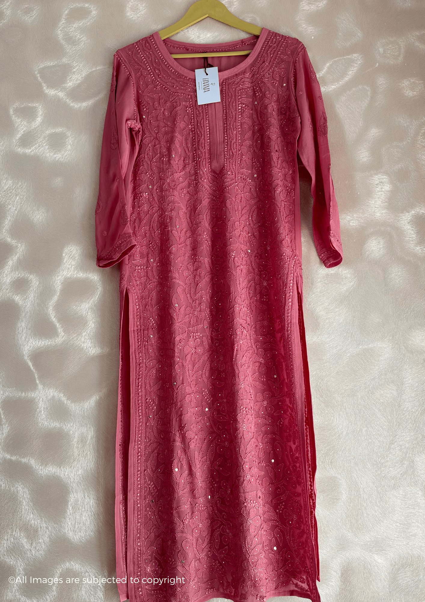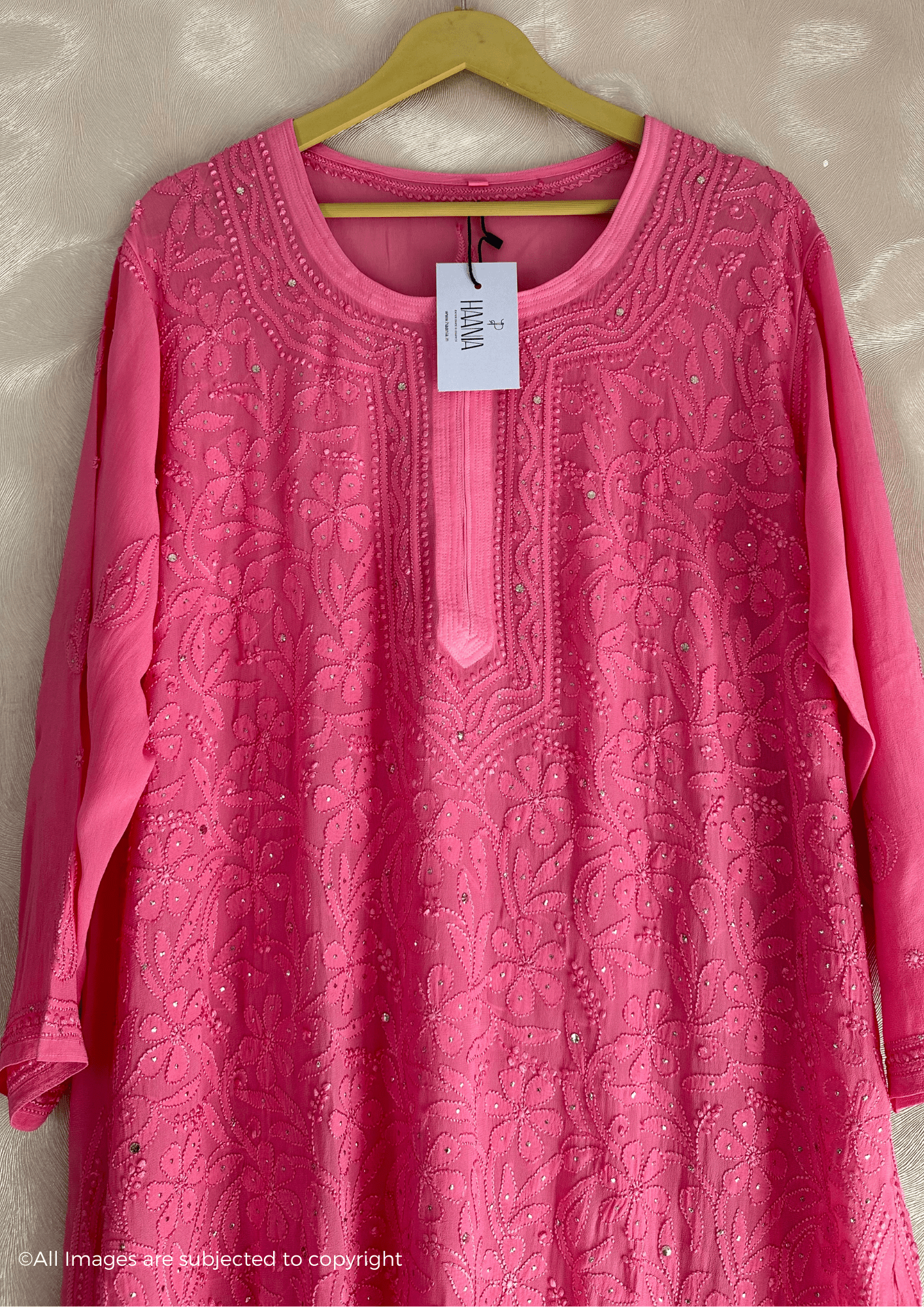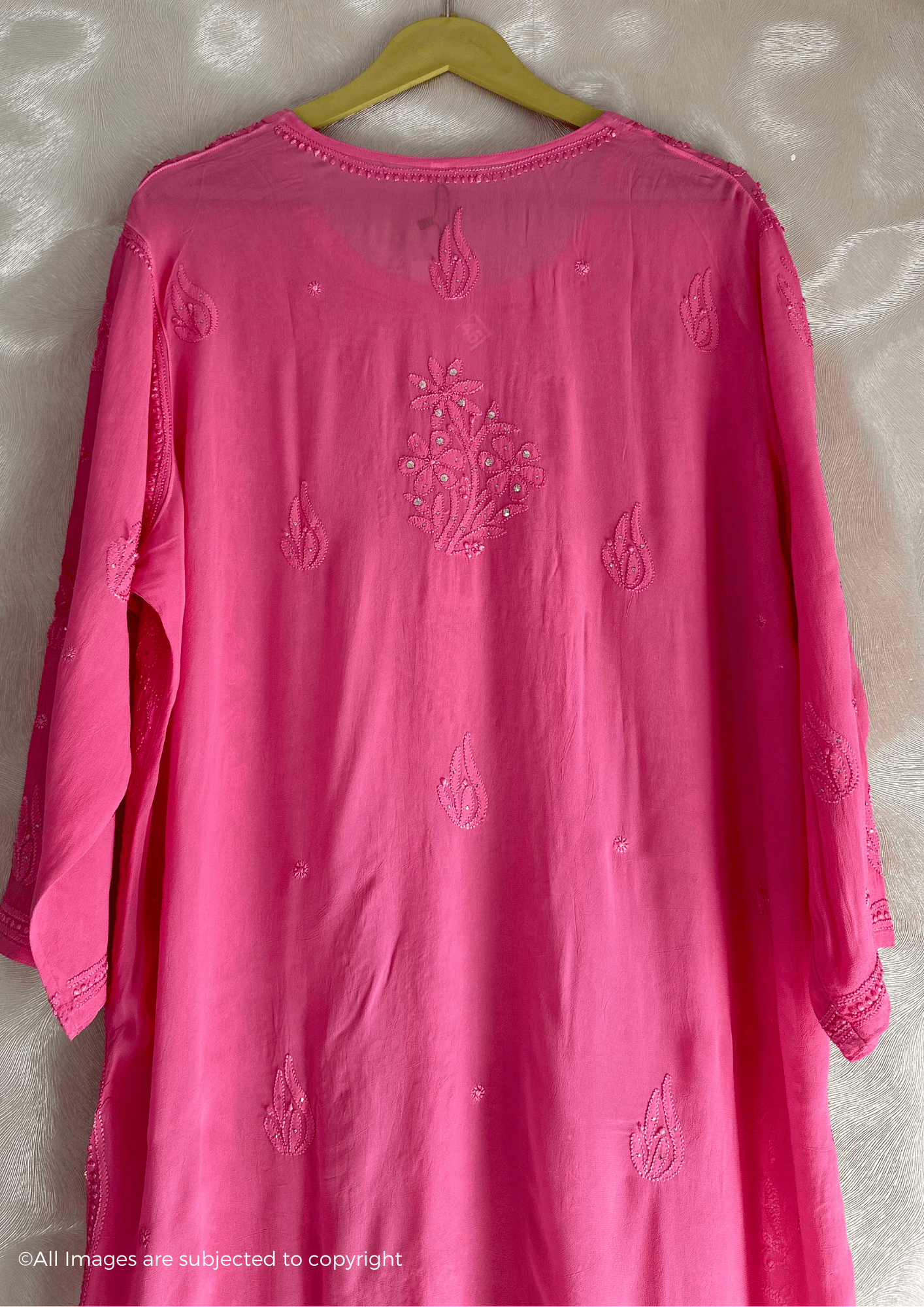Hues Of Pink Chikankari Viscose Full Jaal Mukaish Kurta