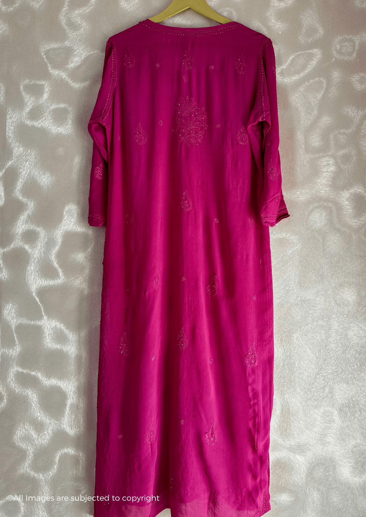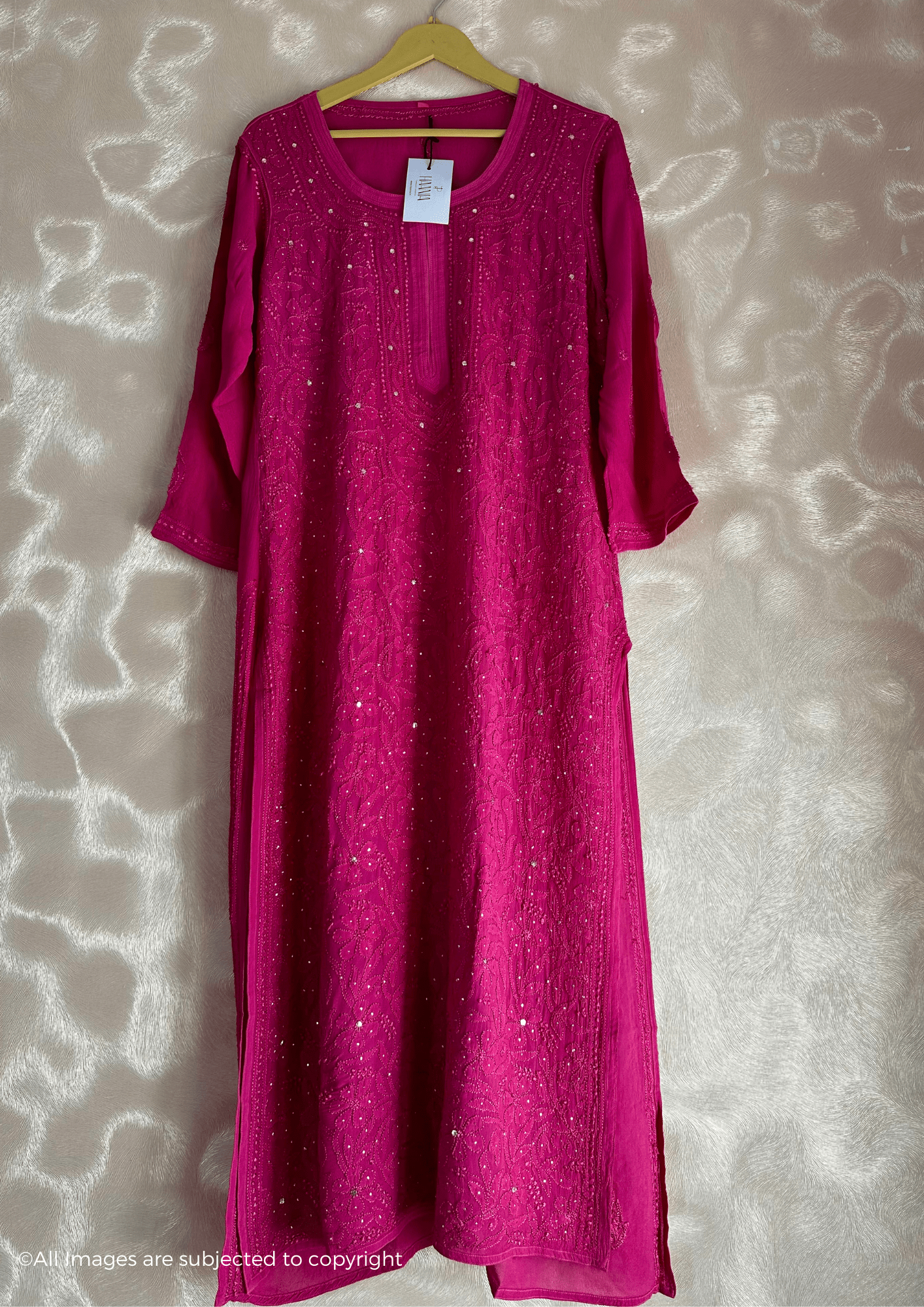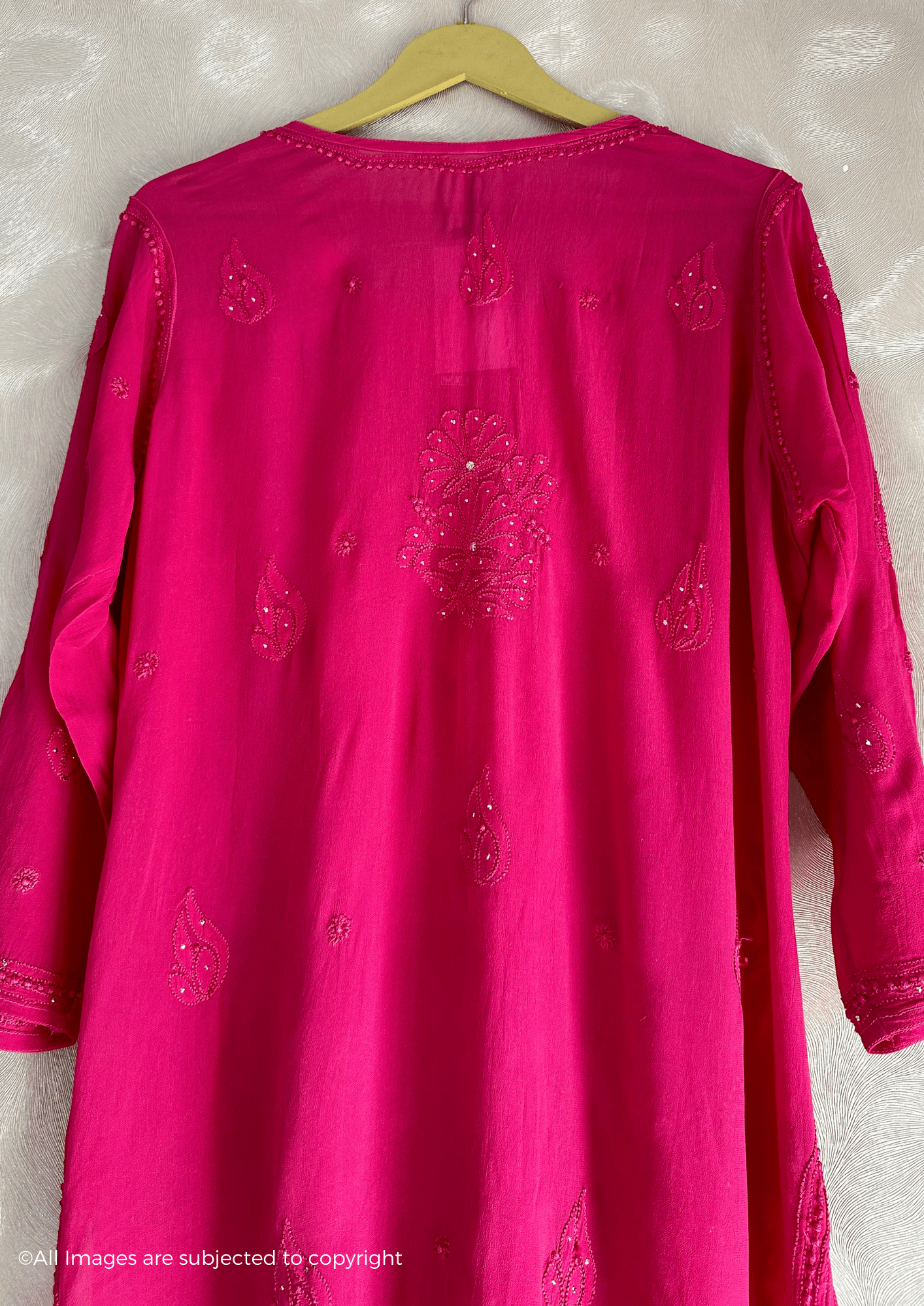 Hues Of Pink Chikankari Viscose Full Jaal Mukaish Kurta