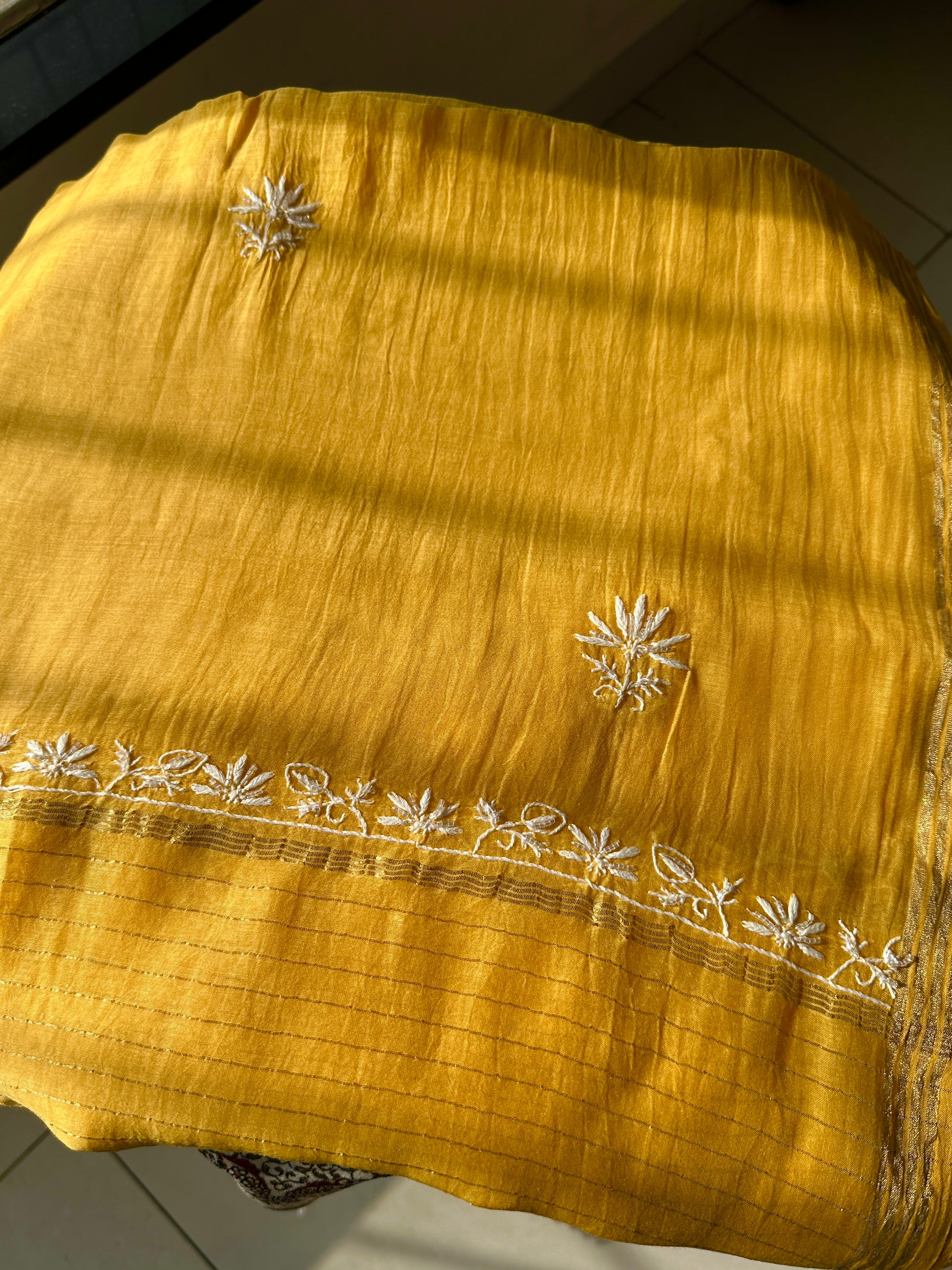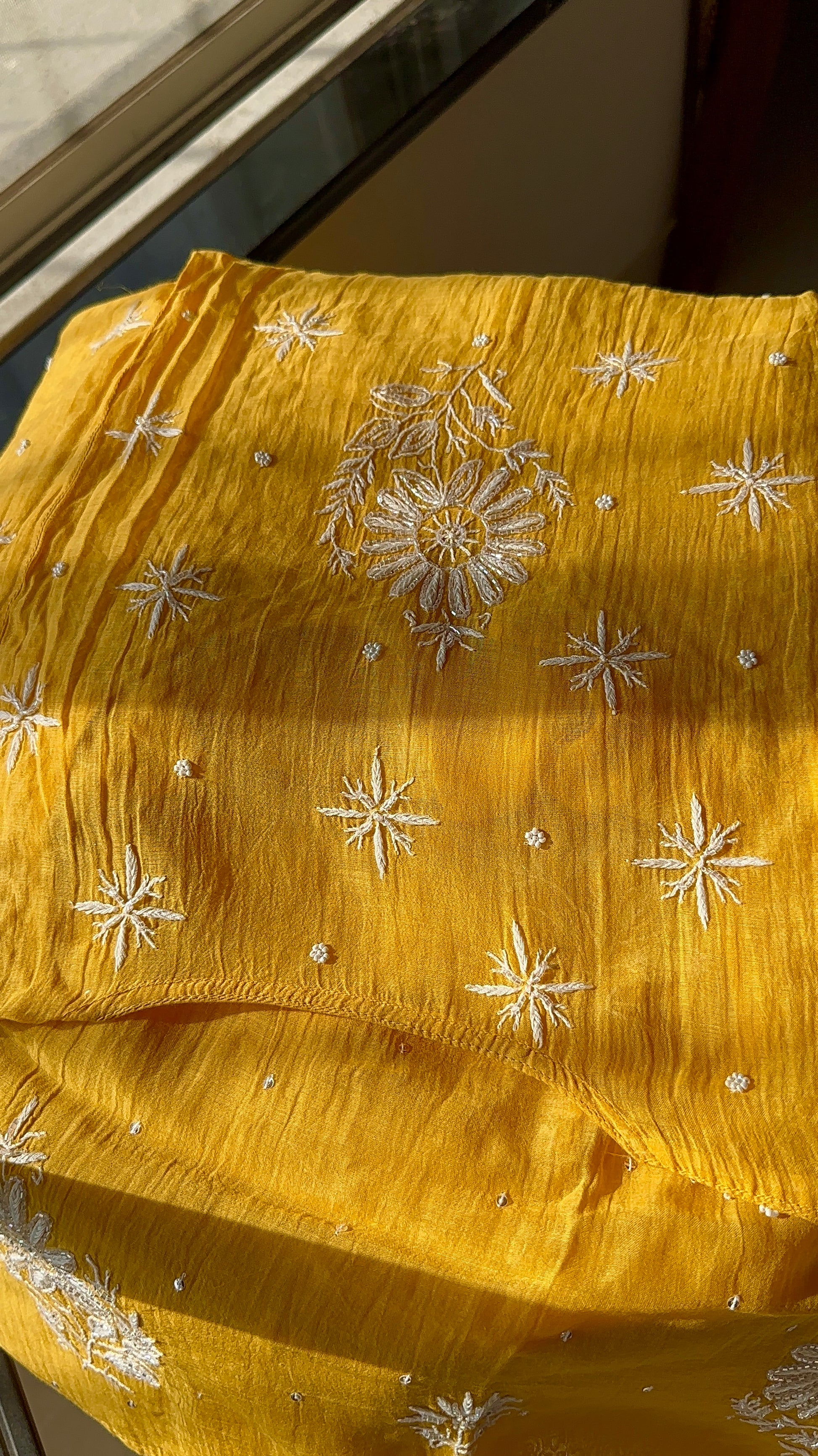 Luxe Chikankari Mul Chanderi Semi Stitched Suit Set