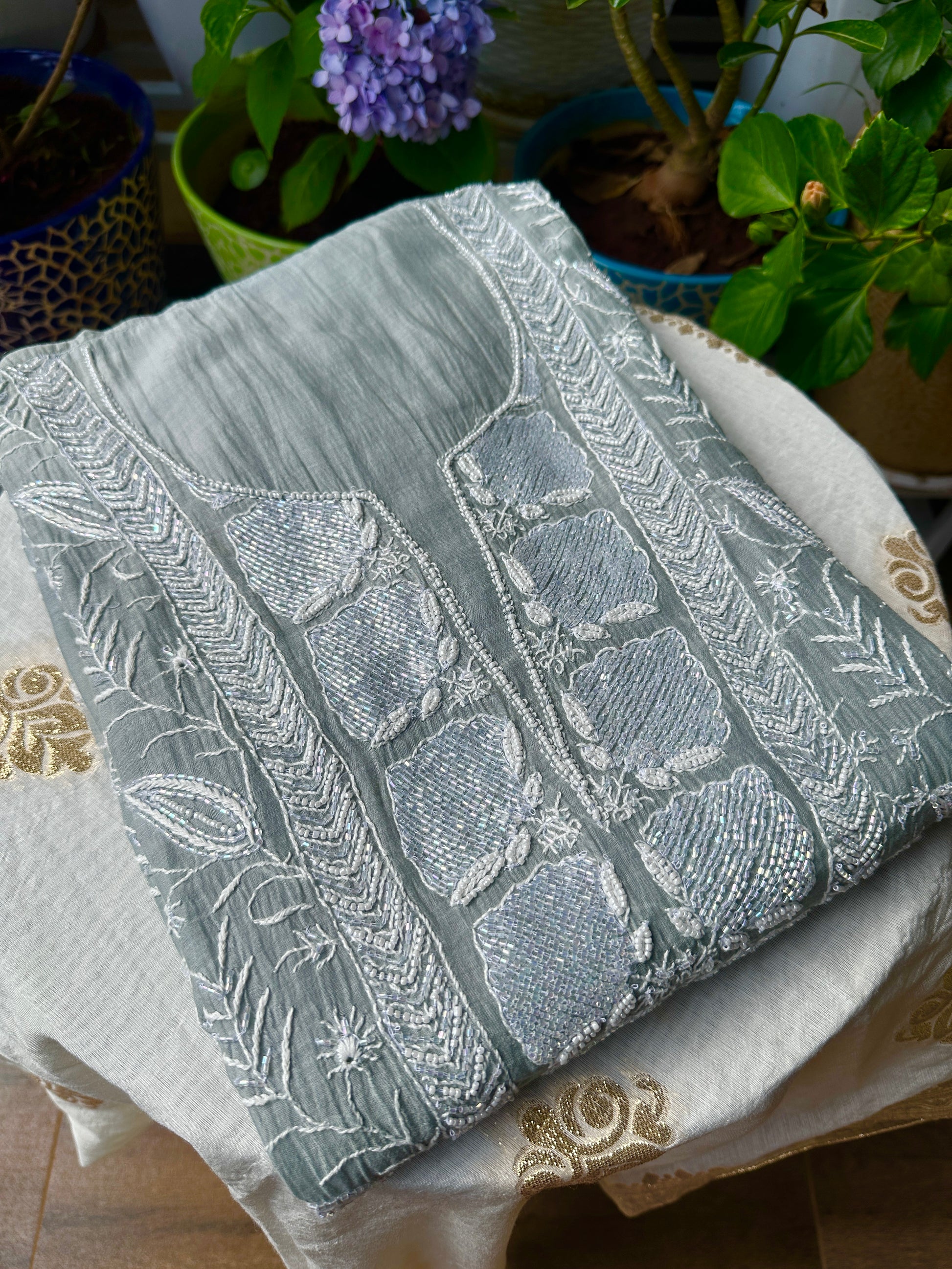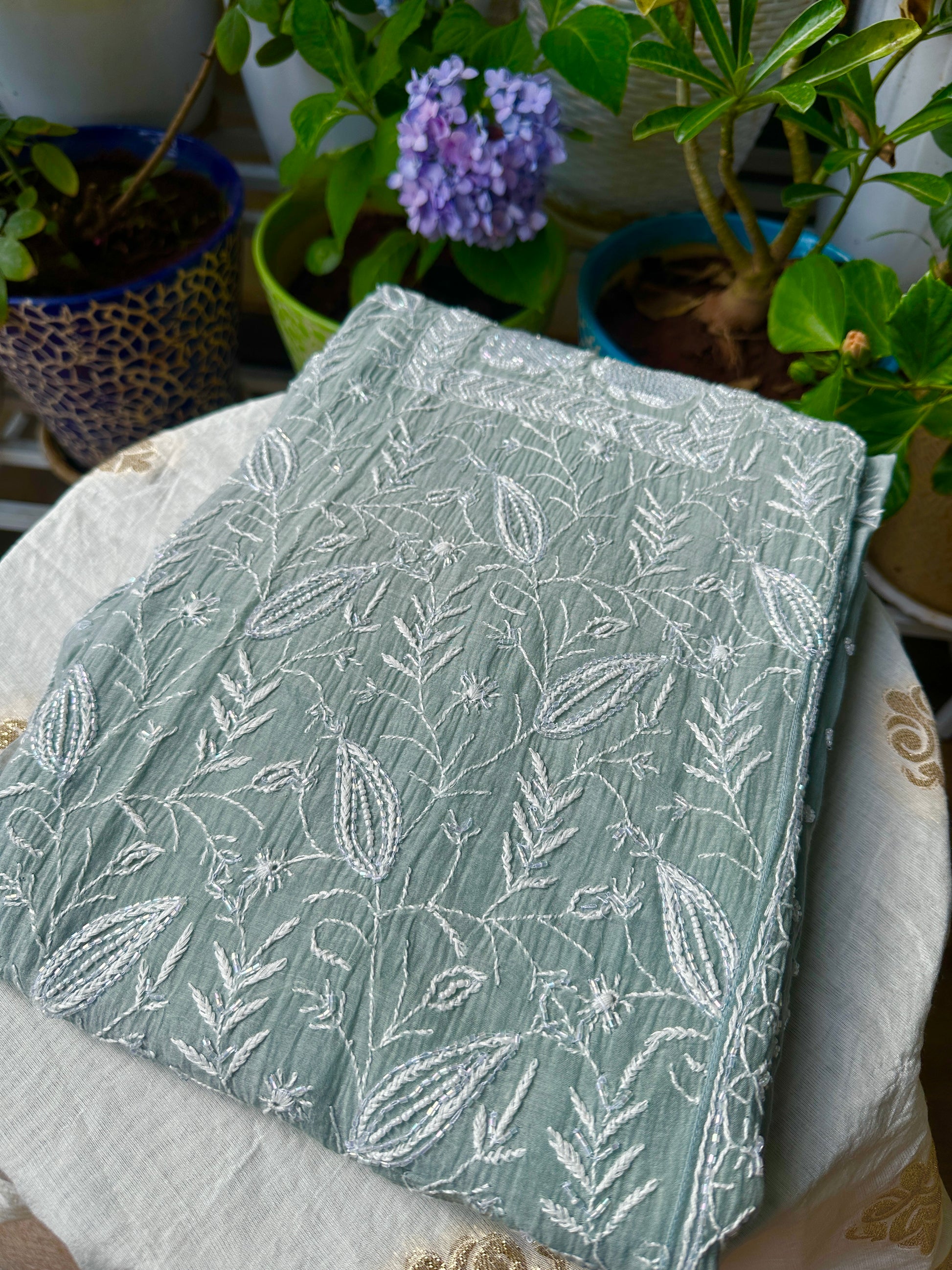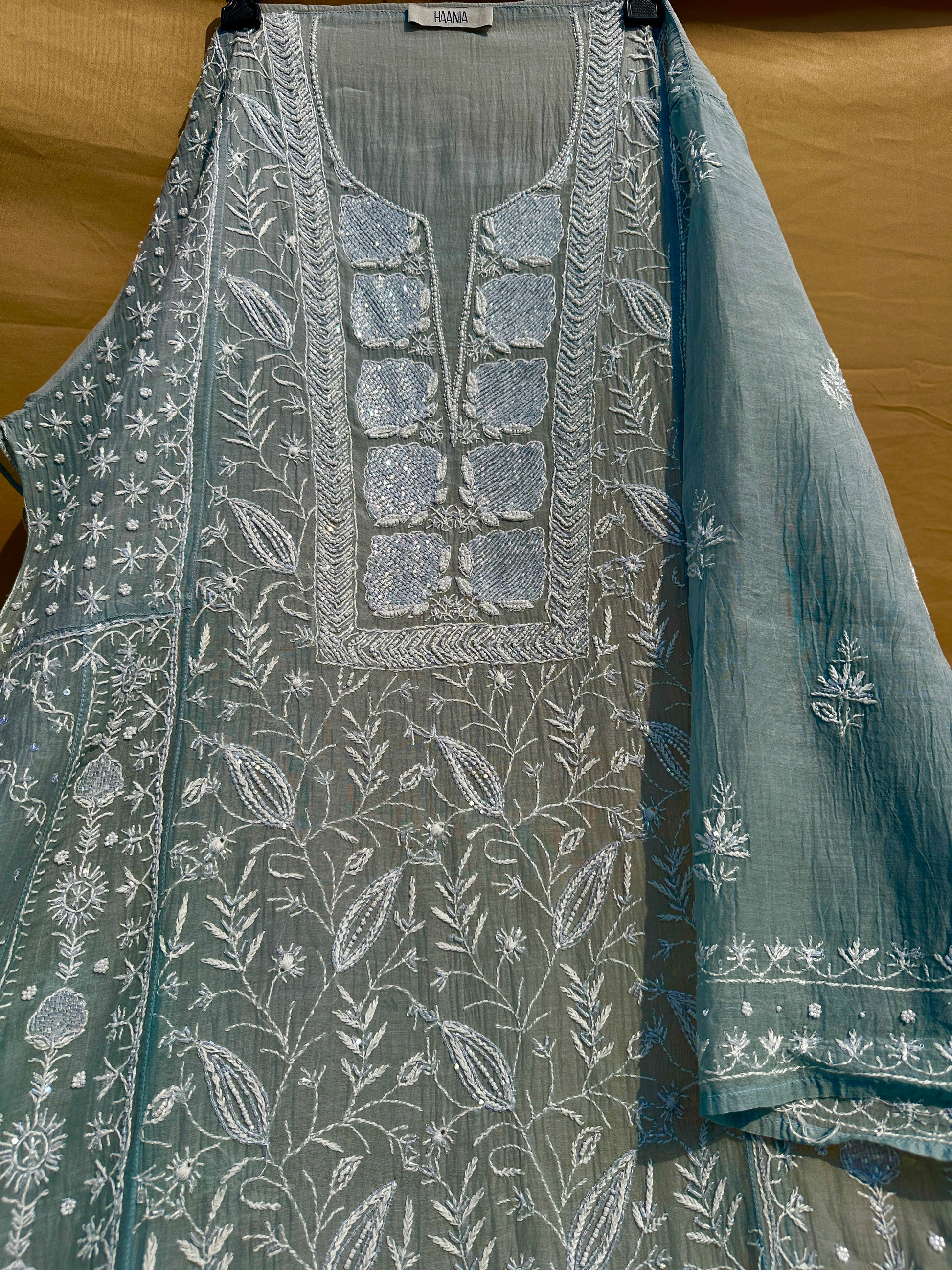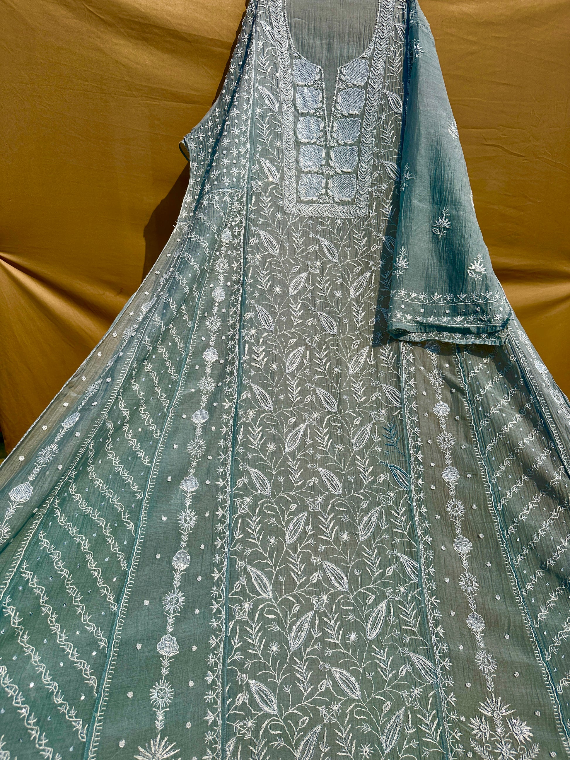 Luxe HandcraftedChikankari Mul Chanderi Anarkali