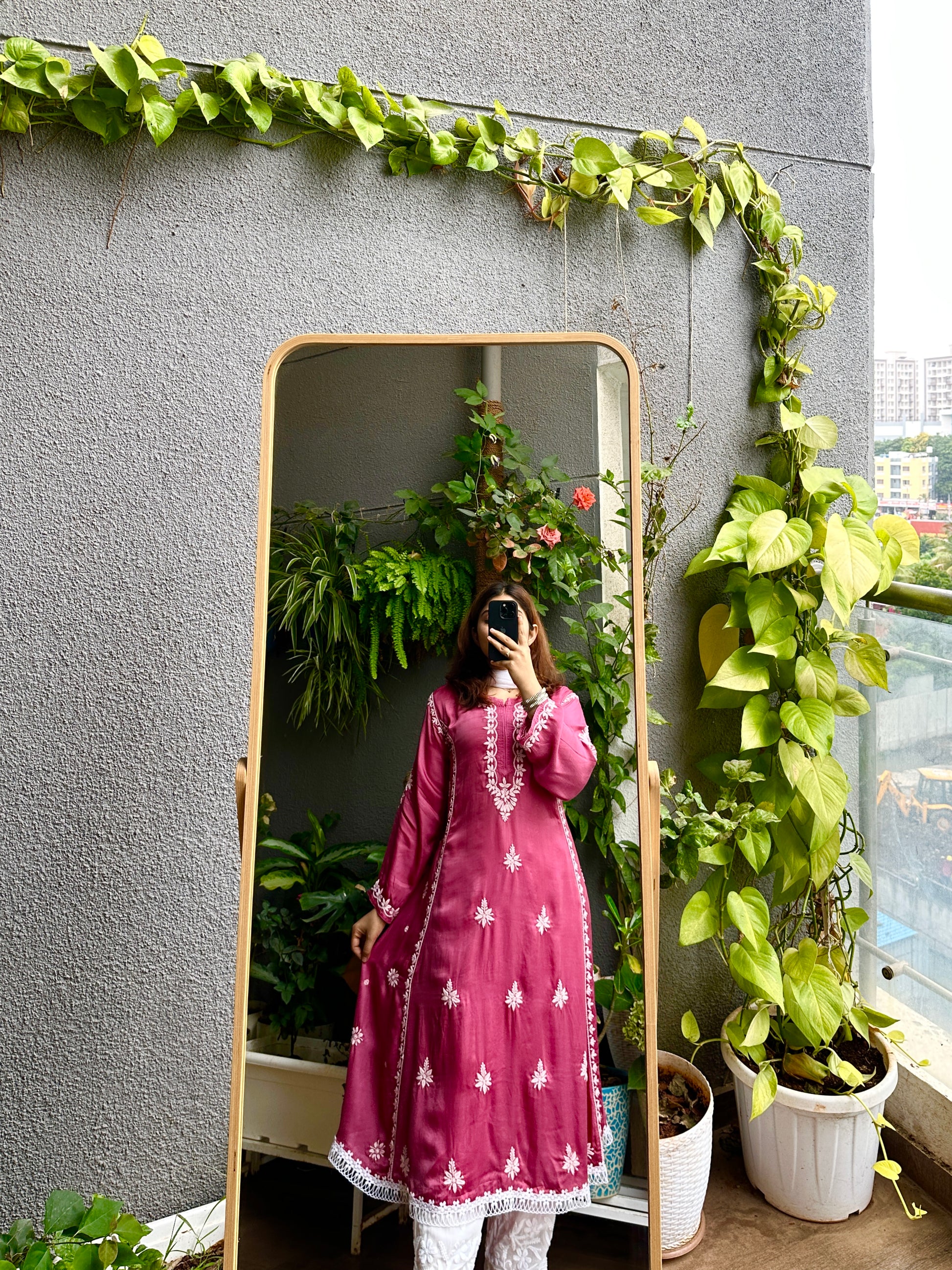 Indulge in the elegance of the Roohi Modal Silk Kurta. Made from premium buttery soft modal silk fabric , this set is both flowy and non-transparent. Perfect for any occasion, its luxurious design will make you stand out in a crowd. Elevate your style with this sophisticated and exclusive piece.