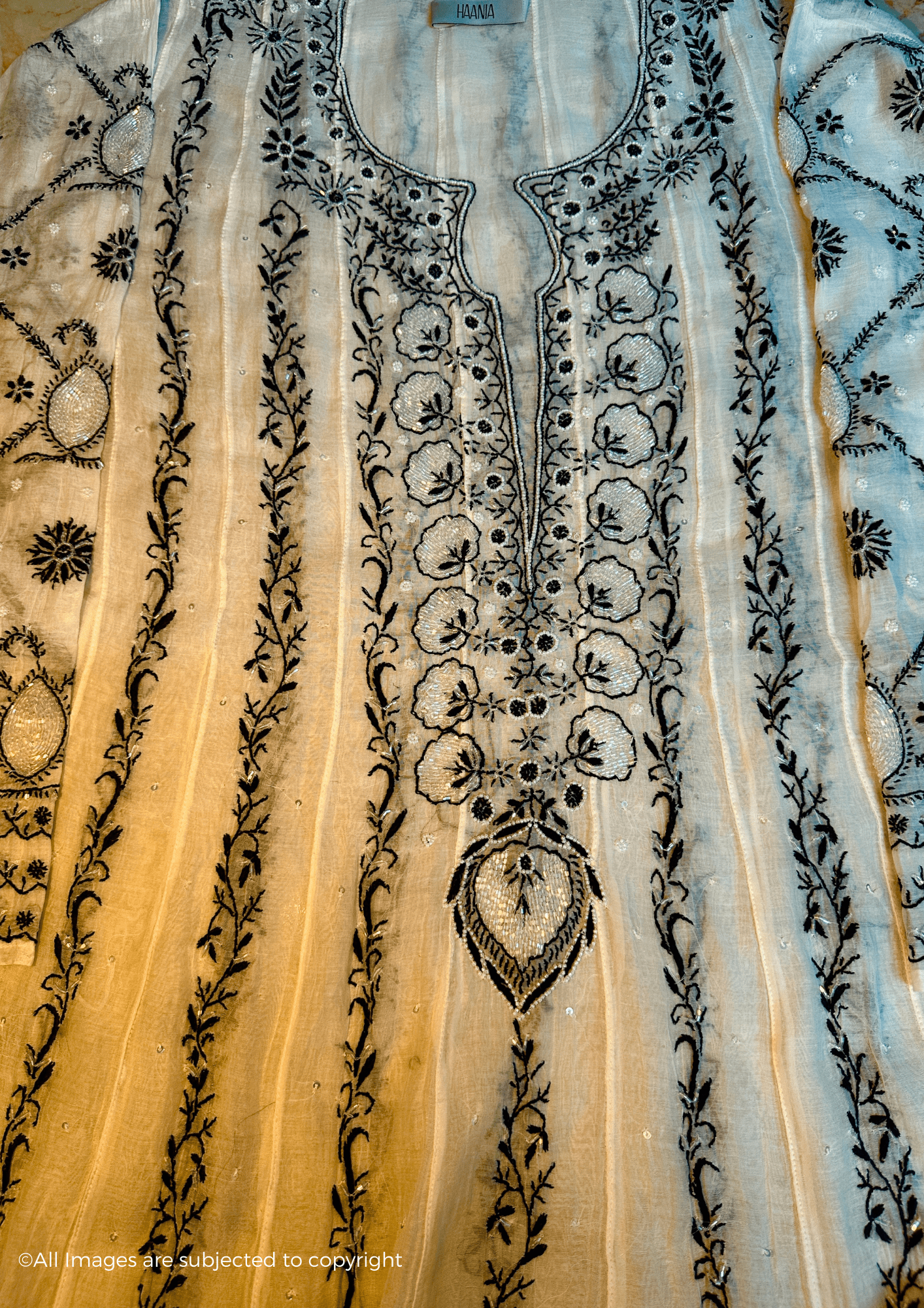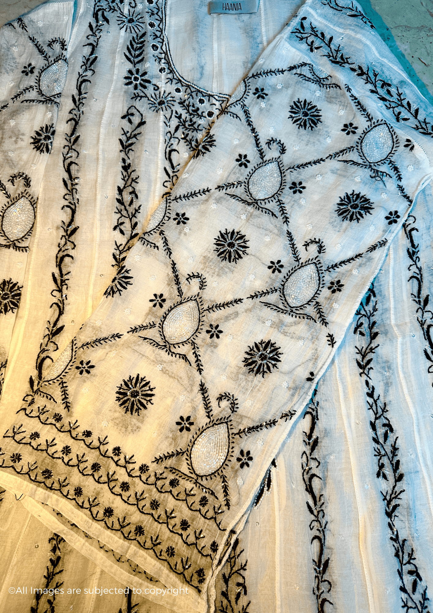 Experience the perfect balance of traditional grace and contemporary allure with our Monochrome Handcrafted Chikankari Anarkali.