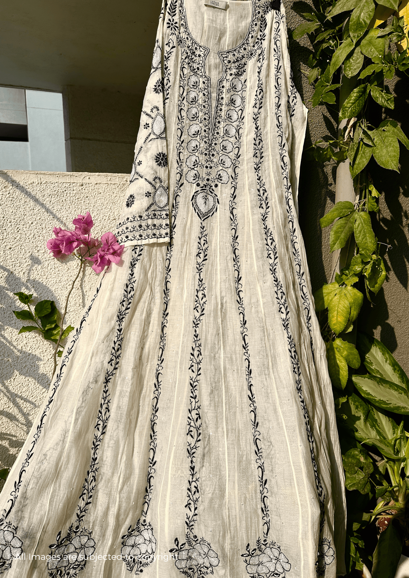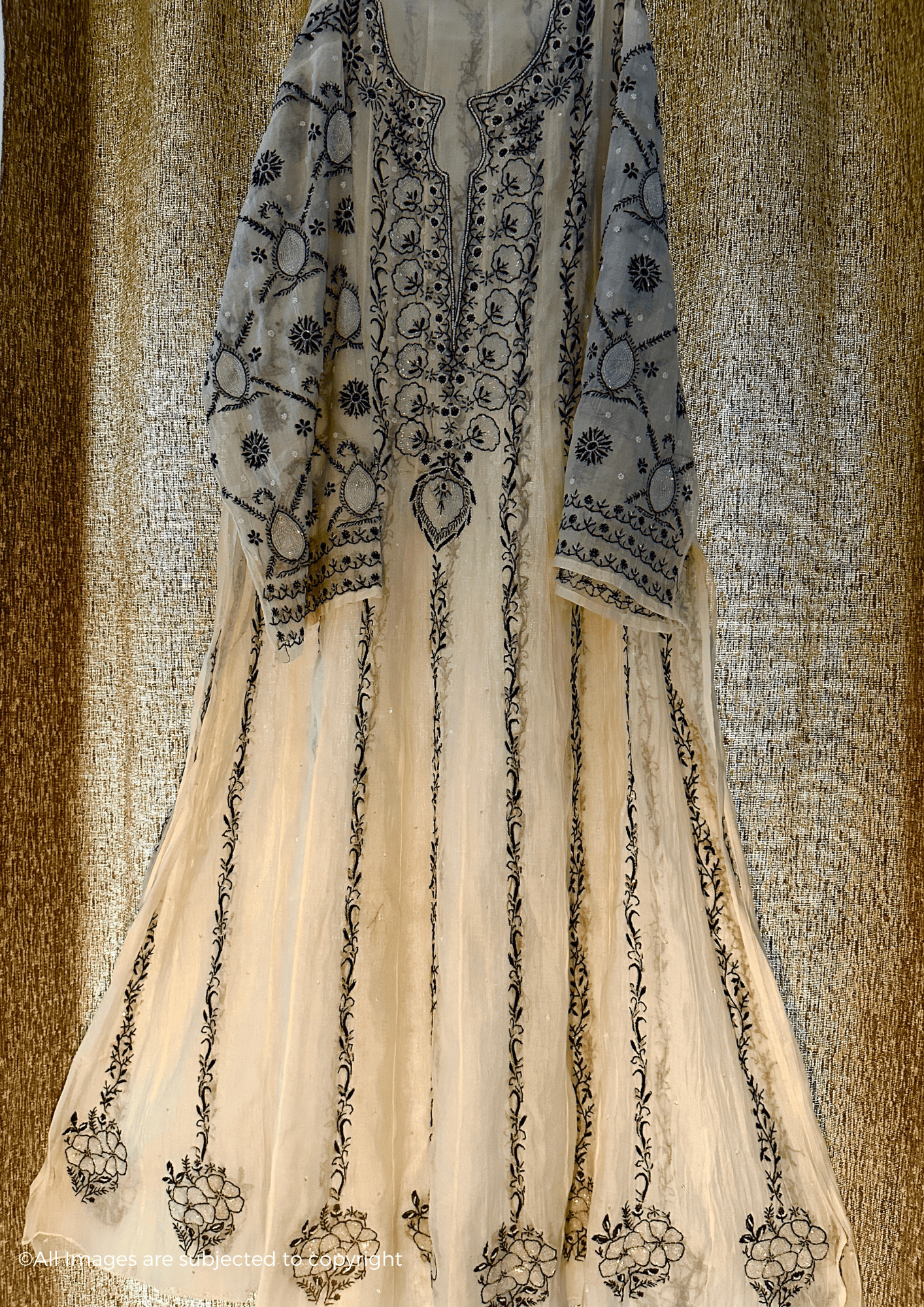 Monochrome Handcrafted Chikankari Anarkali with Pearl & Cutdana embellishments
