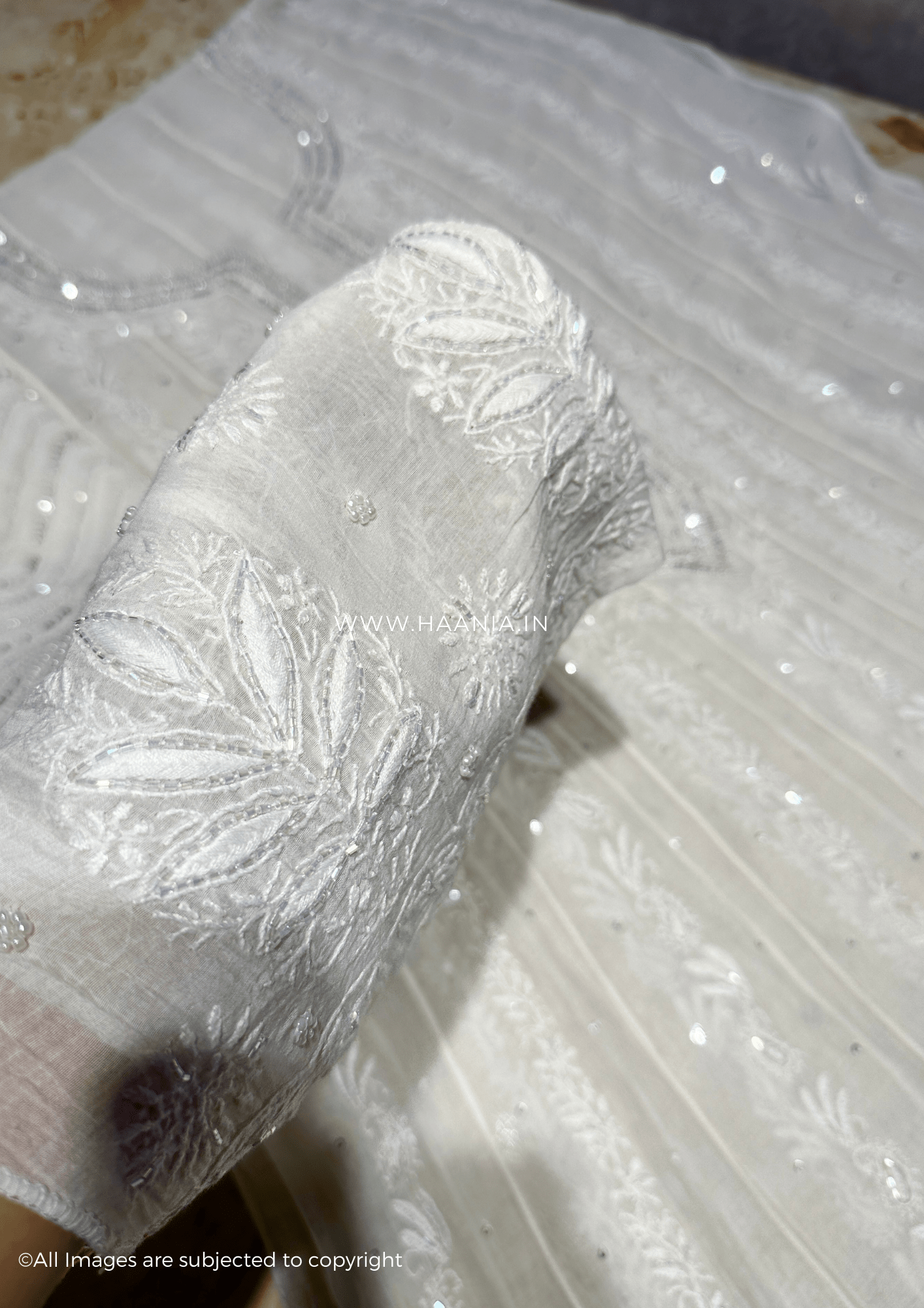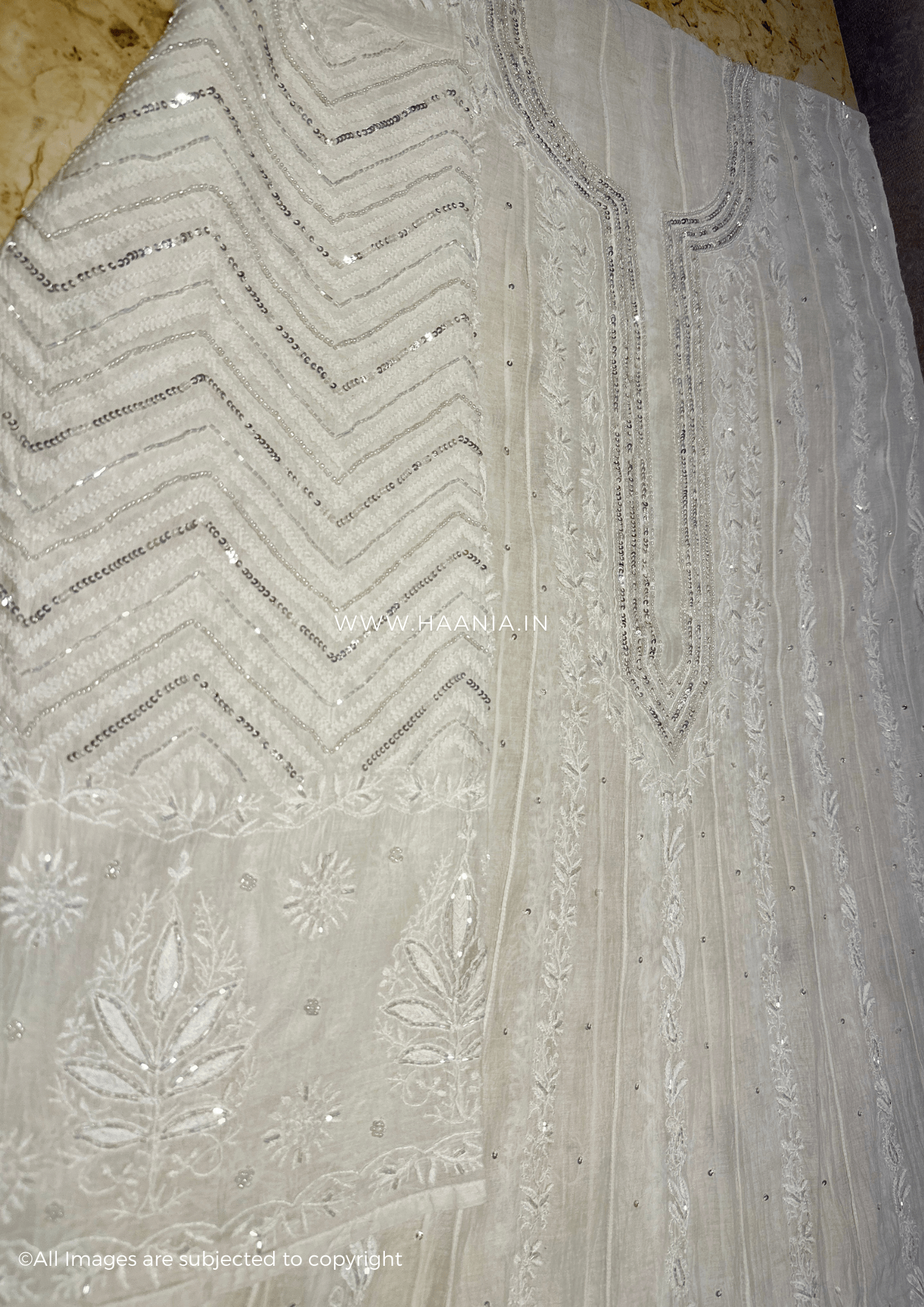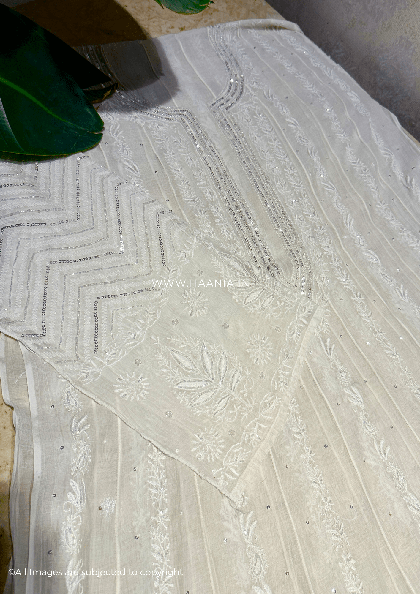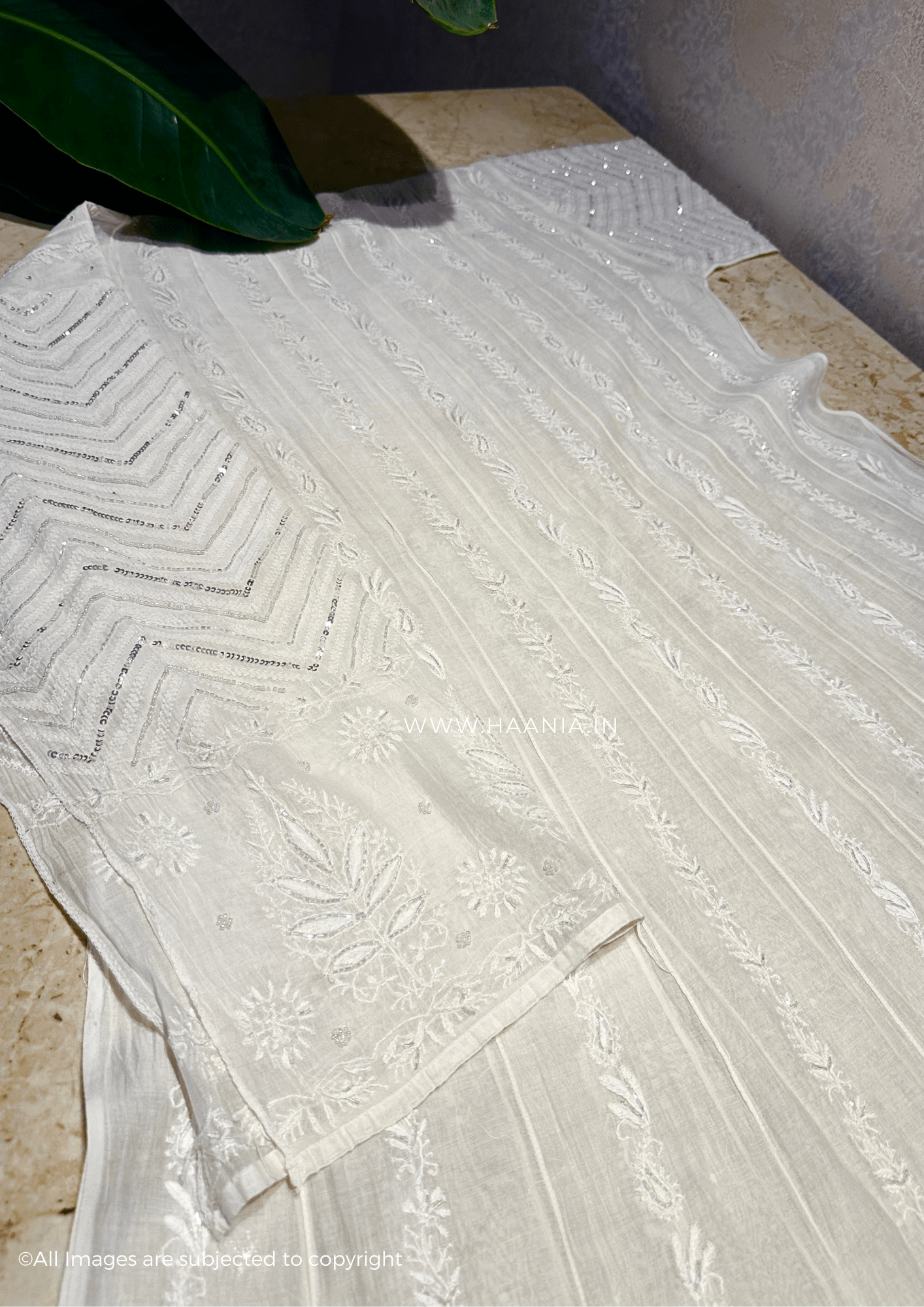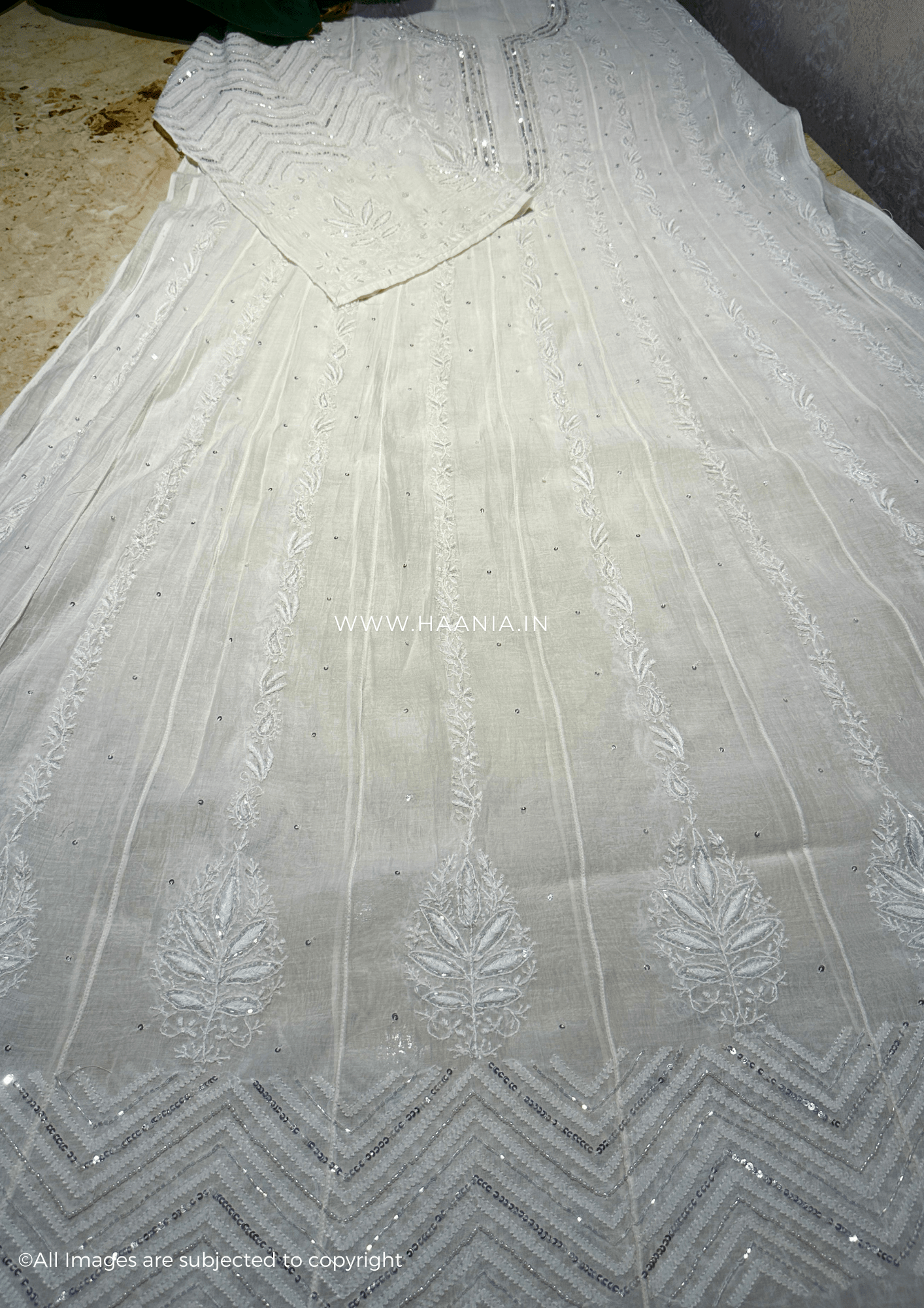 Experience the perfect balance of traditional grace and contemporary allure with our Mul Chanderi Handcrafted Chikankari Anarkali.