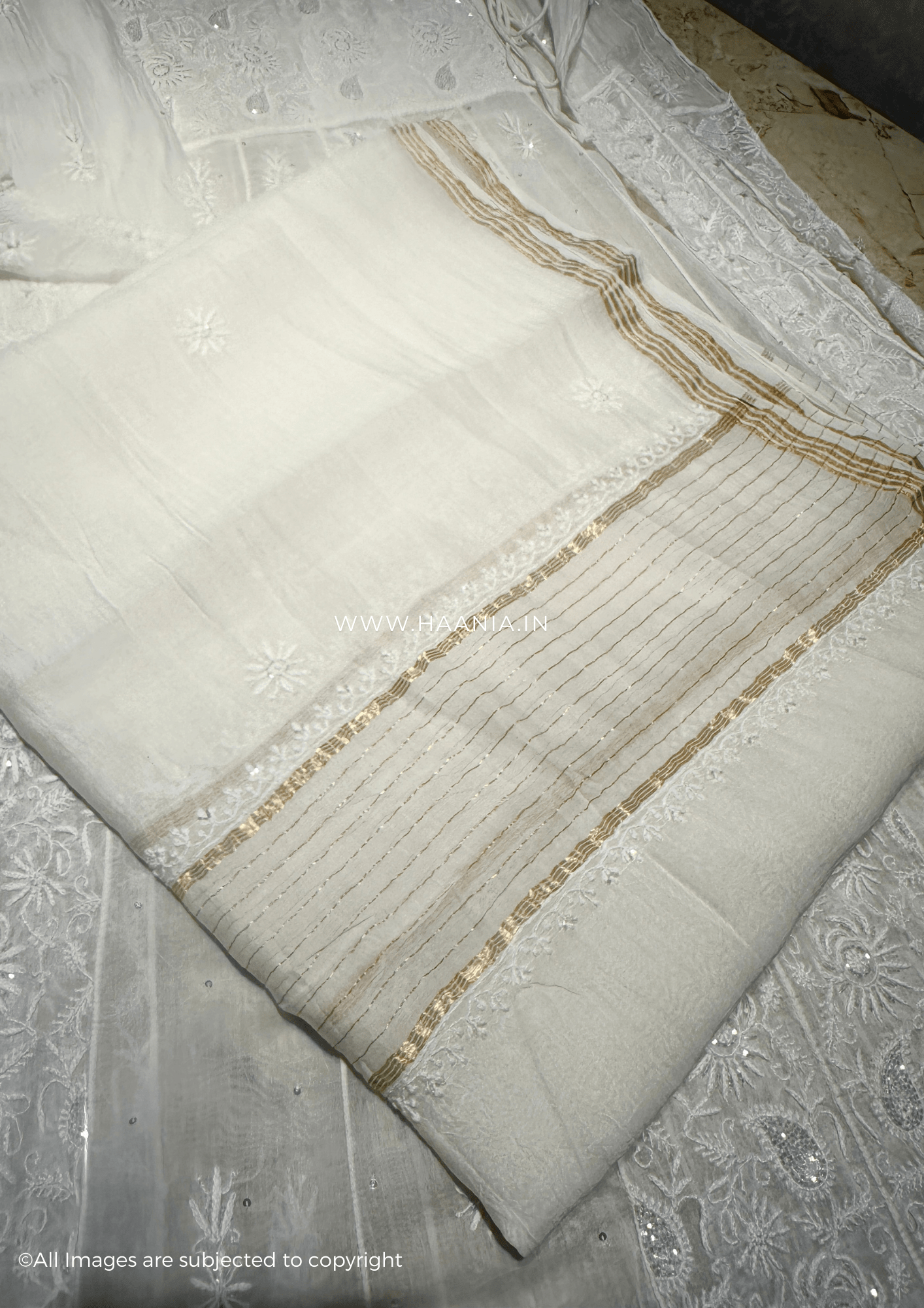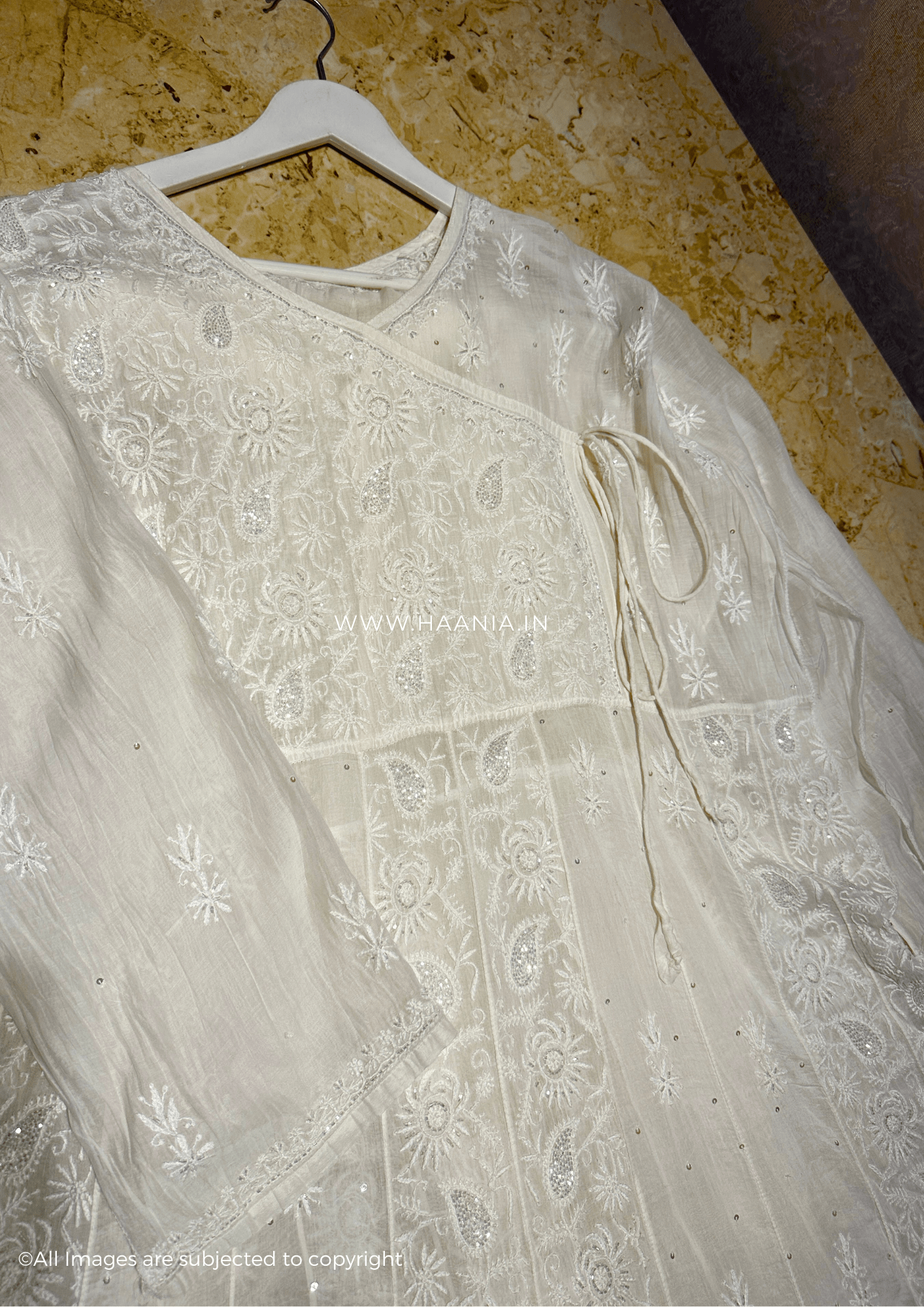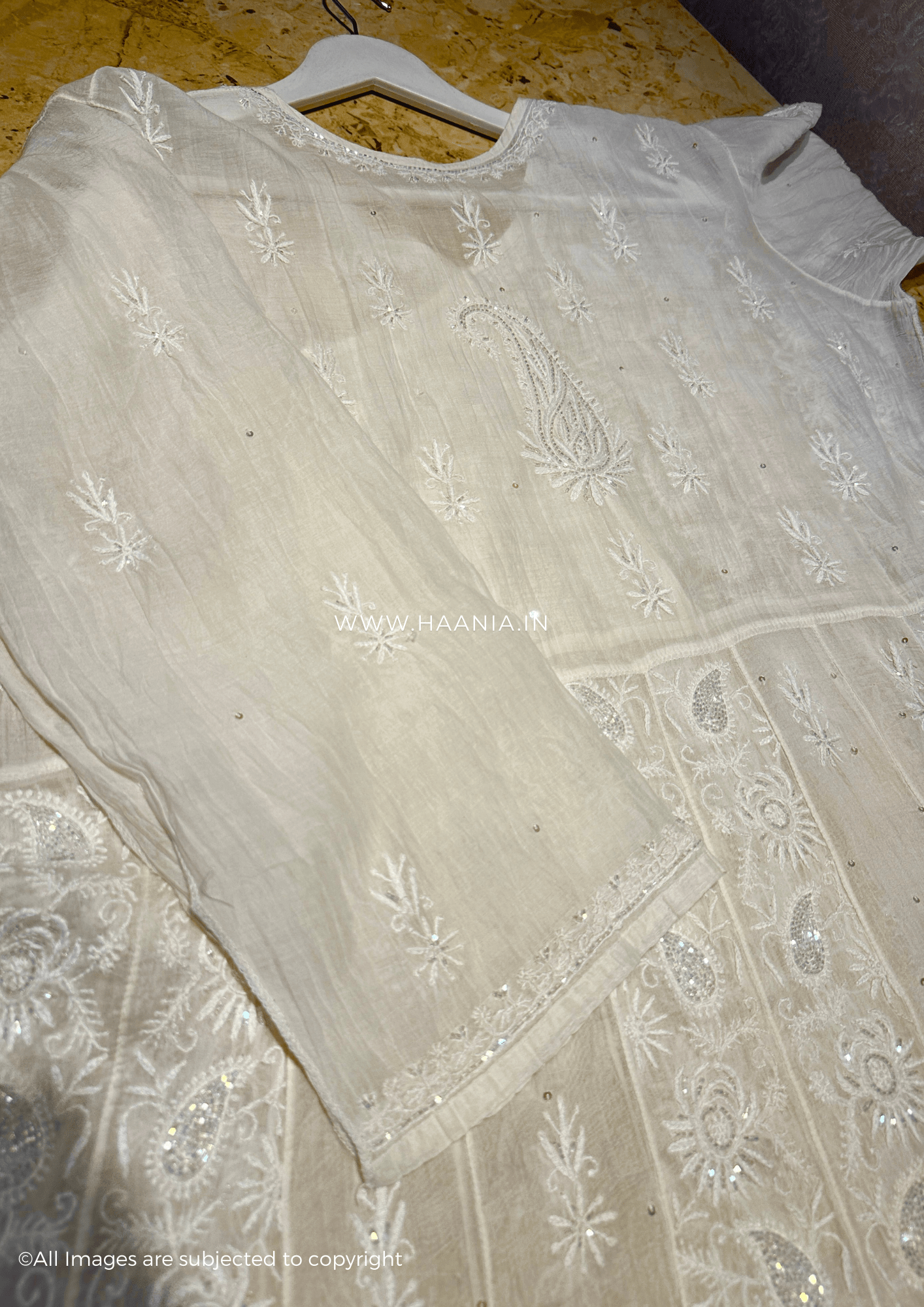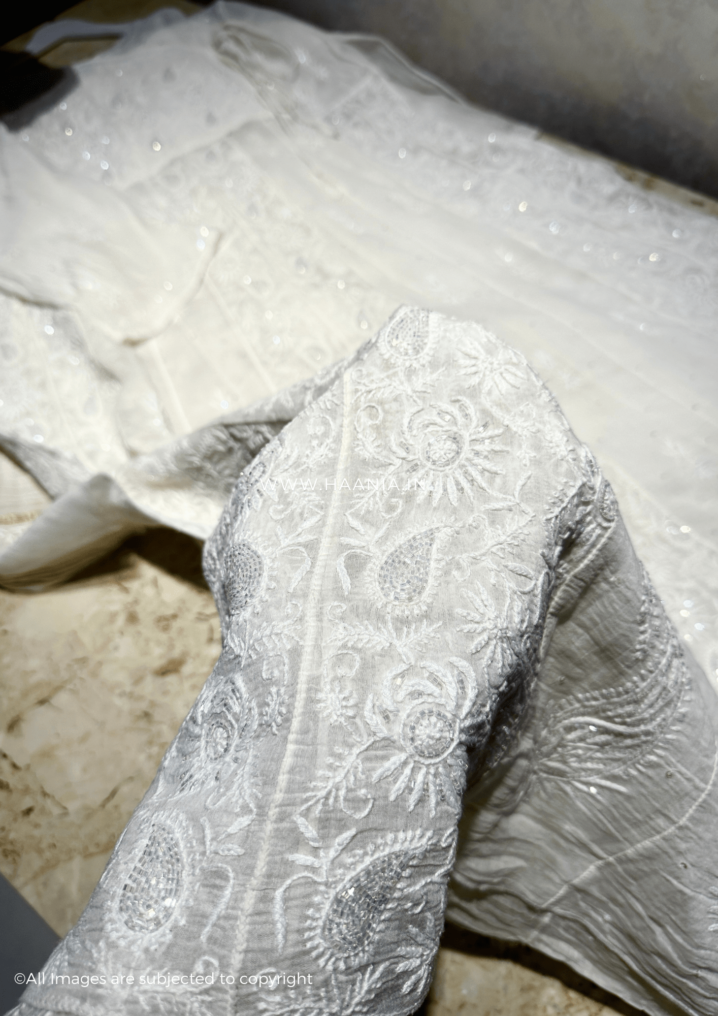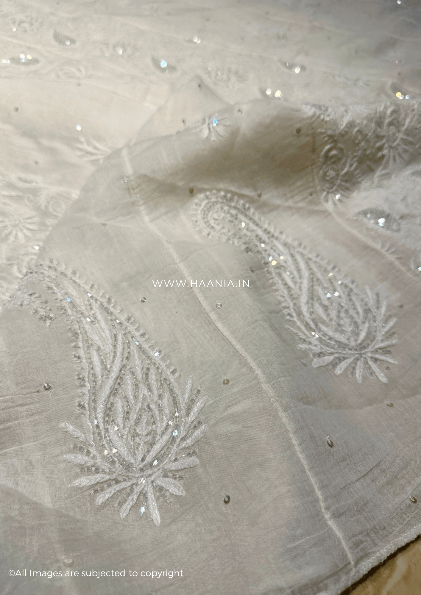 Experience the perfect balance of traditional grace and contemporary allure with our Mul Chanderi Handcrafted Chikankari Anarkali.