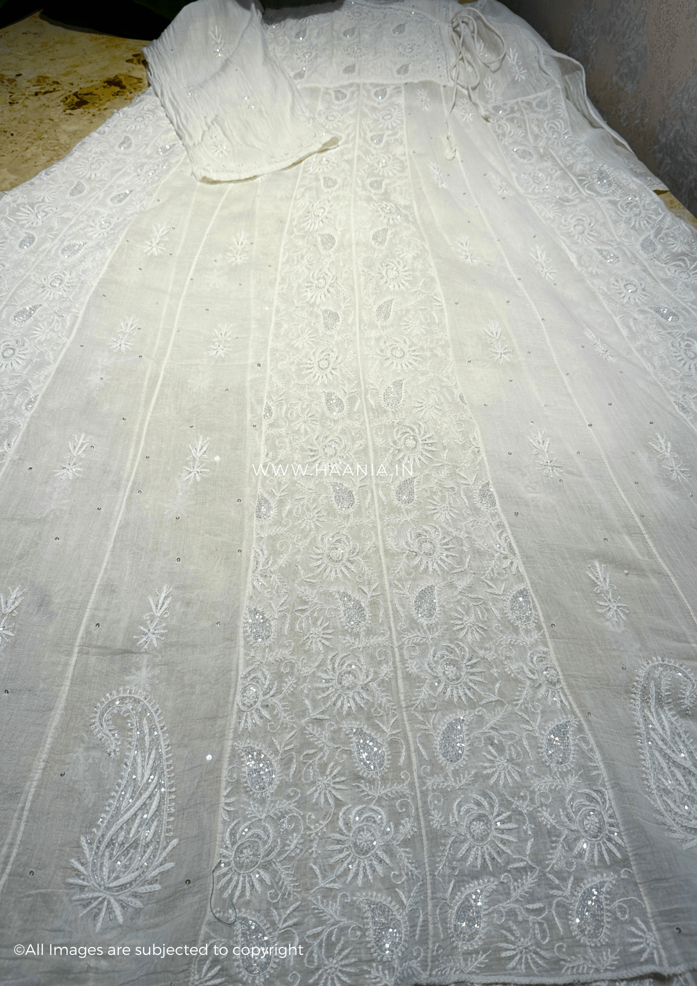 Mul Chanderi Handcrafted Chikankari Heavy Anarkali Suit Set