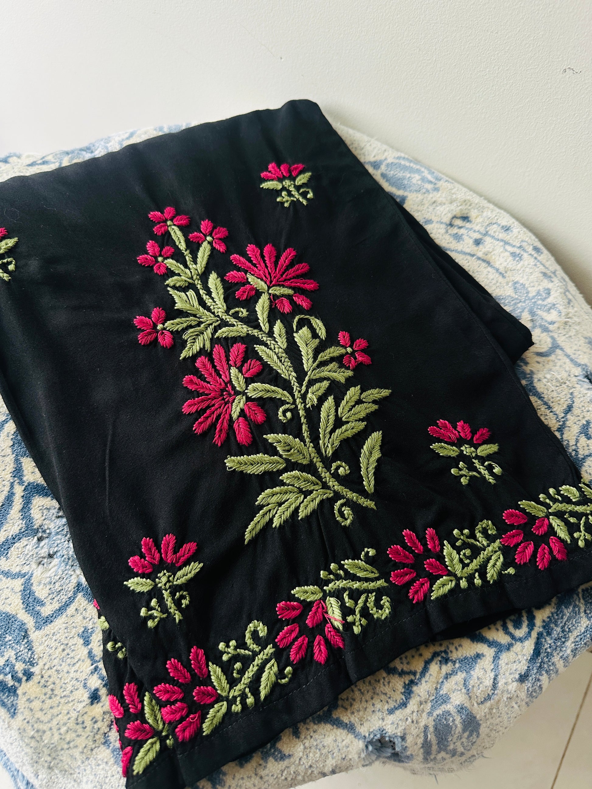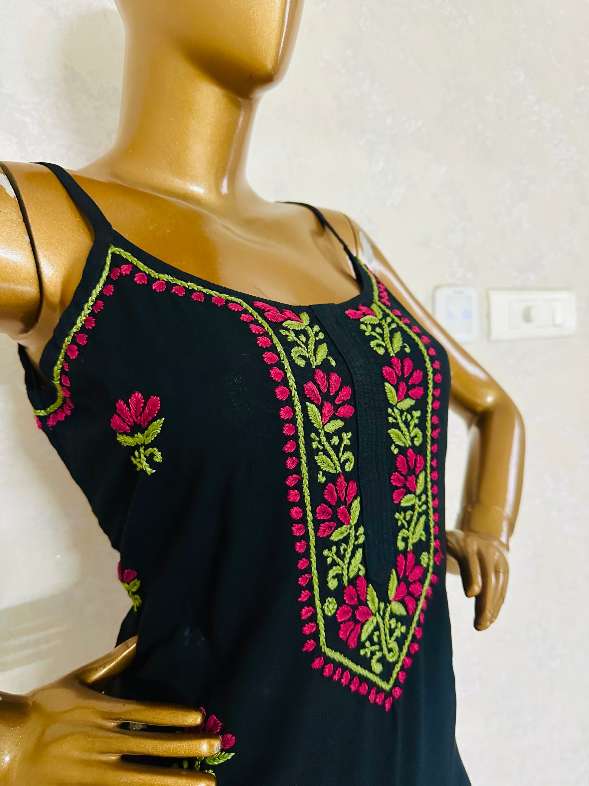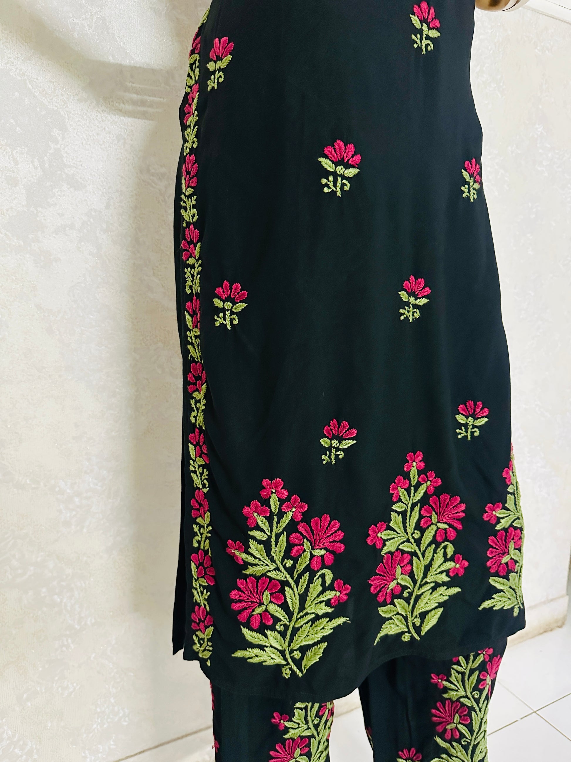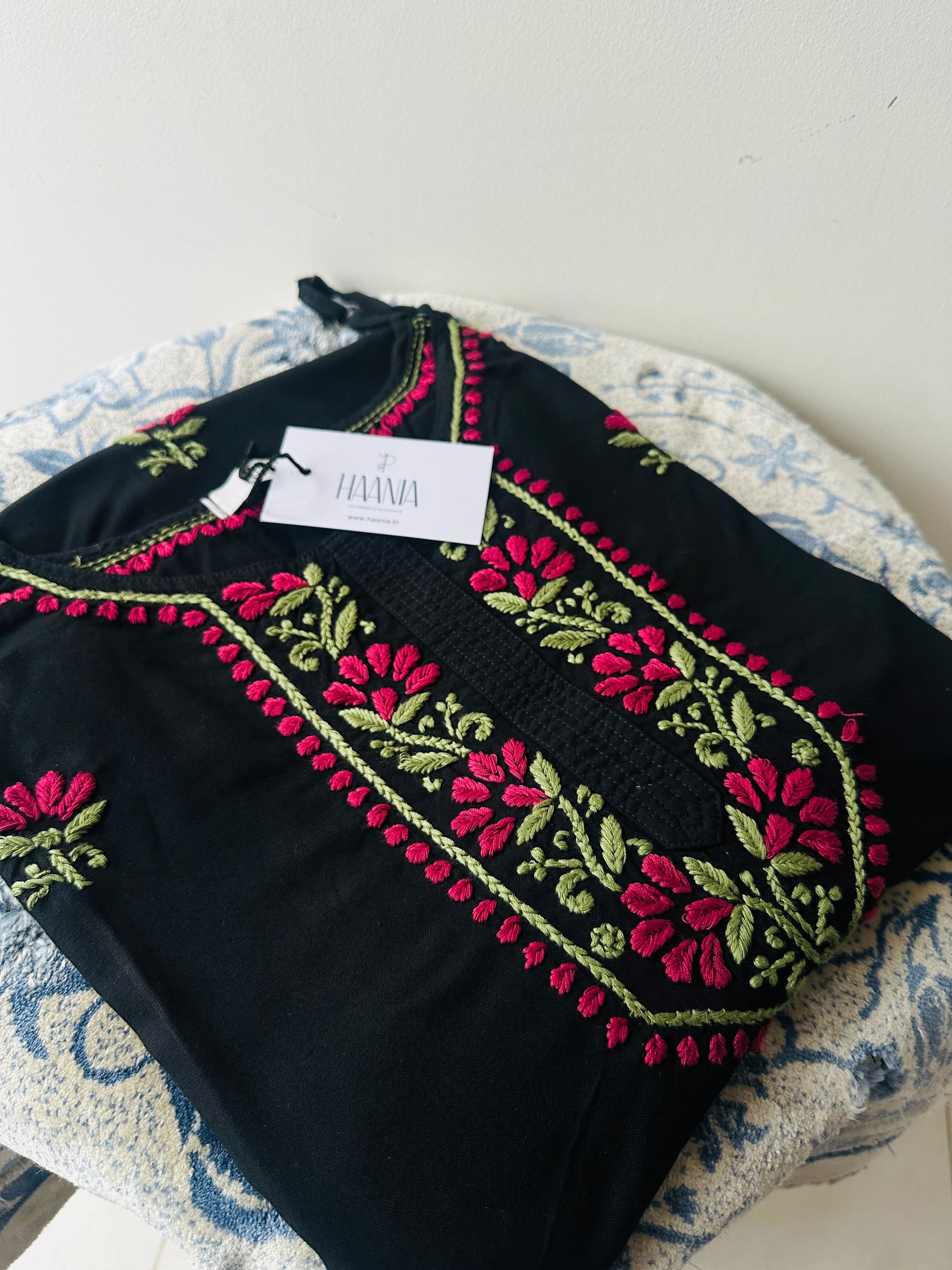 - Hand-embroidered with Chikankari