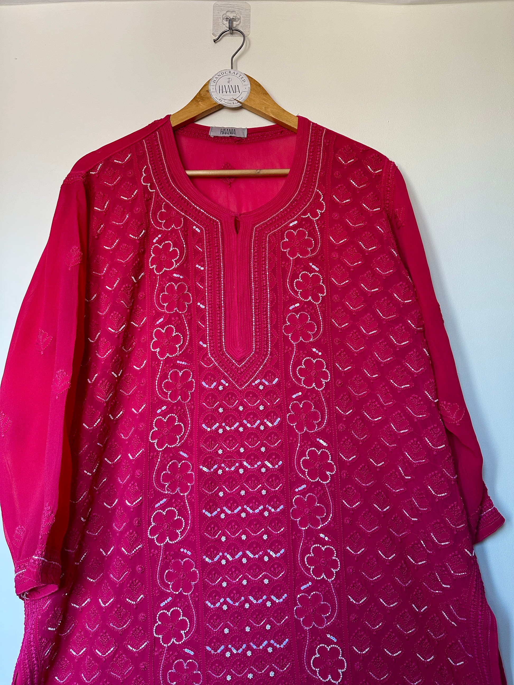 Our Viral Pearl & Cutdana Chikankari Suit Set - Hot Pink