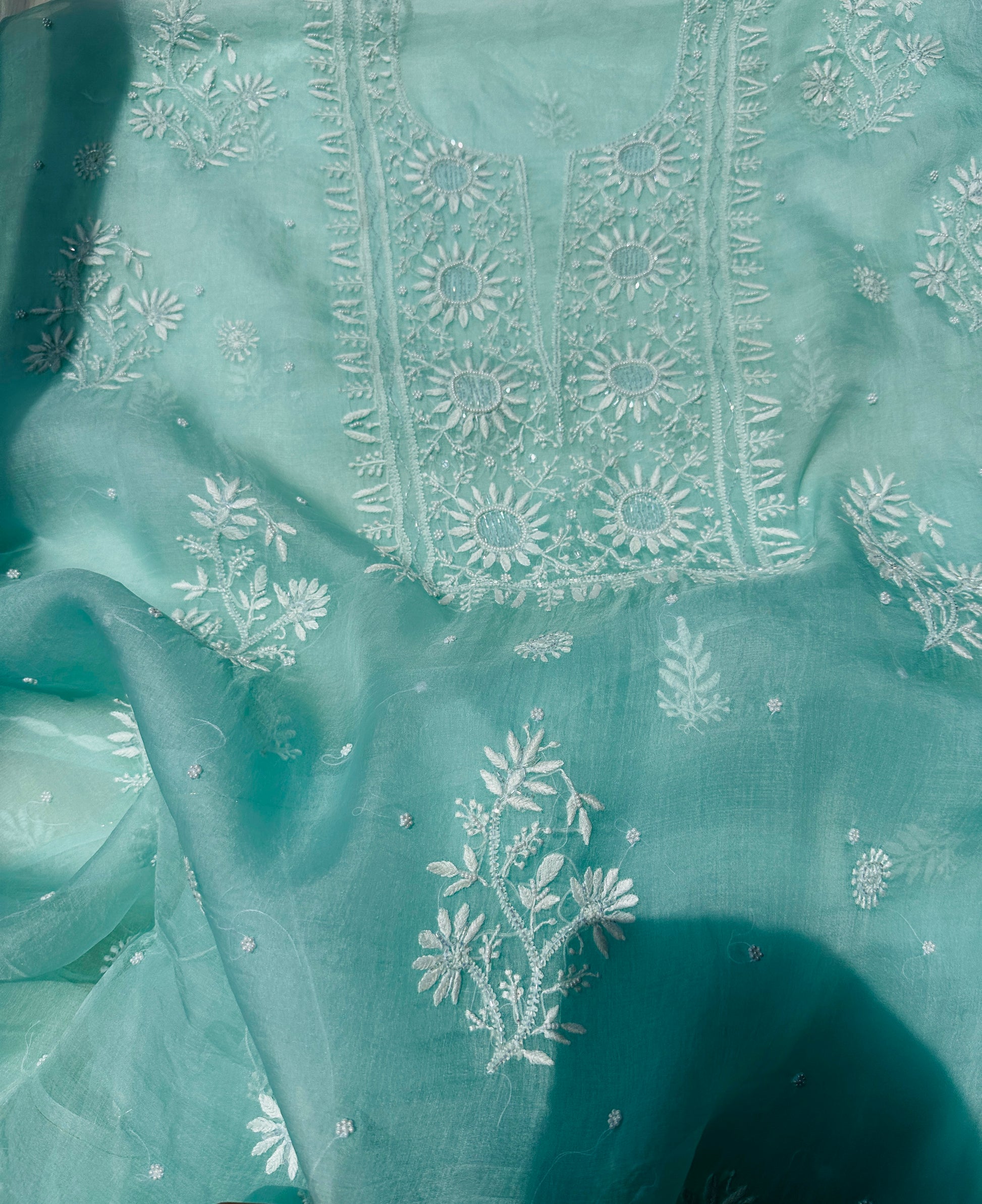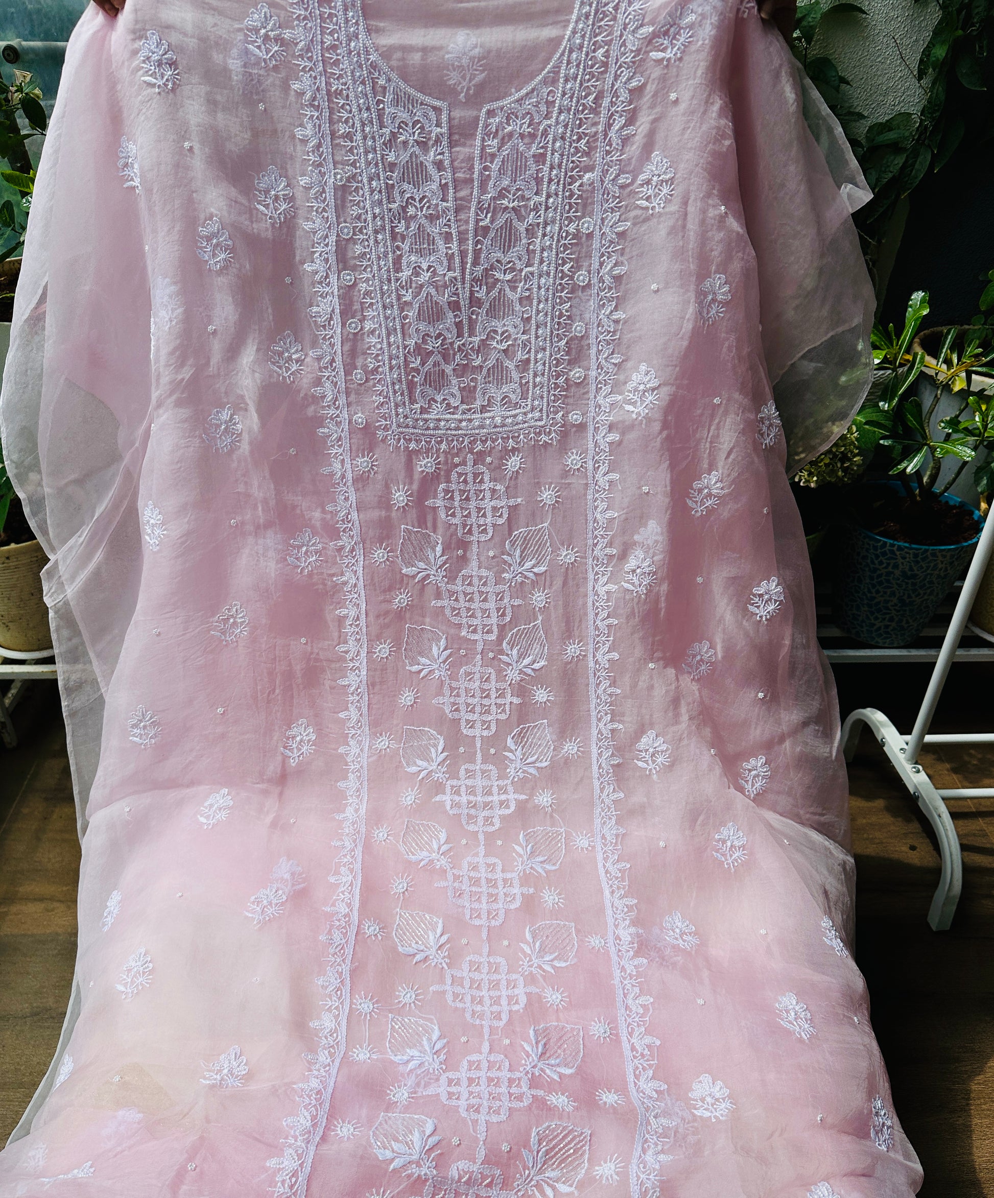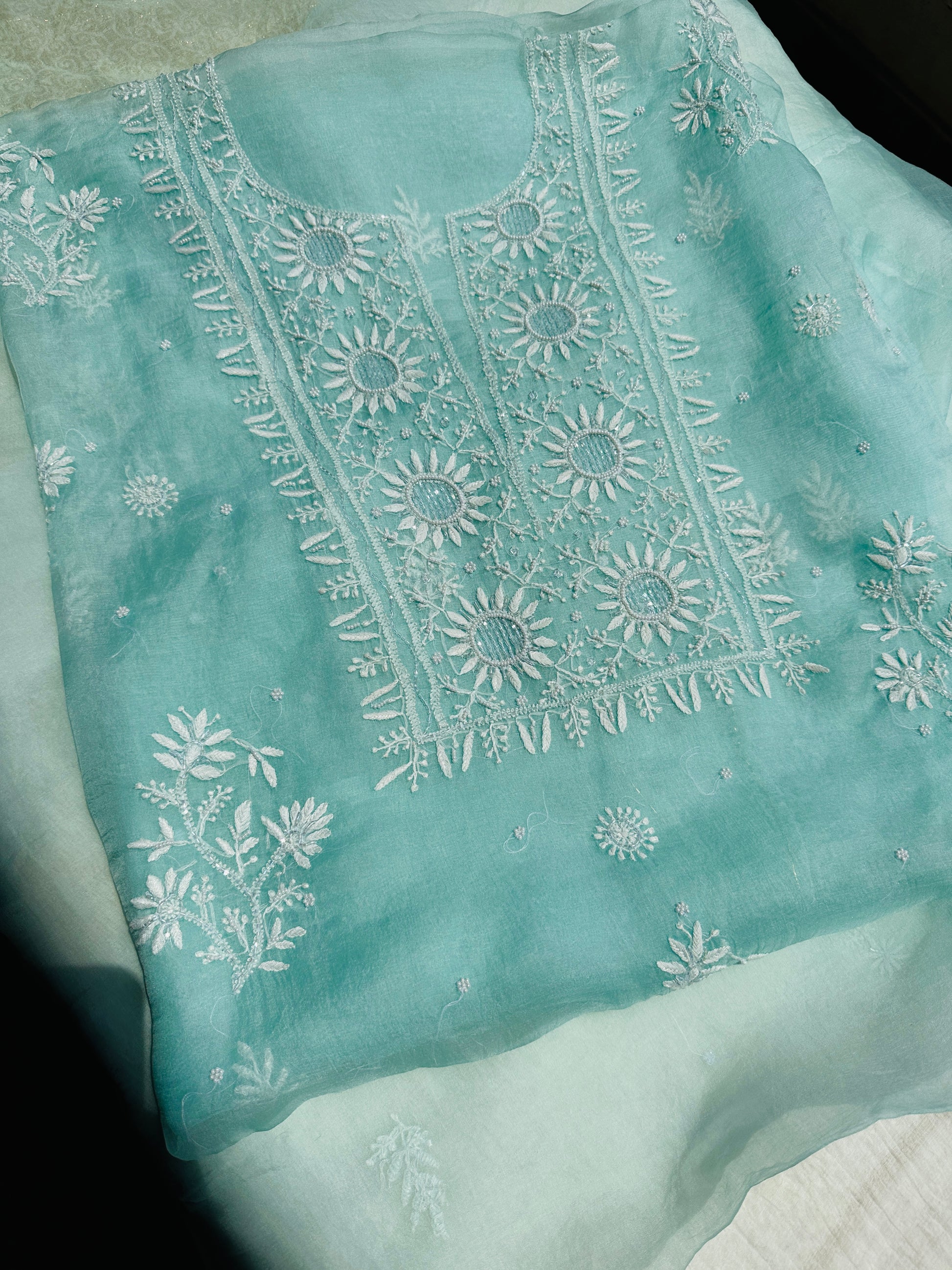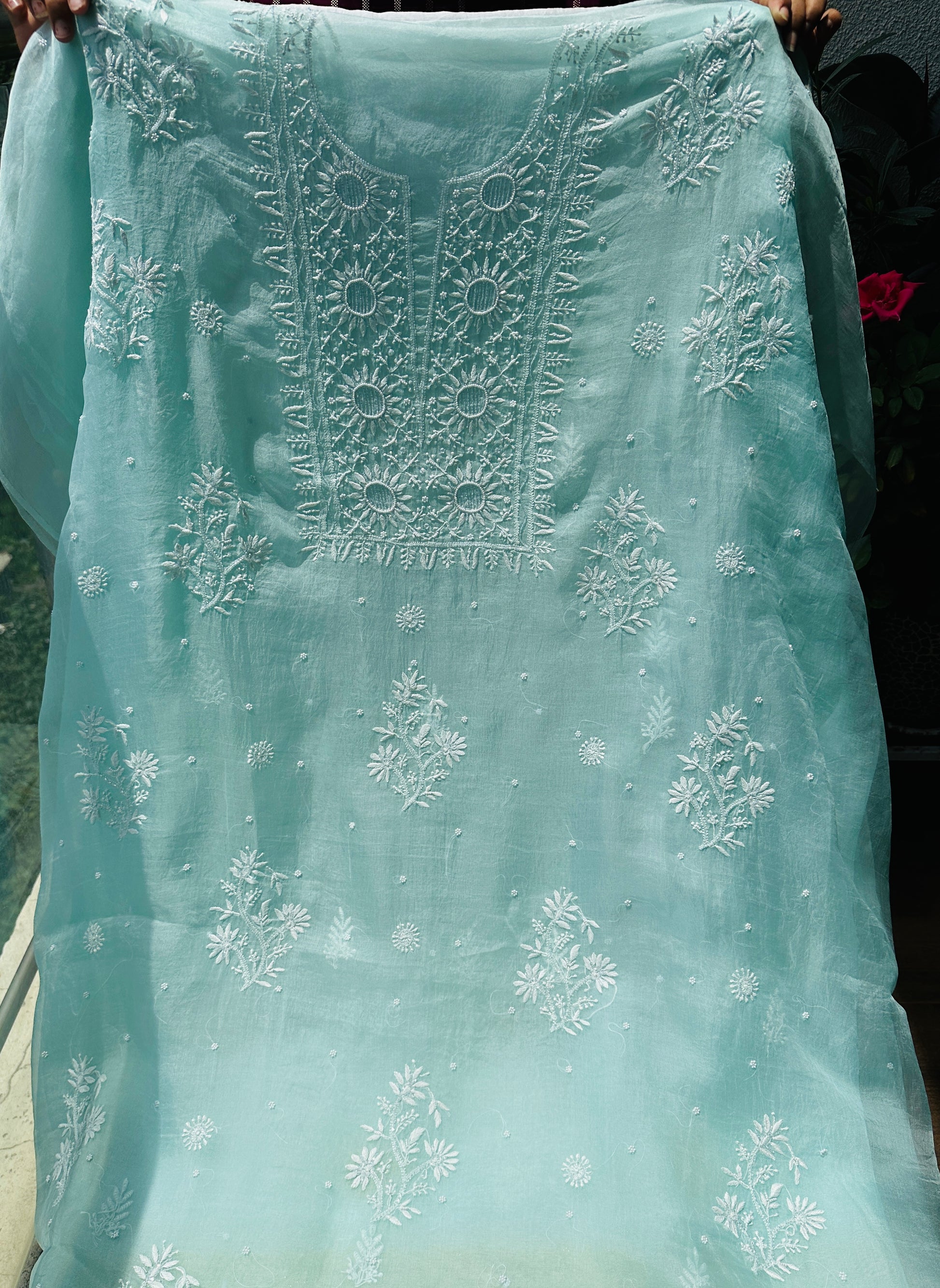 Pure Organza Silk Chikankari Suit Set