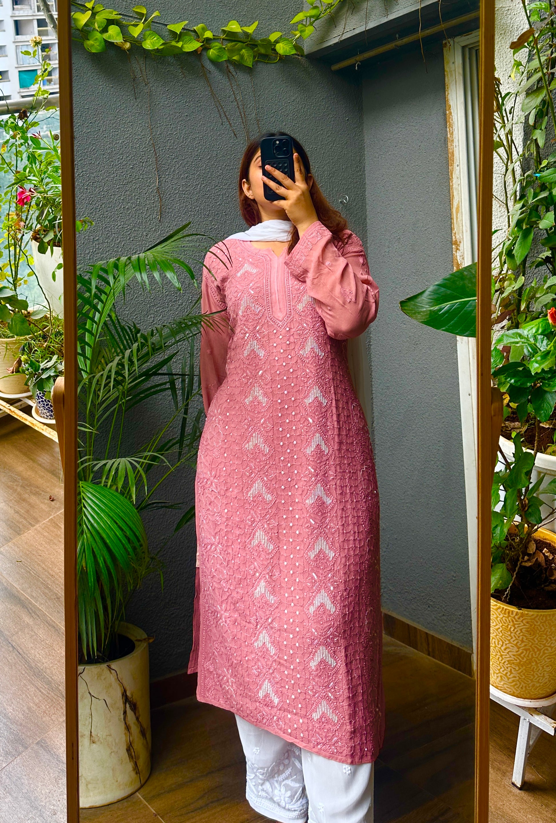 Viral Pearl & Cutdana Chikankari Kurti - Pinkish Brown