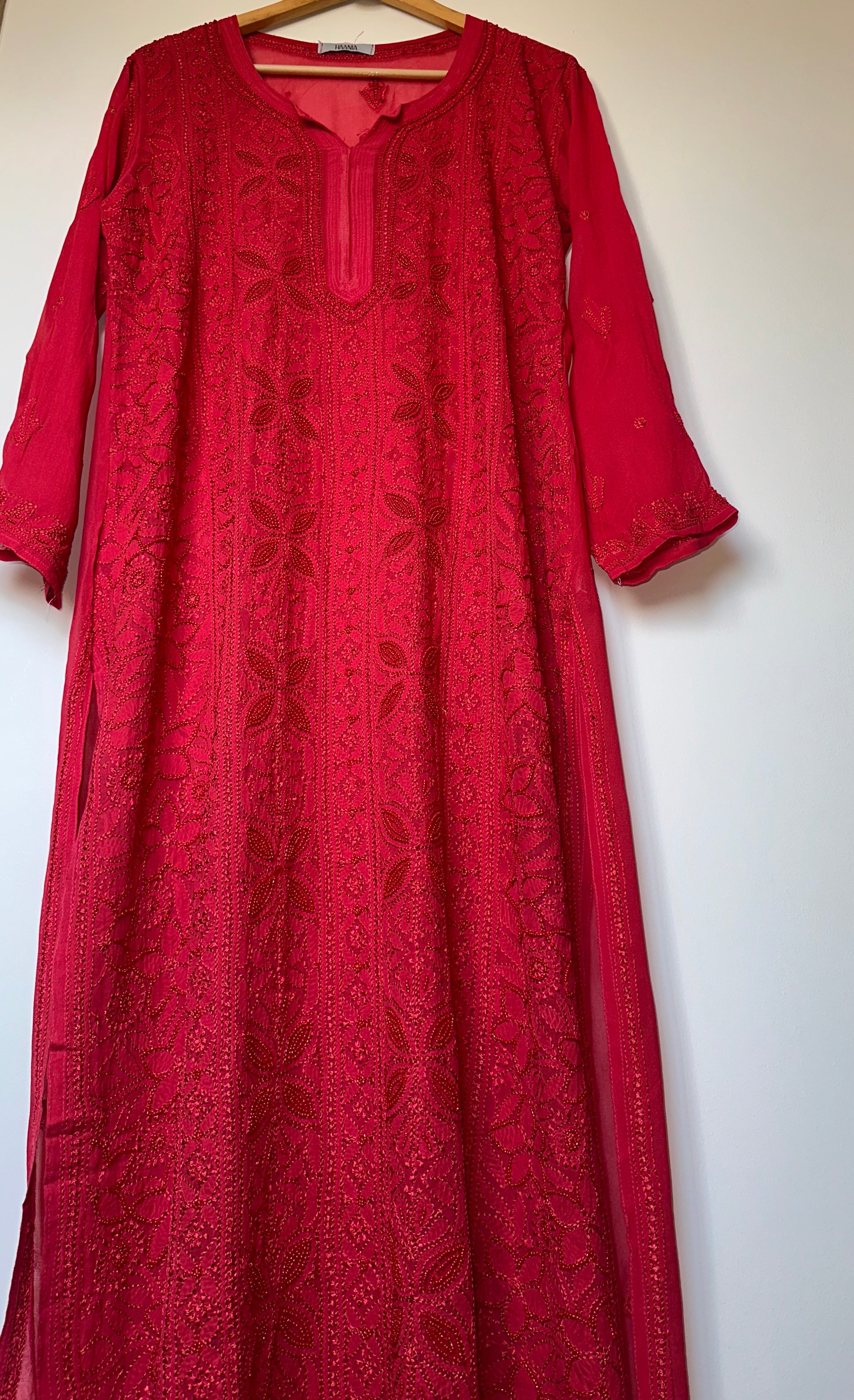 Viral Pearl & Cutdana Chikankari Kurti - Red