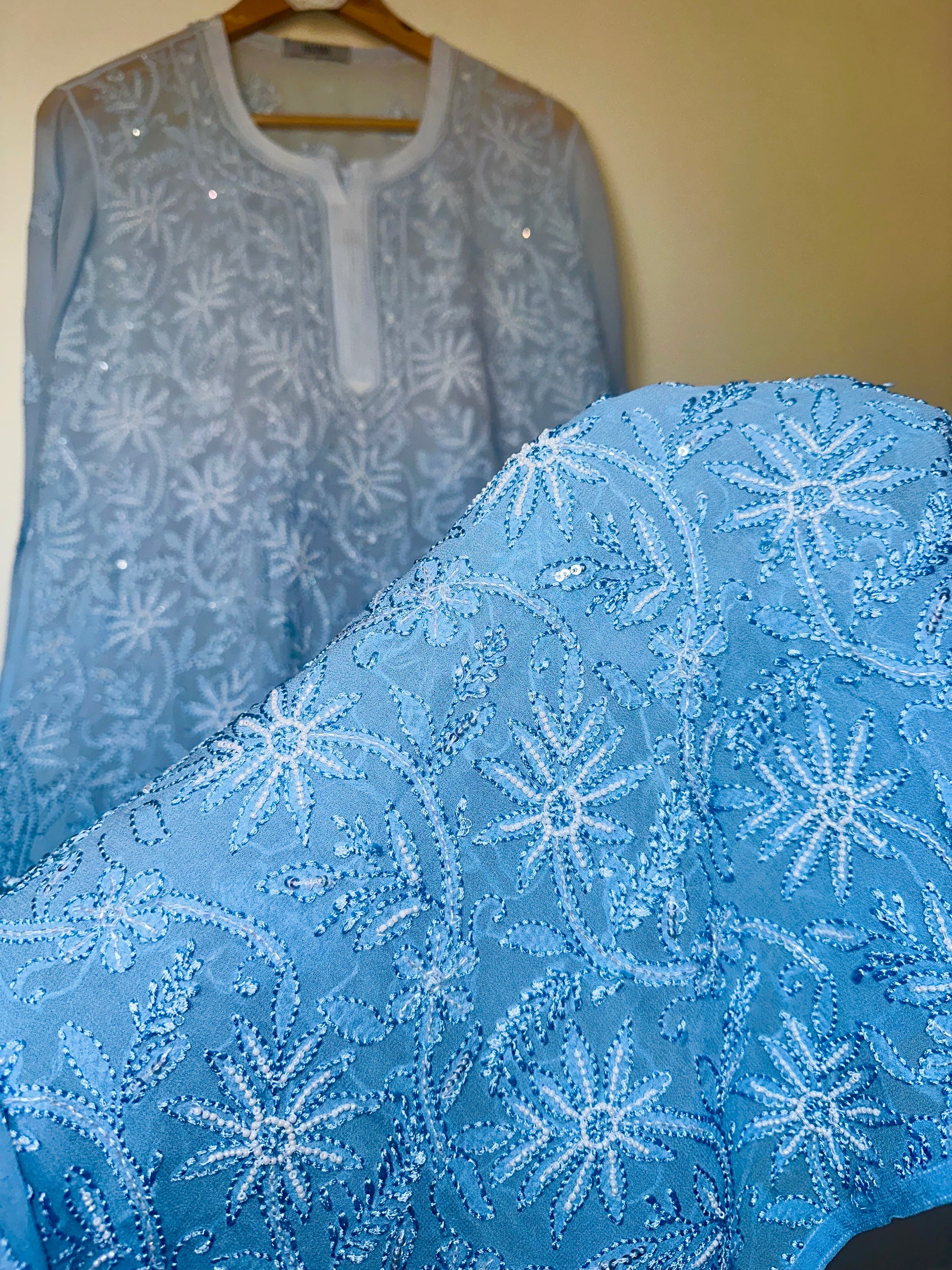 Viral Pearl & Cutdana Chikankari Suit Set - Ombré Blue