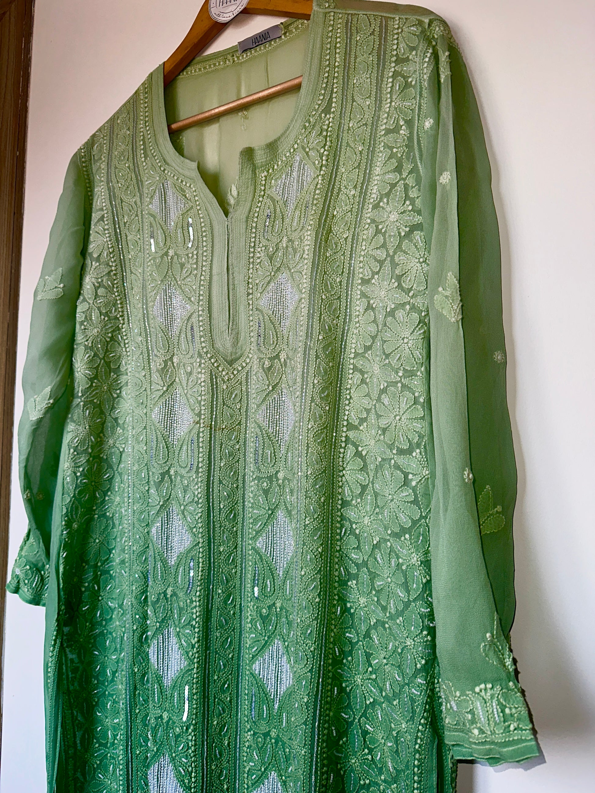 Viral Pearl & Cutdana Kurti - Ombré Green